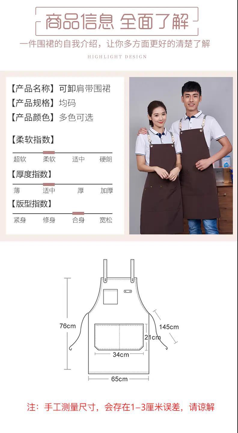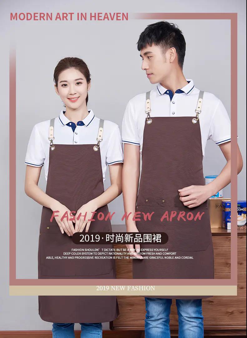클래식 서스펜더 앞치마 커피 티 레스토랑 밀크티 숍 순면 캔버스 크로스 조절 인쇄 로고 작업복