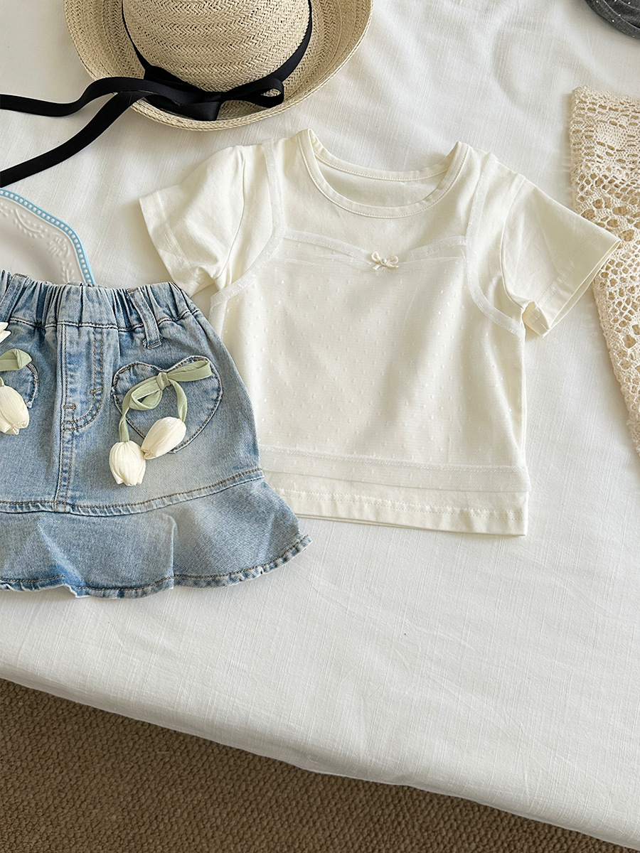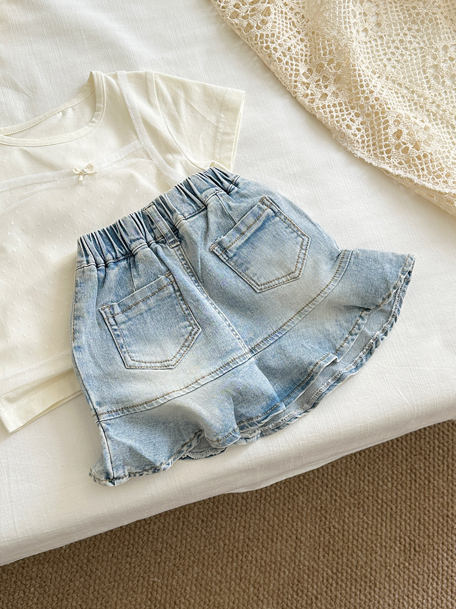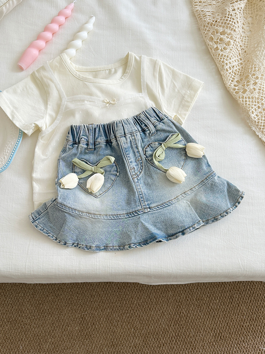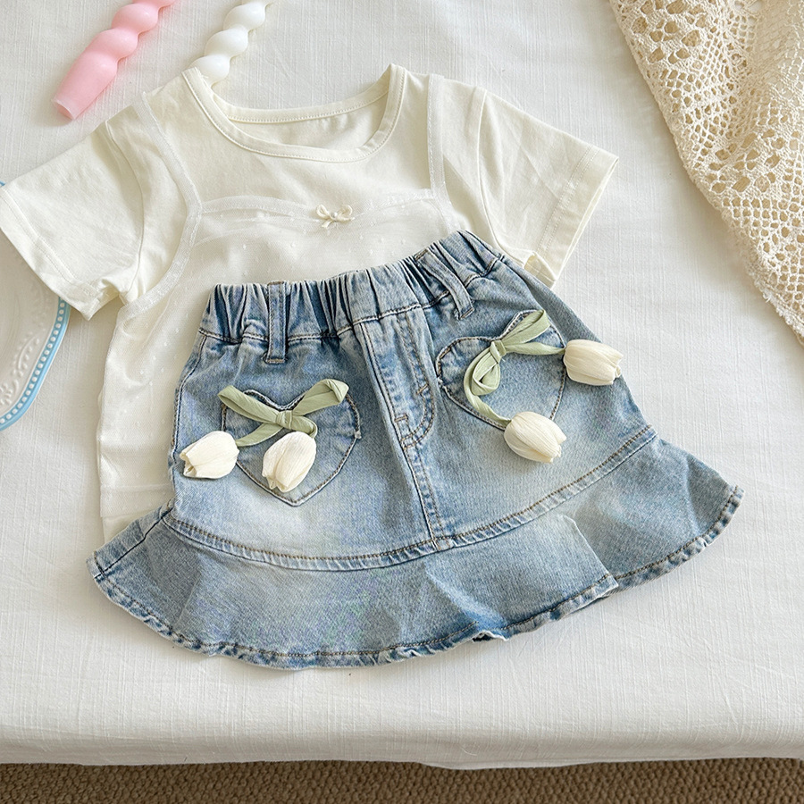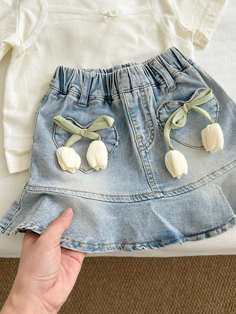 여자 데님 스커트 2025 여름 신작 어린이 튤립 데님 핫 소녀 스커트 다목적 겉옷