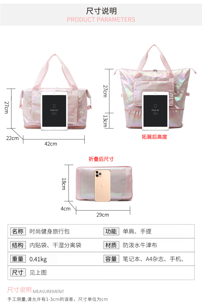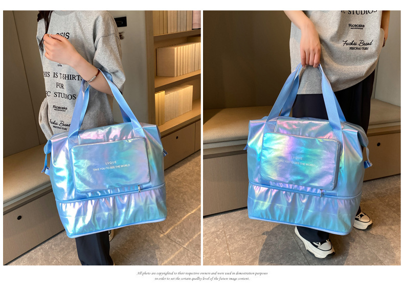 대용량 여행 가방 2025 새로운 가방 여성 레이저 어깨 크로스 바디 토트 백 장거리 및 단거리 보관 피트니스 가방스토어 가기