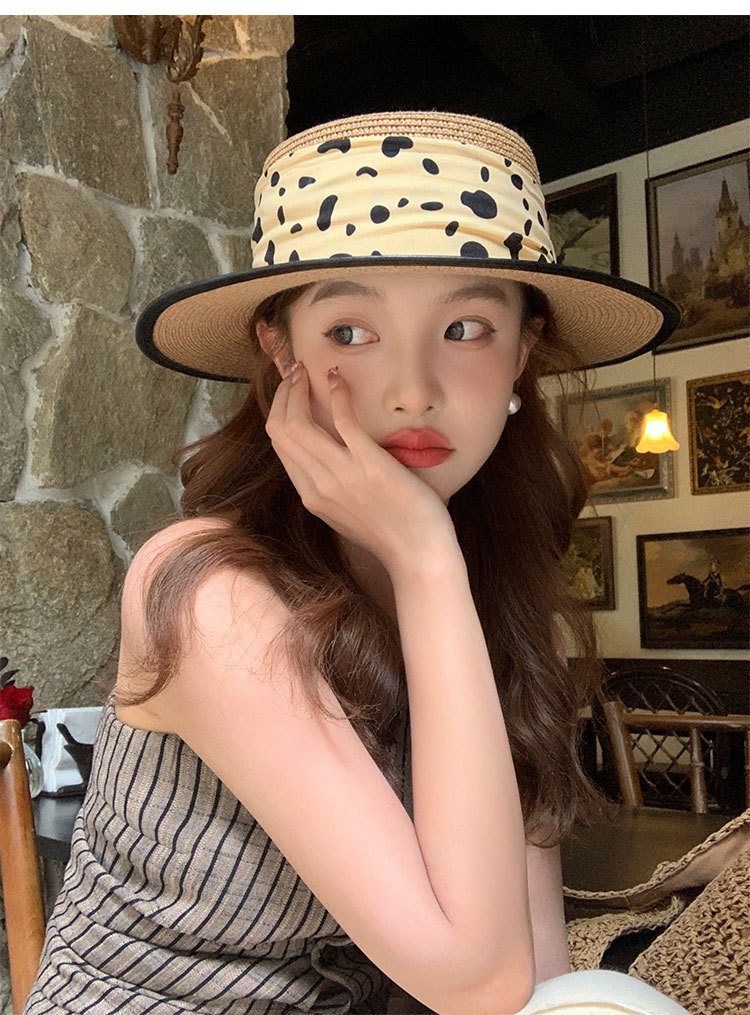 물방울 무늬 리본 플랫탑 밀짚모자 여성용 2025 여름 반점 리본 해변 햇빛 차단 우아한 모자스토어 가기
