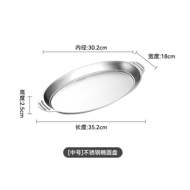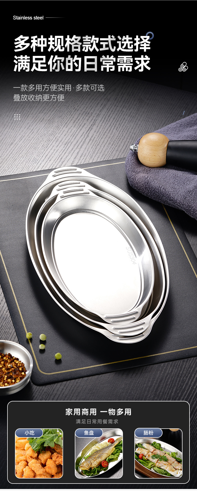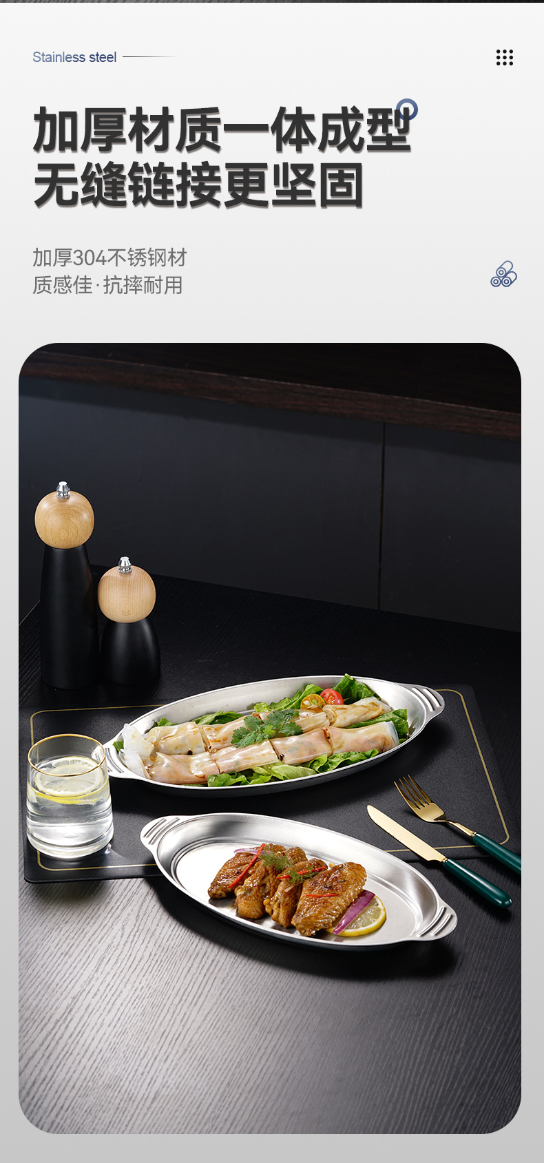 304 스테인레스 스틸 생선 접시 타원형 야채 접시 가정용 양이 생선 찜 접시 특수 두꺼운 계란 모양 접시 플랫 바닥 트레이