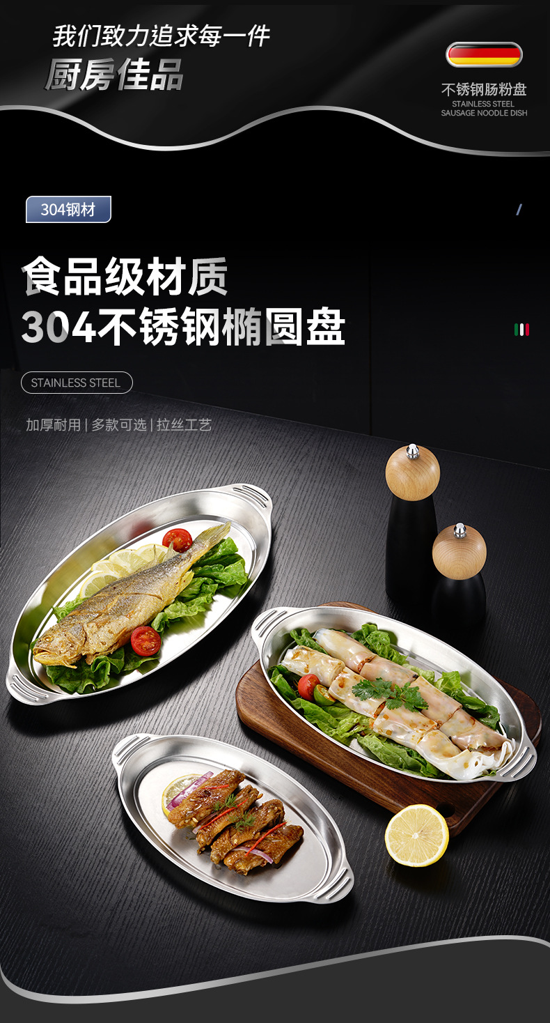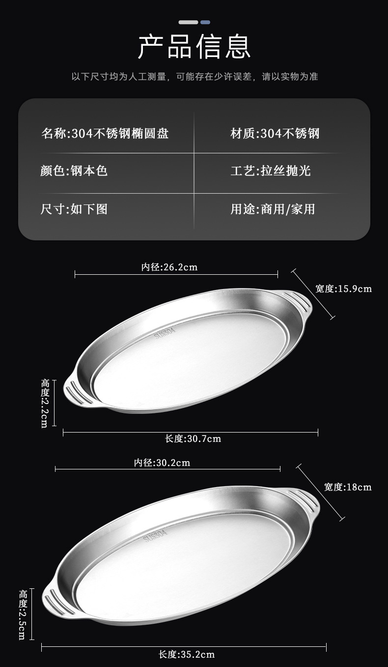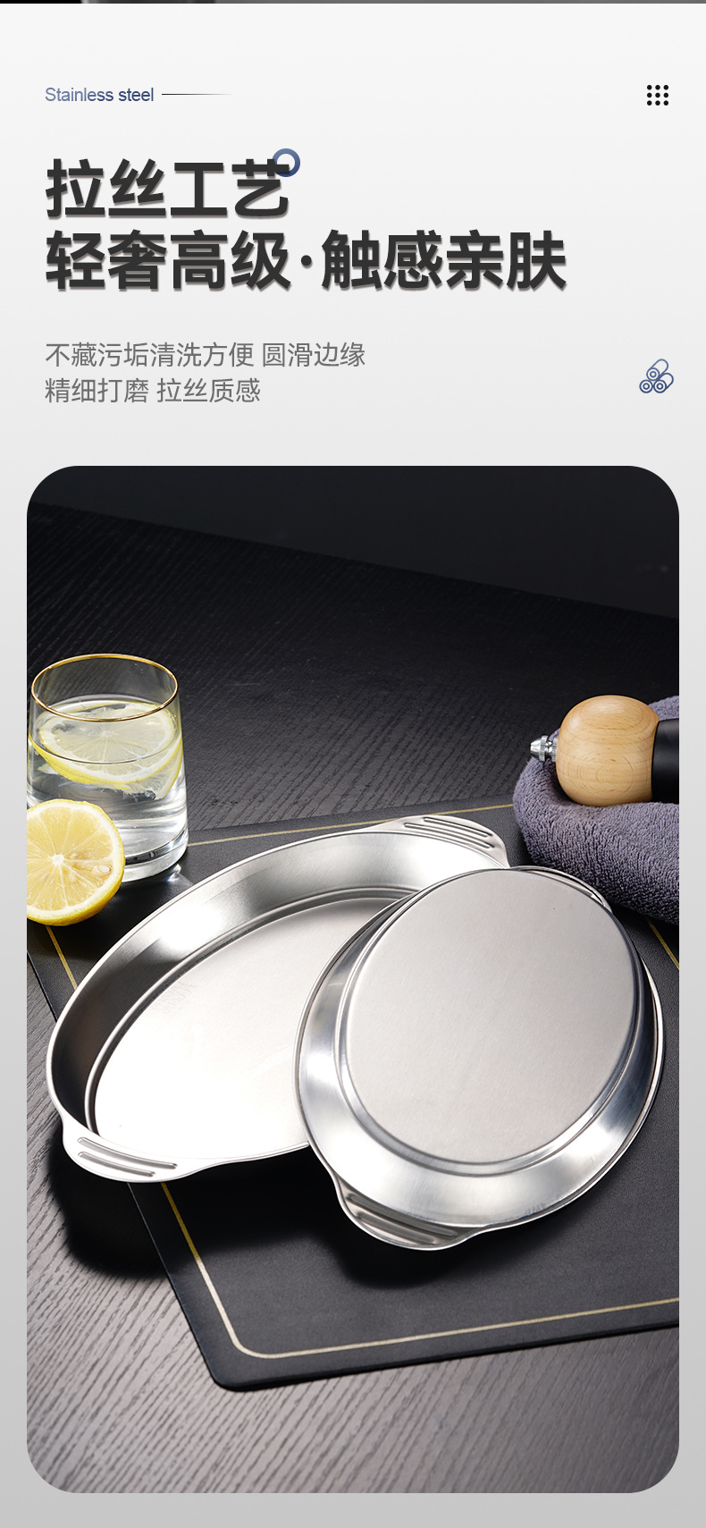 304 스테인레스 스틸 생선 접시 타원형 야채 접시 가정용 양이 생선 찜 접시 특수 두꺼운 계란 모양 접시 플랫 바닥 트레이