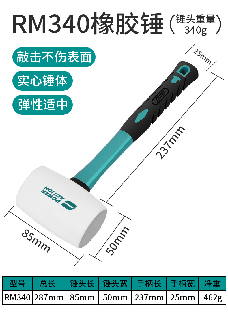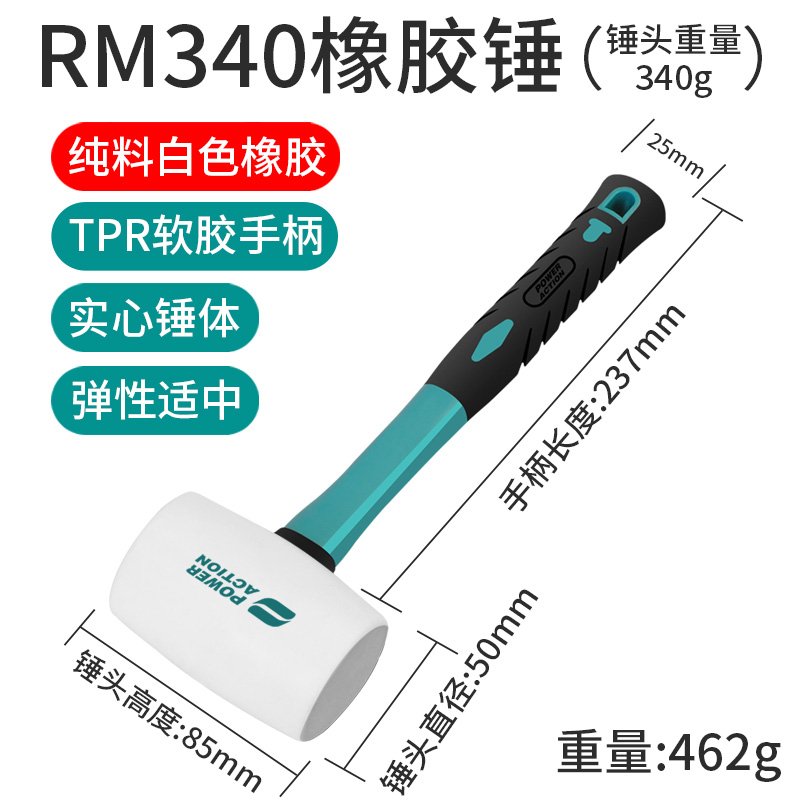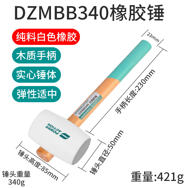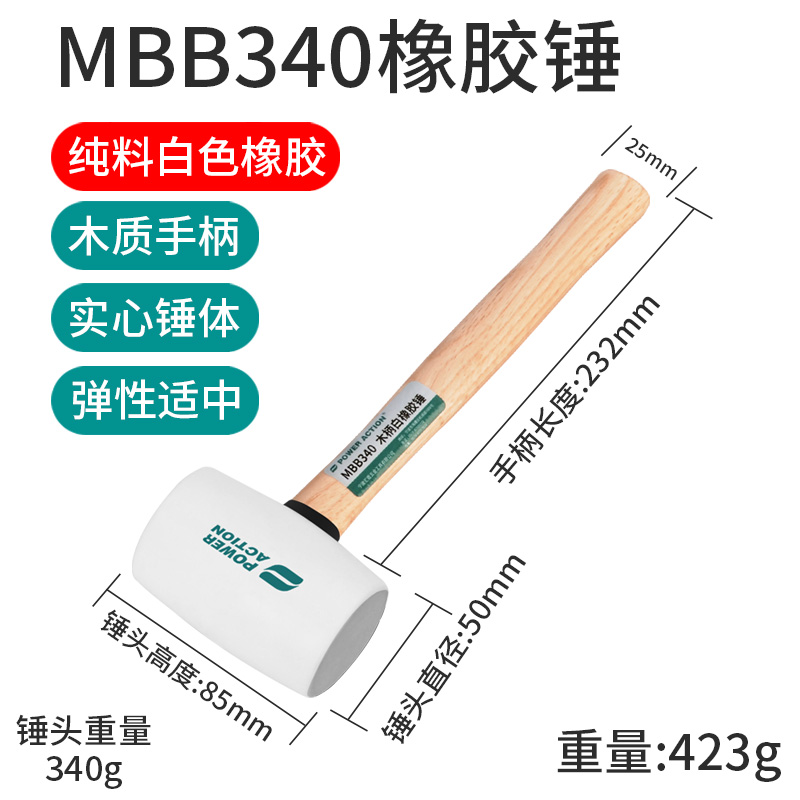 • 흰색 나무 손잡이 고무 망치 모델 340