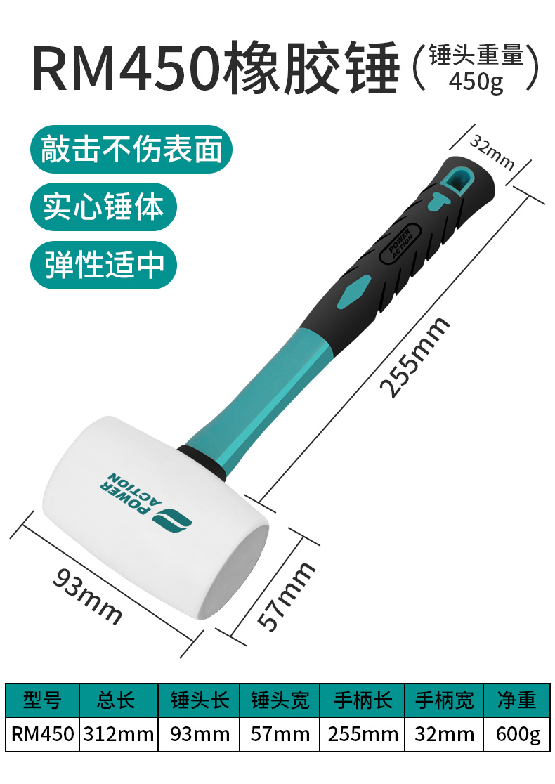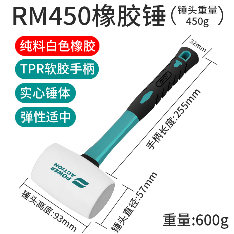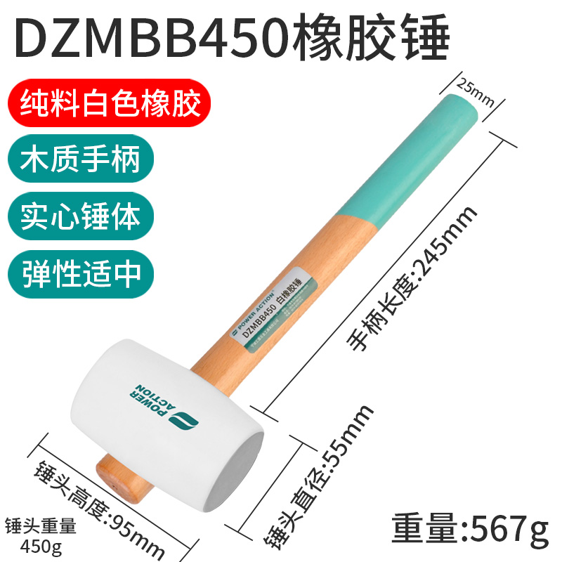 • 흰색 나무 손잡이 고무 망치 유형 450