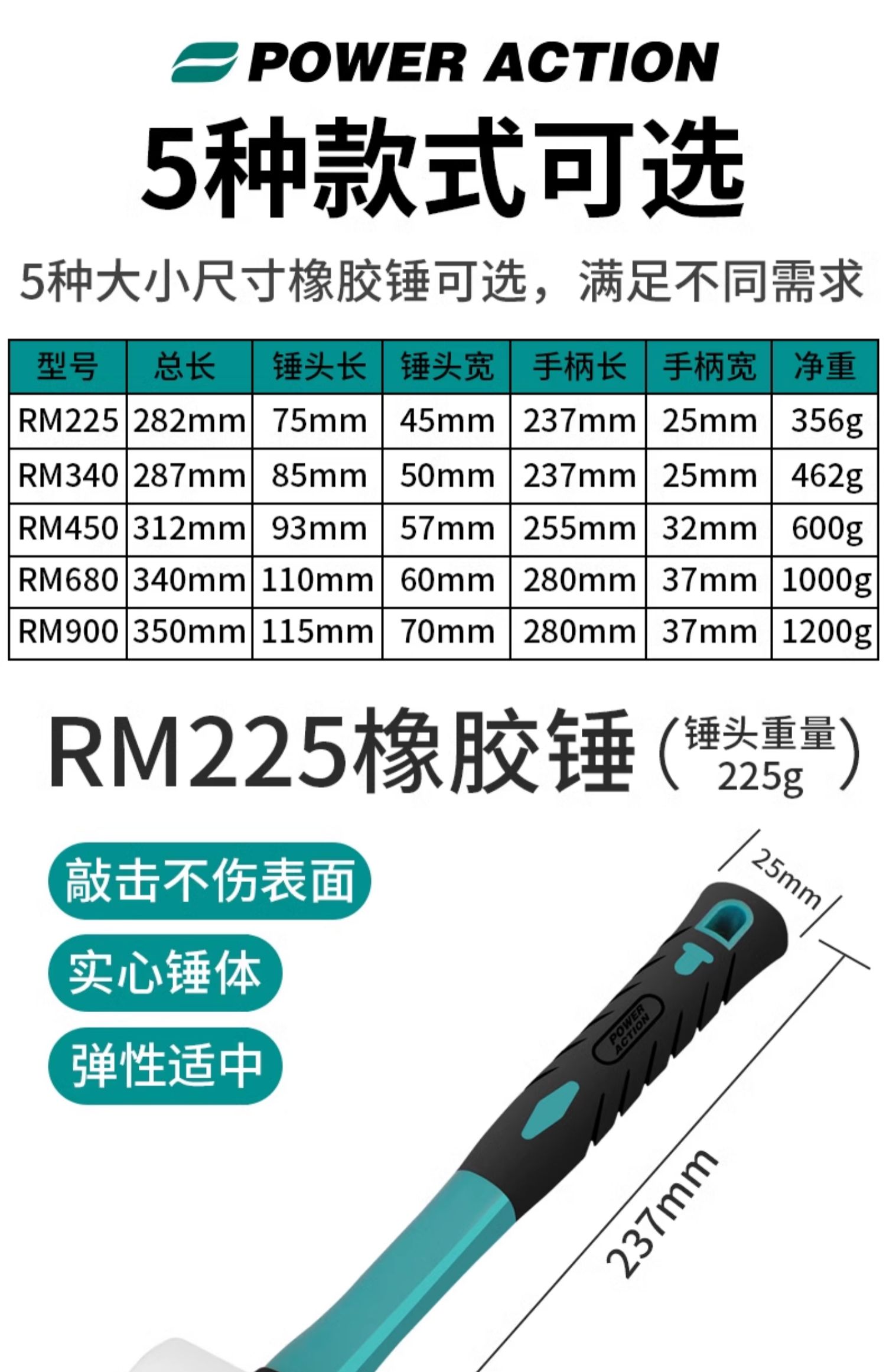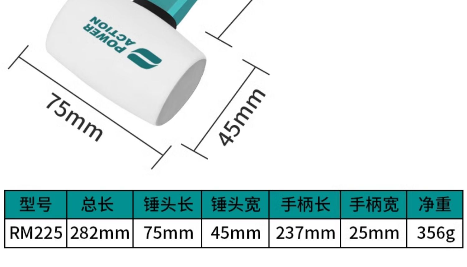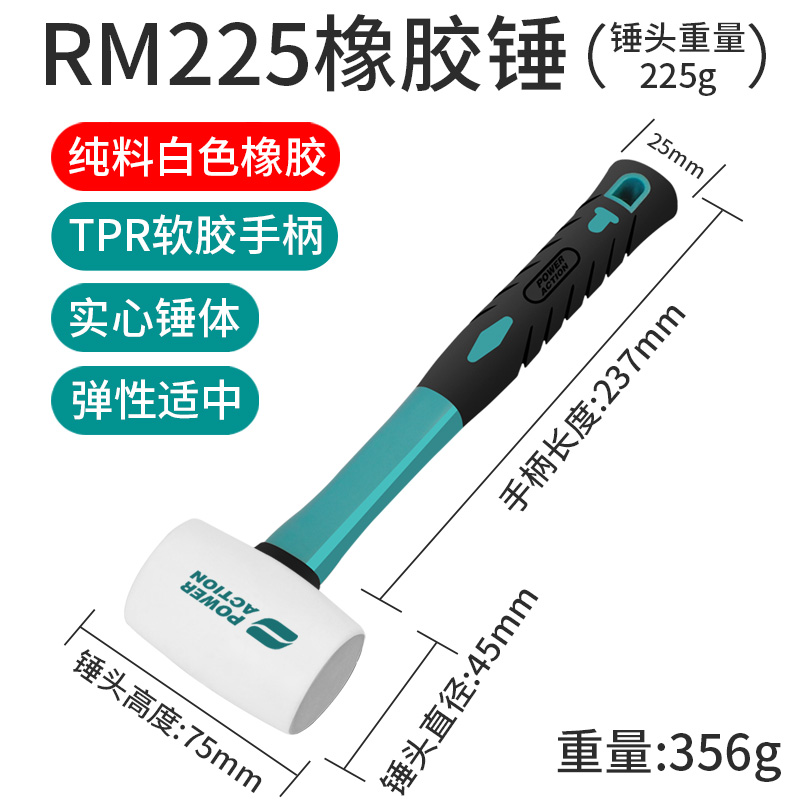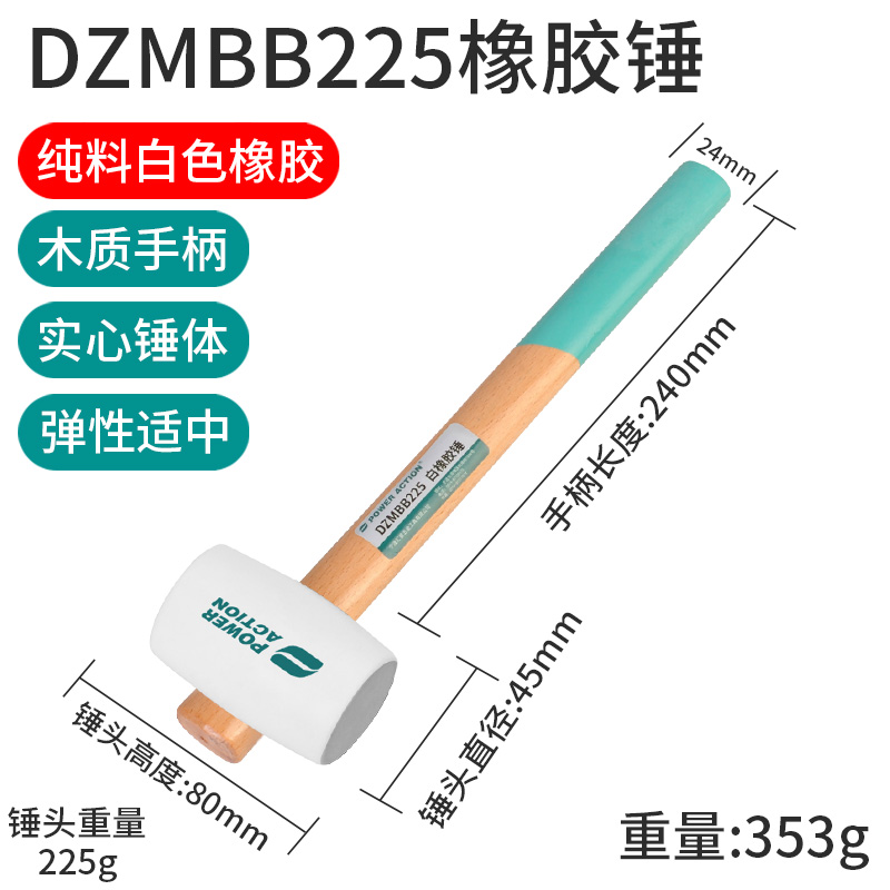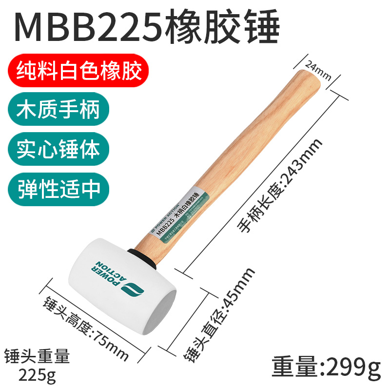• 흰색 나무 손잡이 고무 망치 모델 225