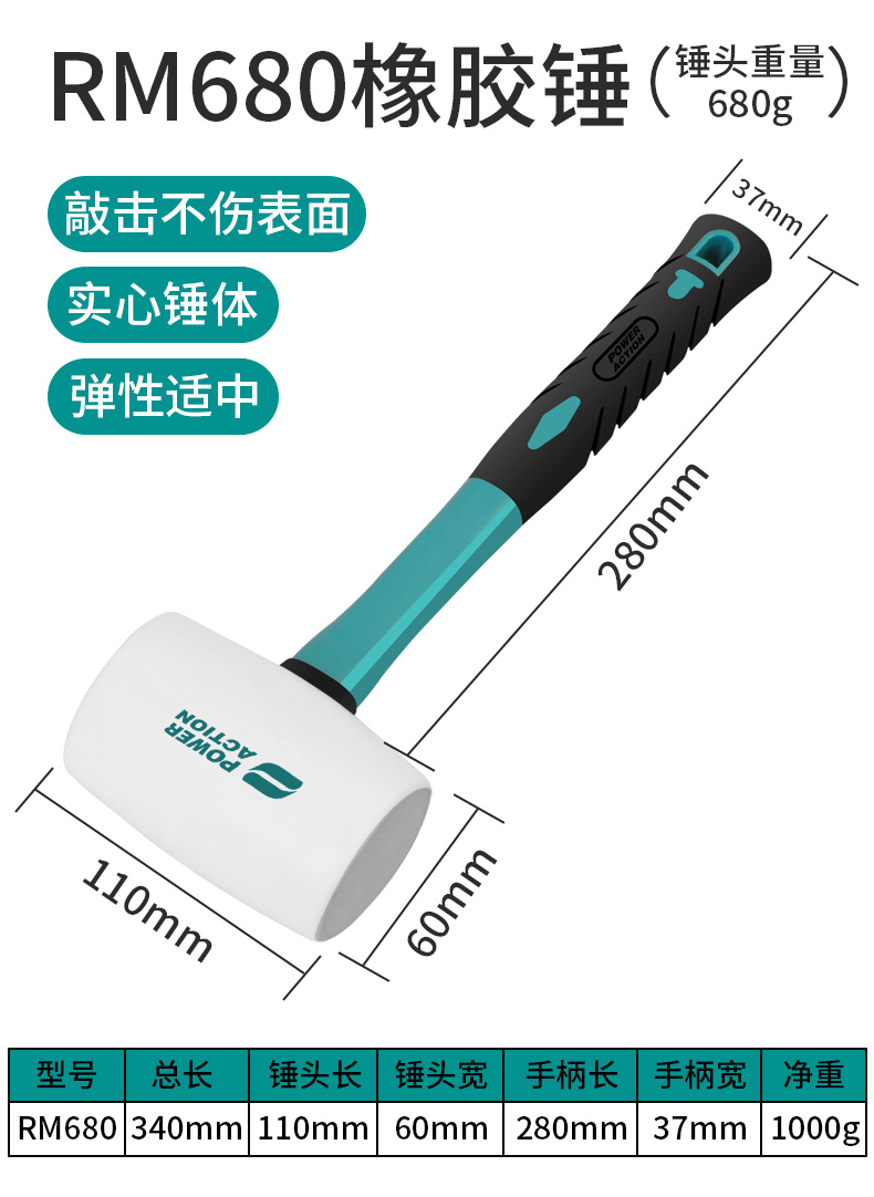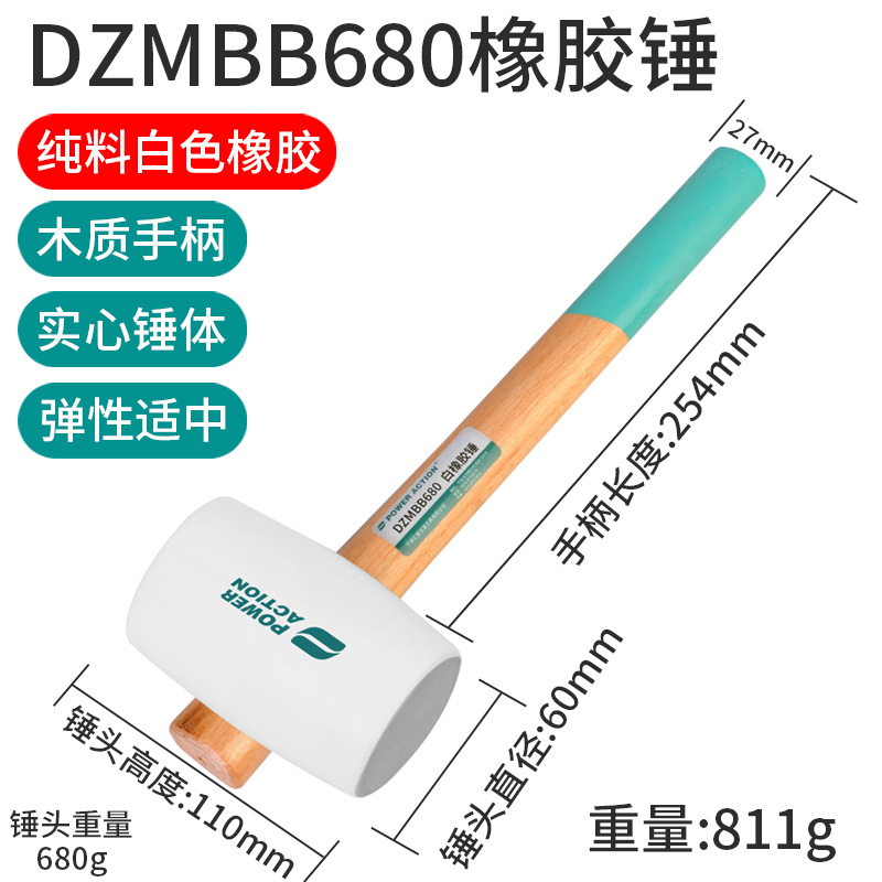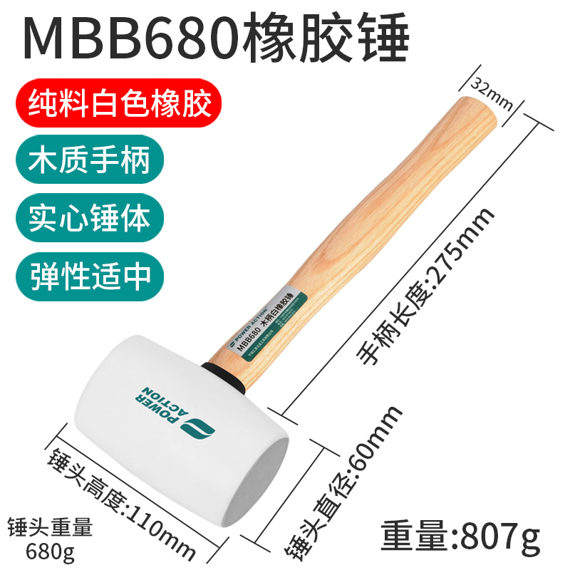 • 흰색 나무 손잡이 고무 망치 모델 680