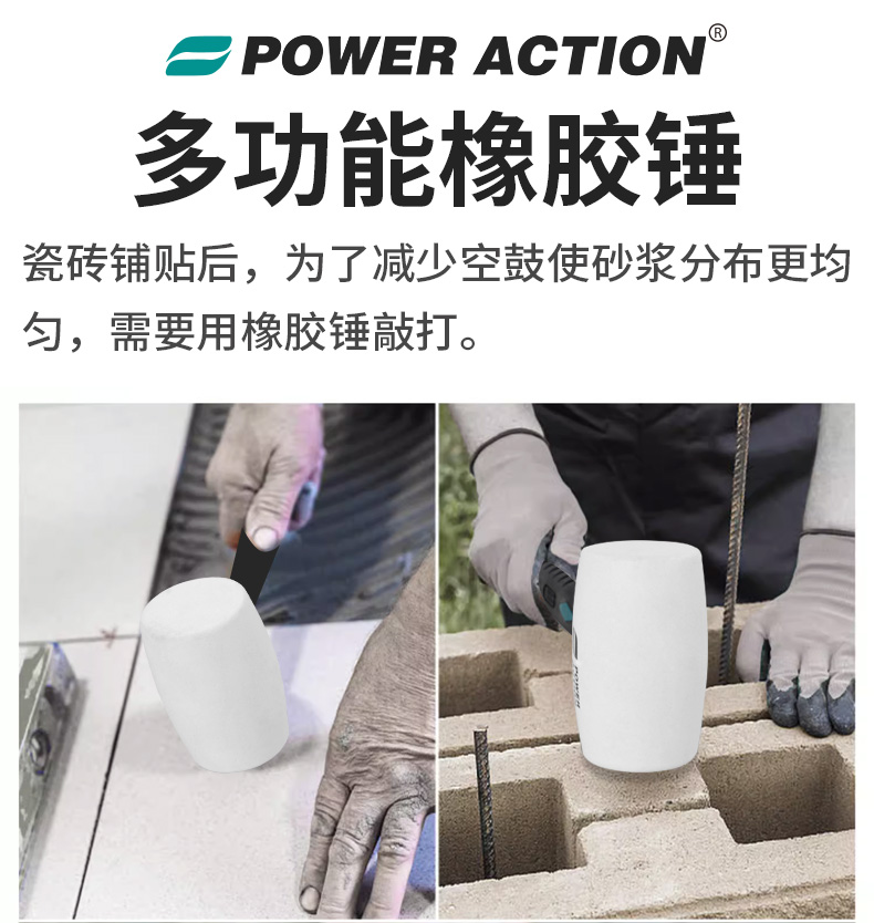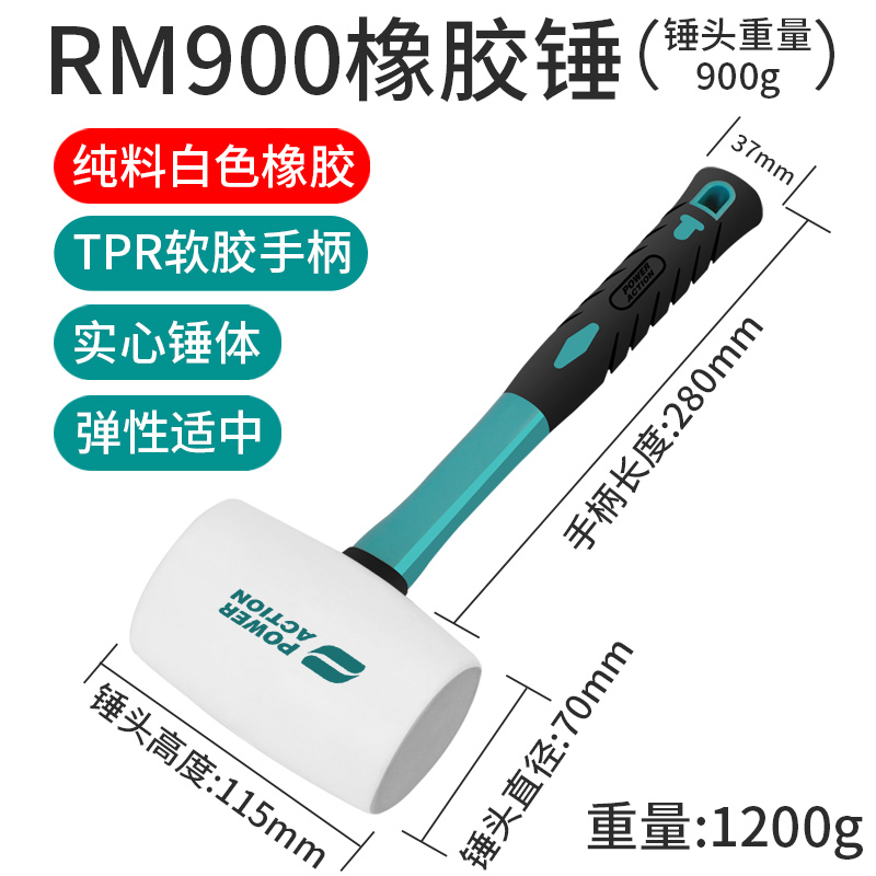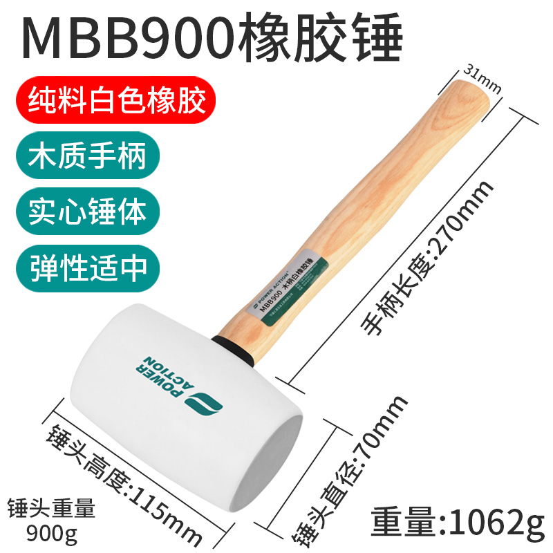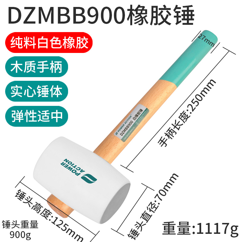 • 흰색 나무 손잡이 고무 망치 모델 900