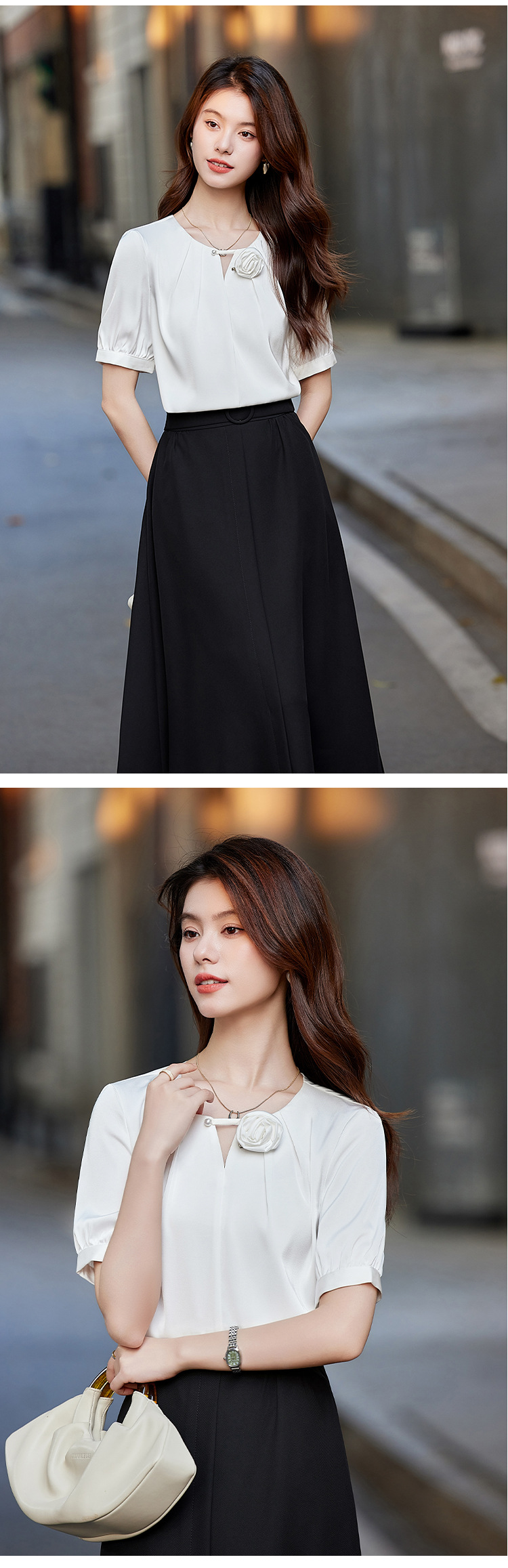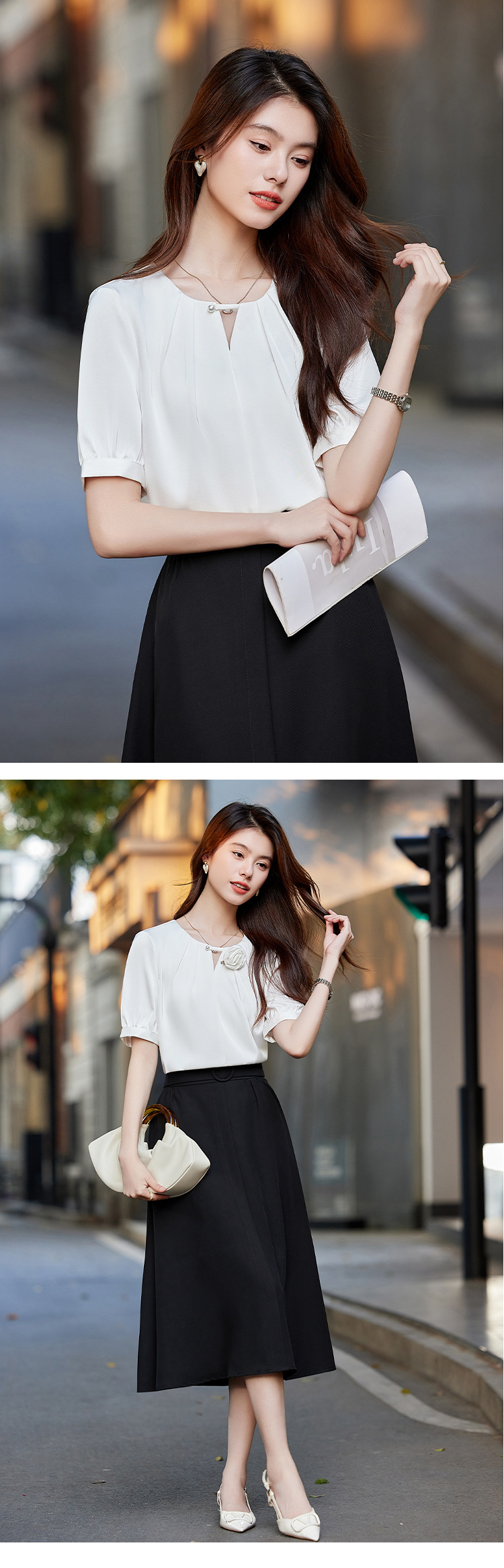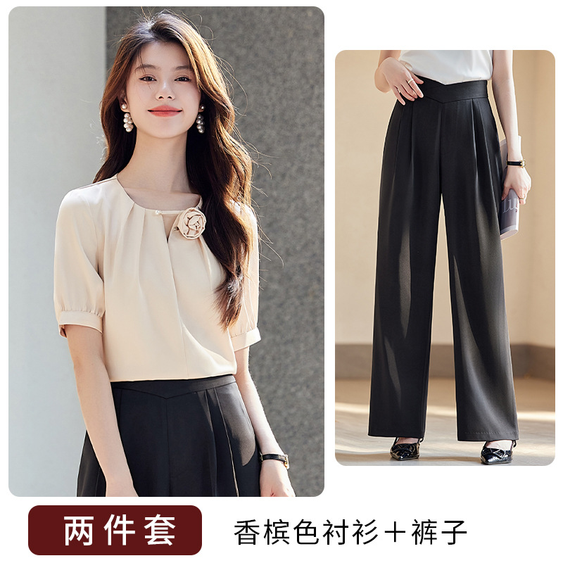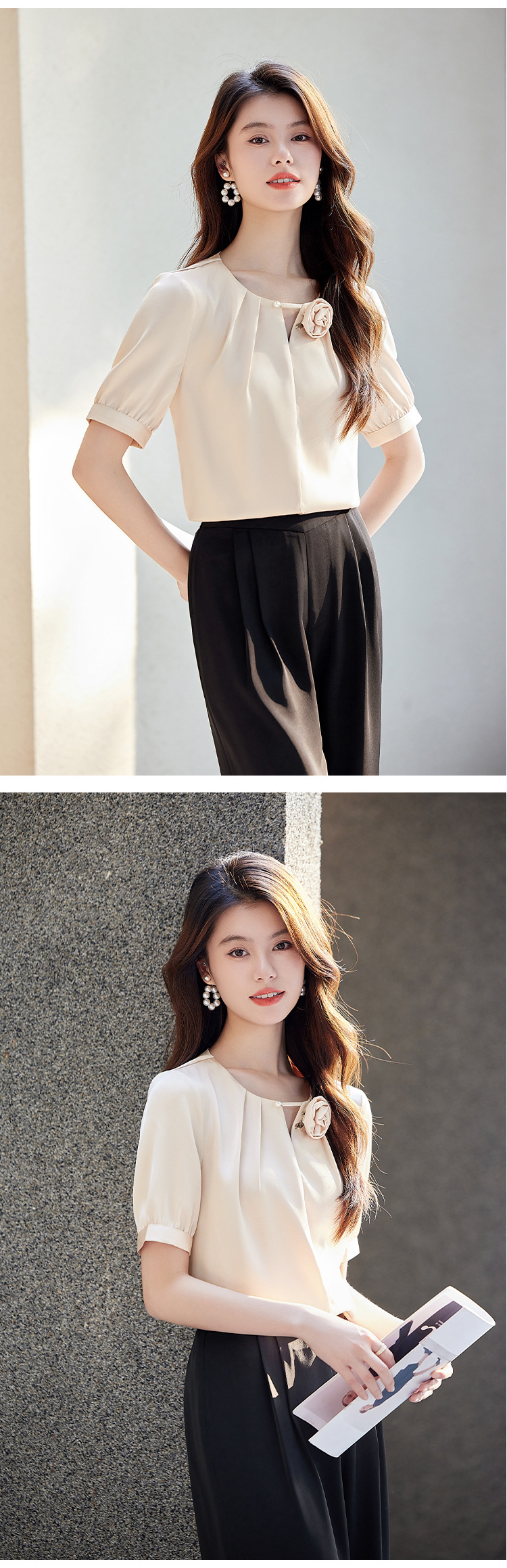 패션 반팔 프렌치 쉬폰 셔츠 여성용 여름 하이 엔드 웨스턴 스타일 살구색 작은 셔츠 풀오버 통근자스토어 가기