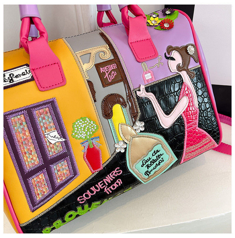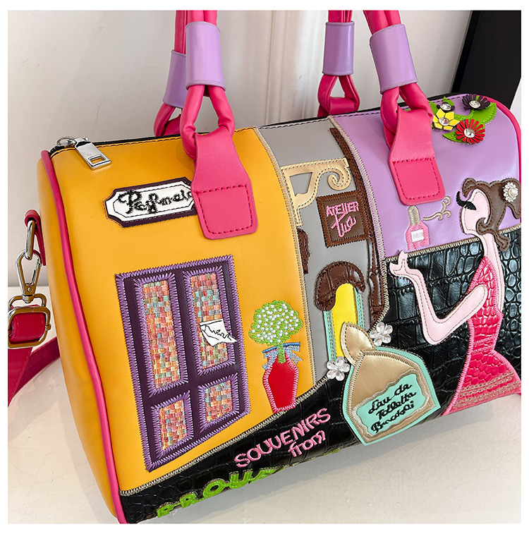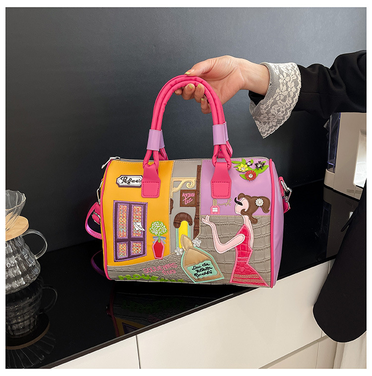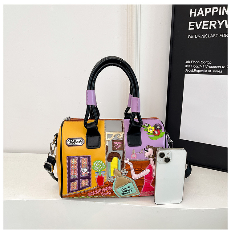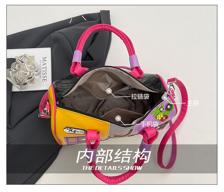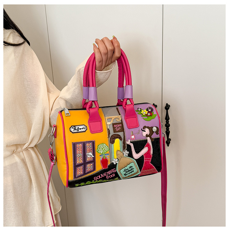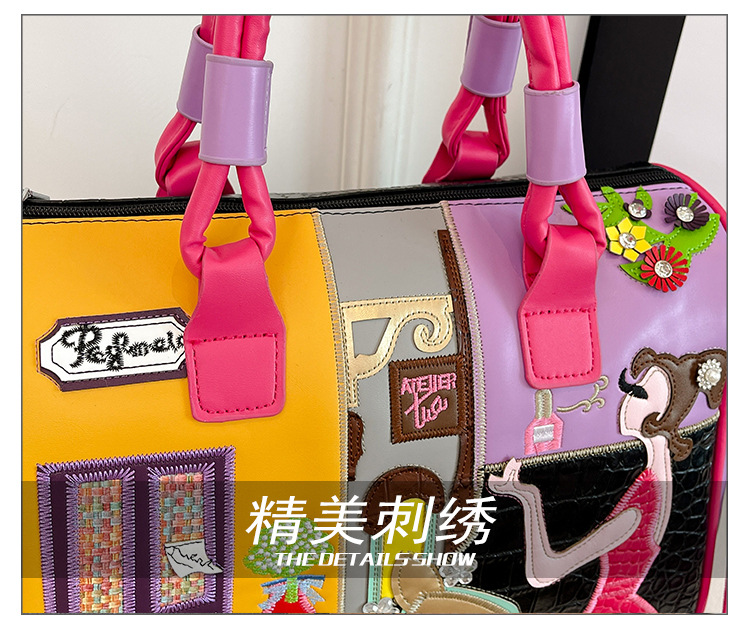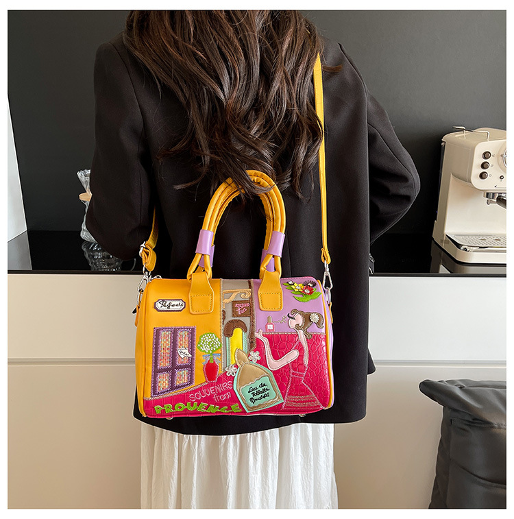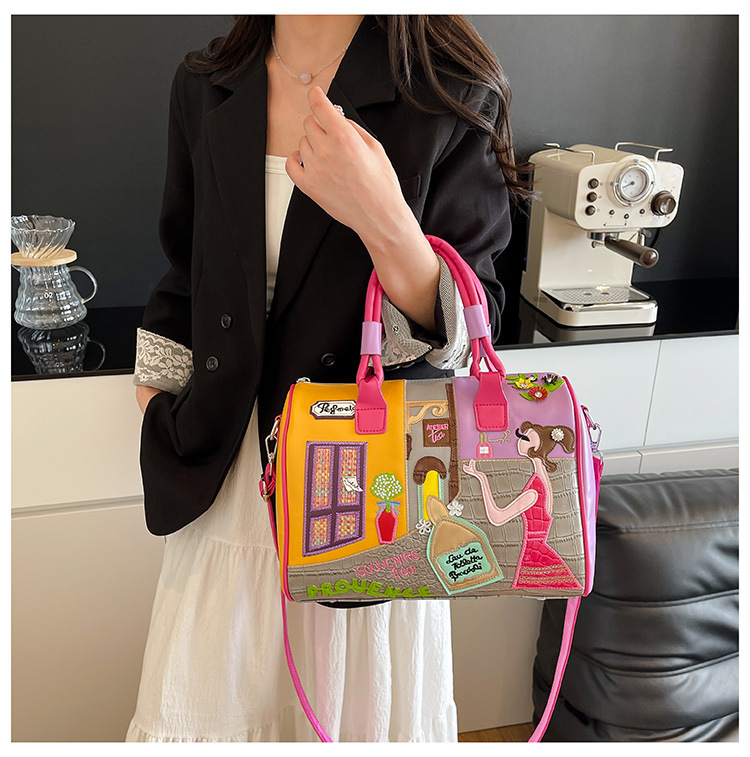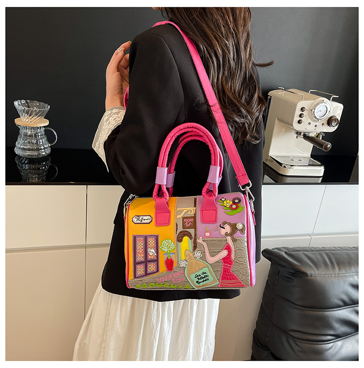 유럽과 미국의 레트로 대용량 휴대용 보스턴 가방 2025 새로운 틈새 자수 테이프 통근 어깨 크로스 바디 백