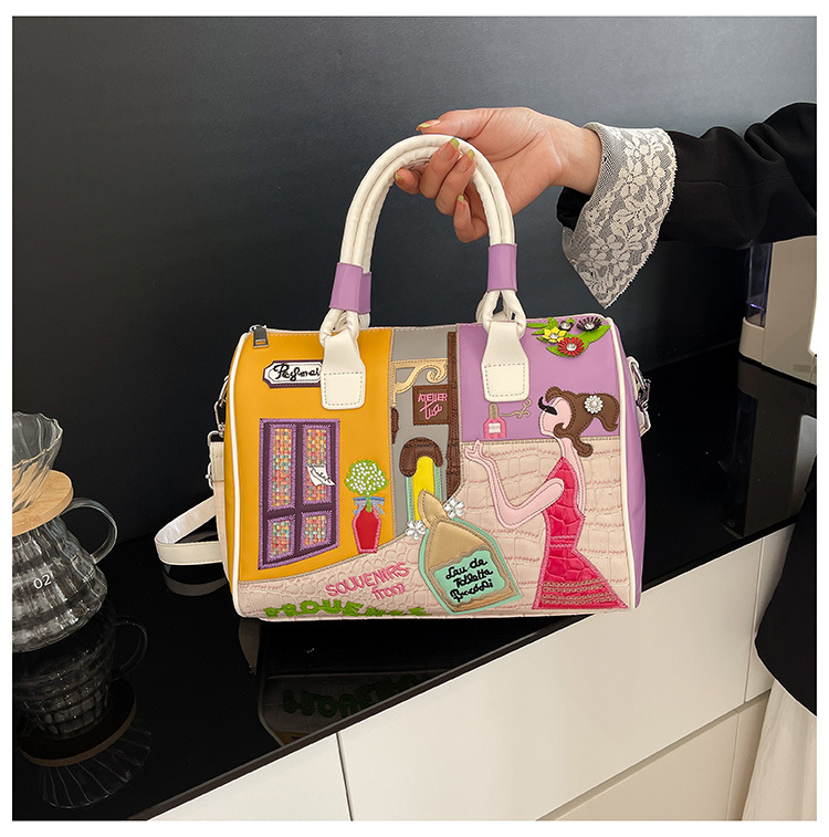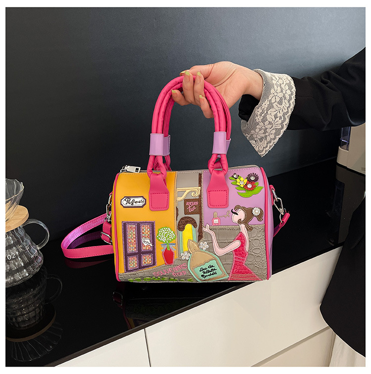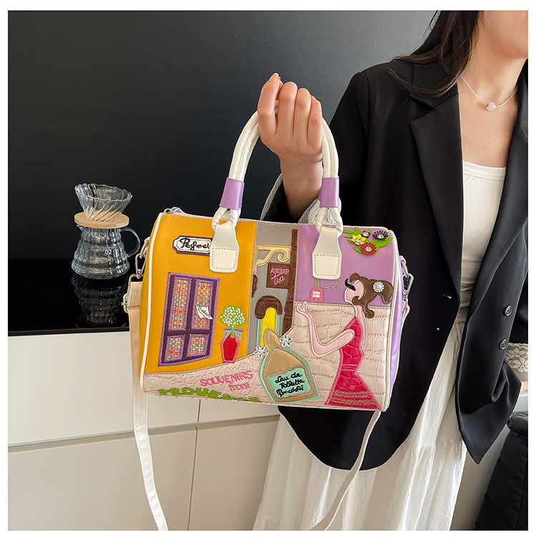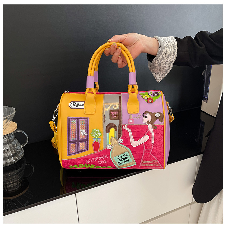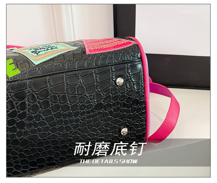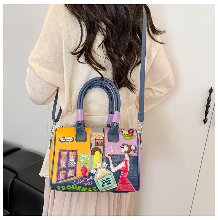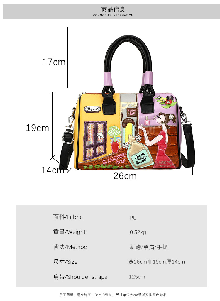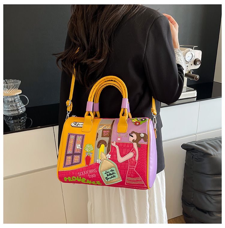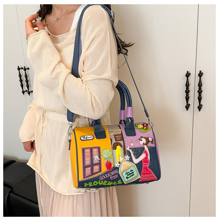 유럽과 미국의 레트로 대용량 휴대용 보스턴 가방 2025 새로운 틈새 자수 테이프 통근 어깨 크로스 바디 백