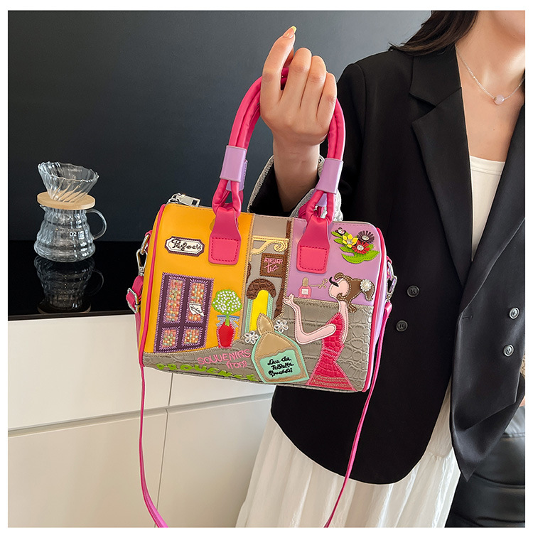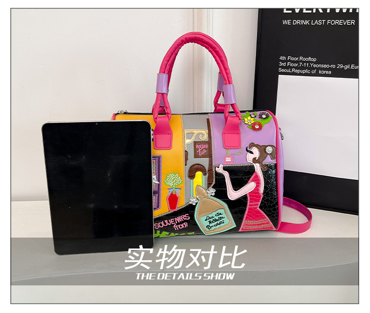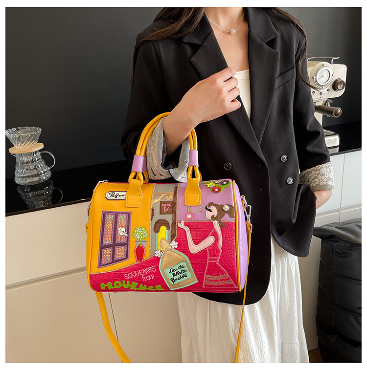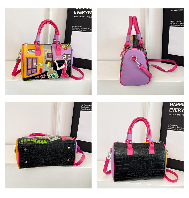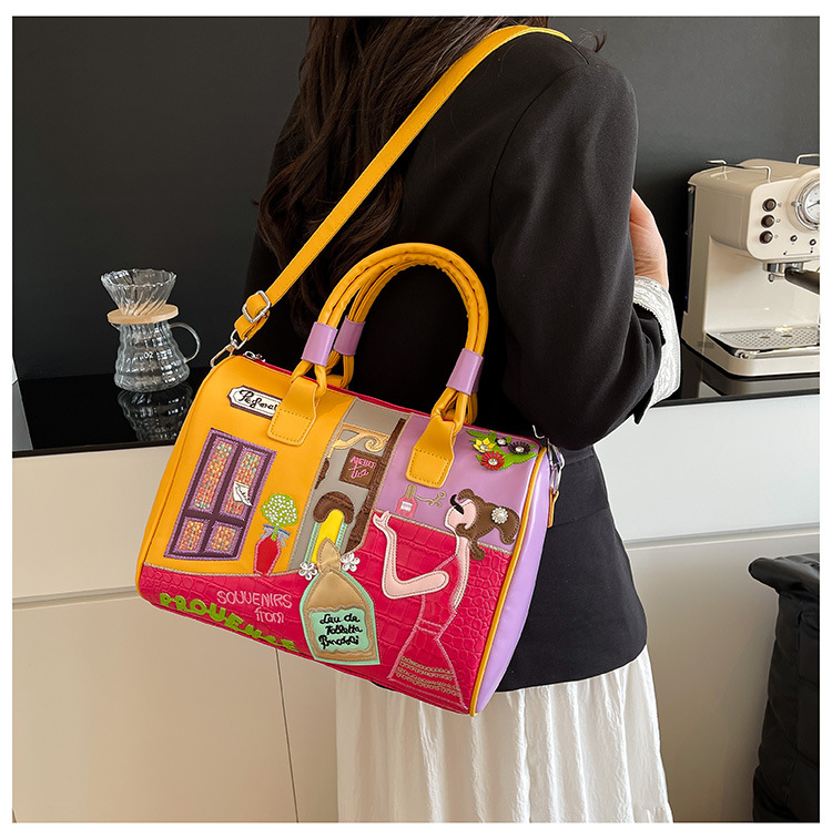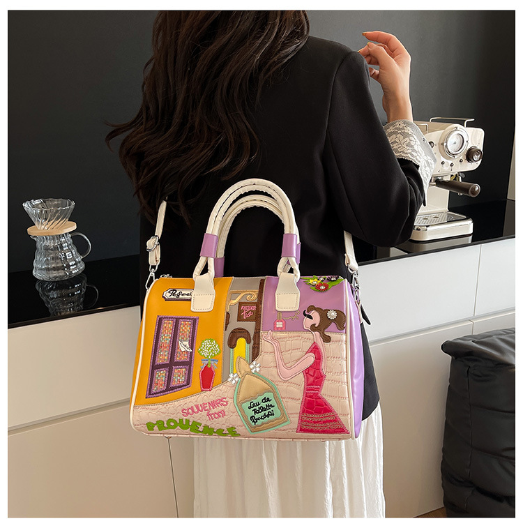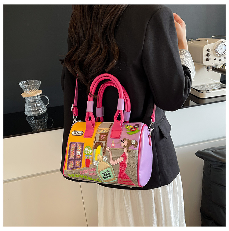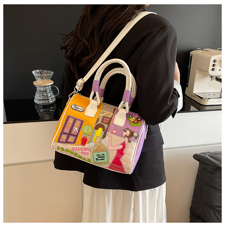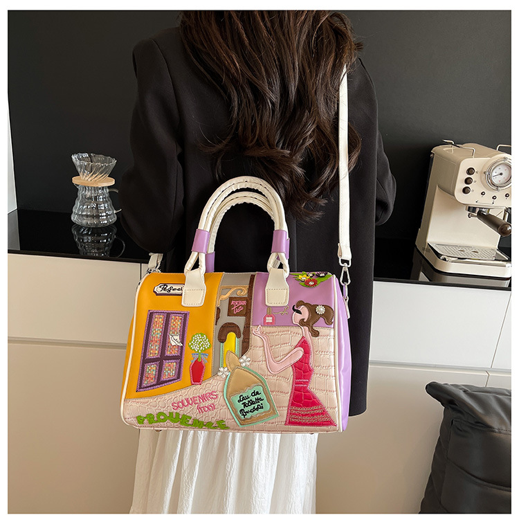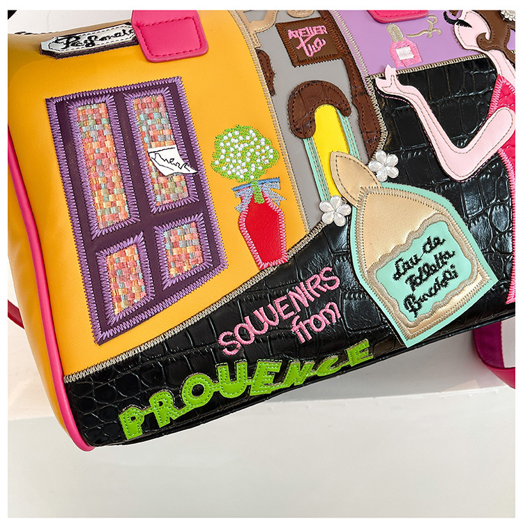 유럽과 미국의 레트로 대용량 휴대용 보스턴 가방 2025 새로운 틈새 자수 테이프 통근 어깨 크로스 바디 백