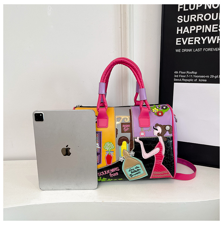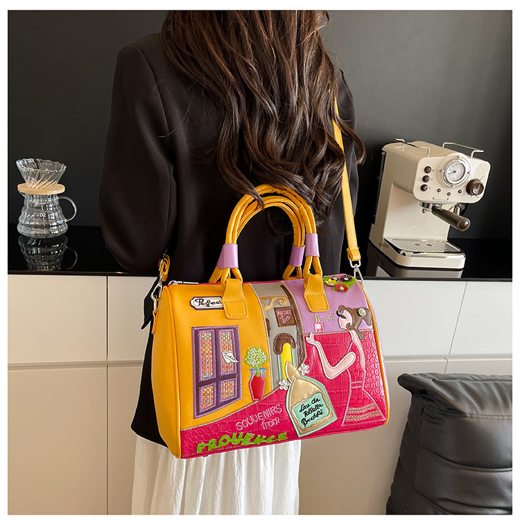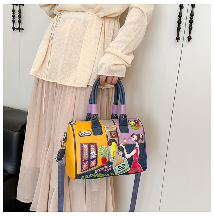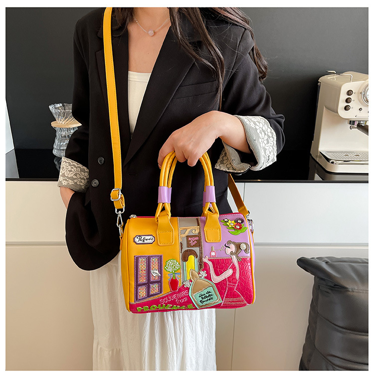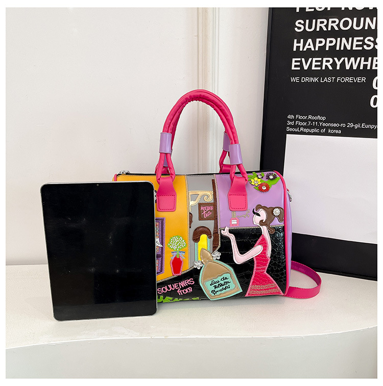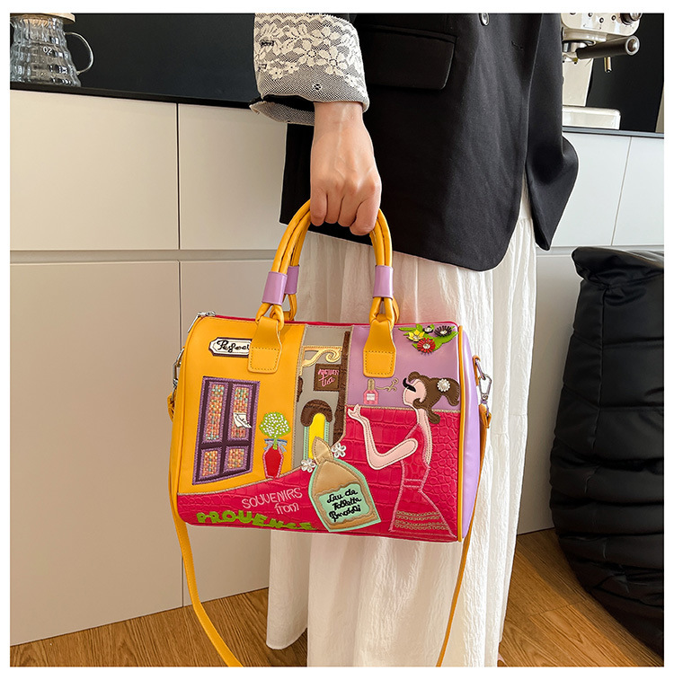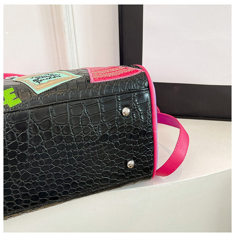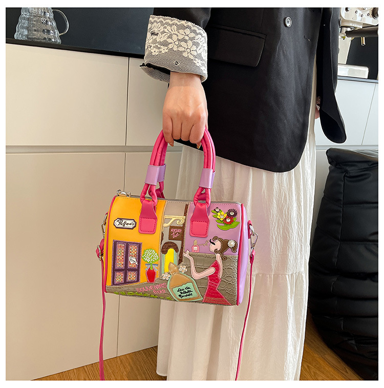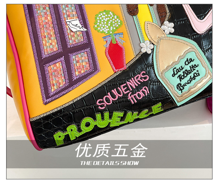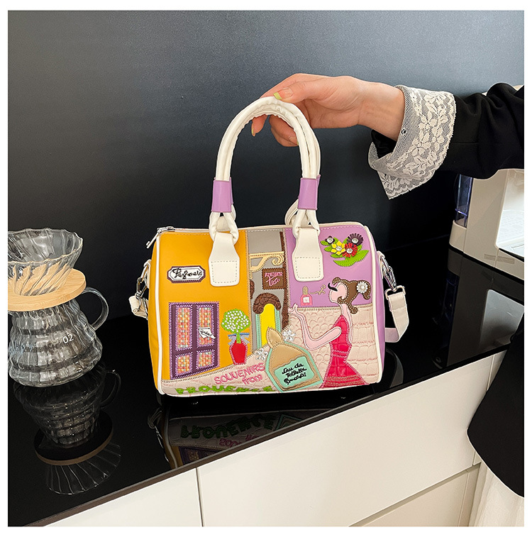 유럽과 미국의 레트로 대용량 휴대용 보스턴 가방 2025 새로운 틈새 자수 테이프 통근 어깨 크로스 바디 백
