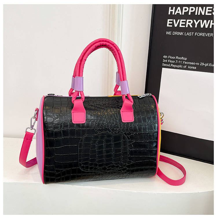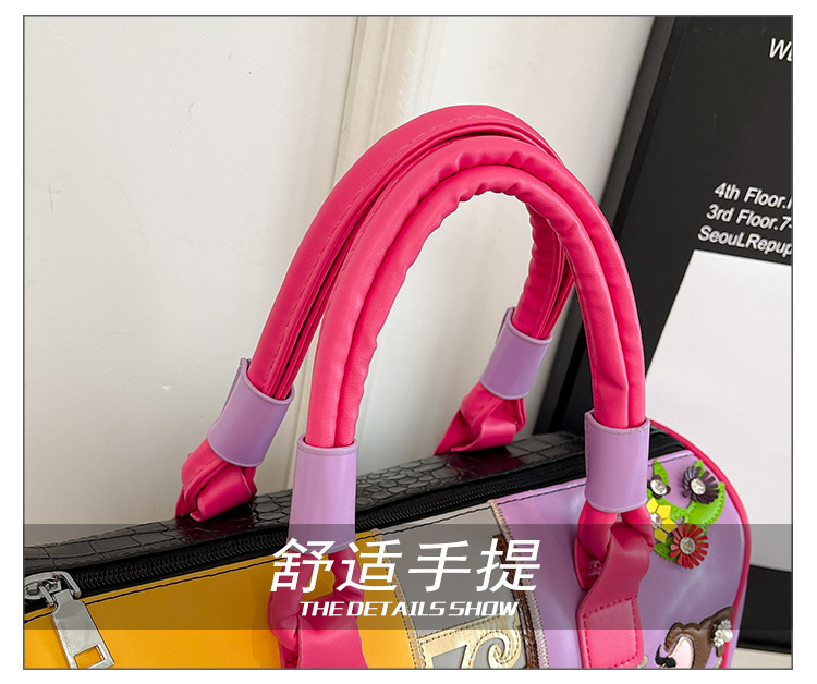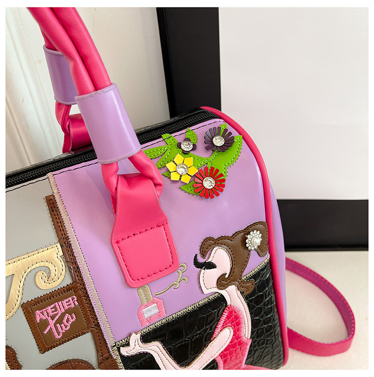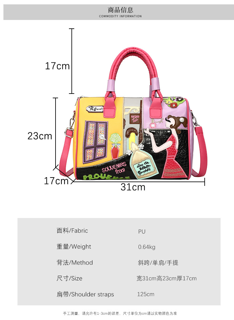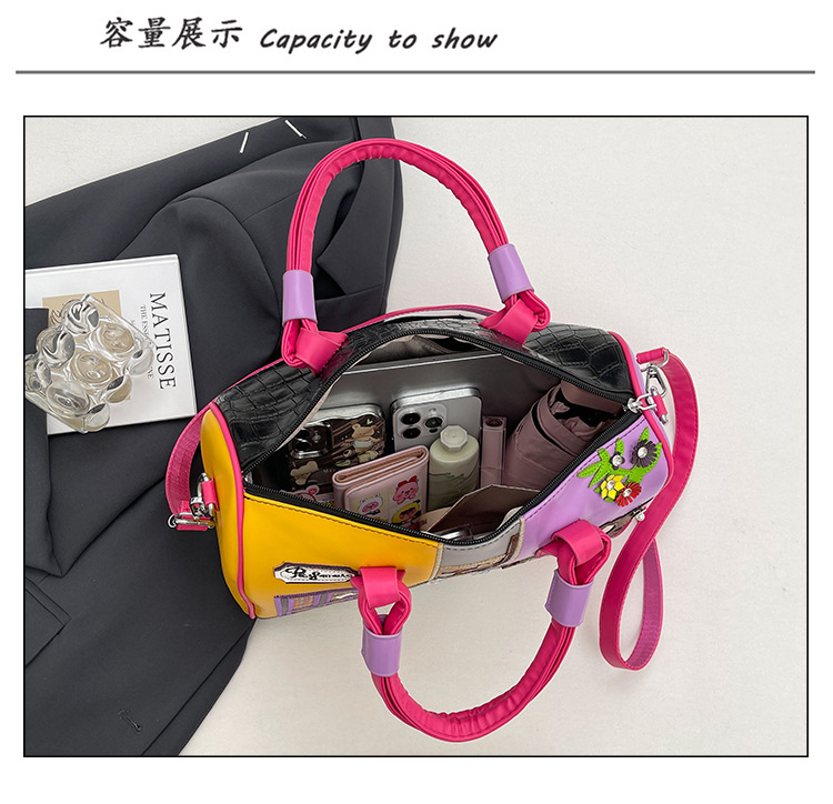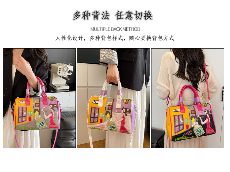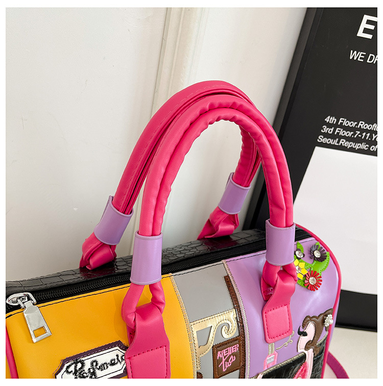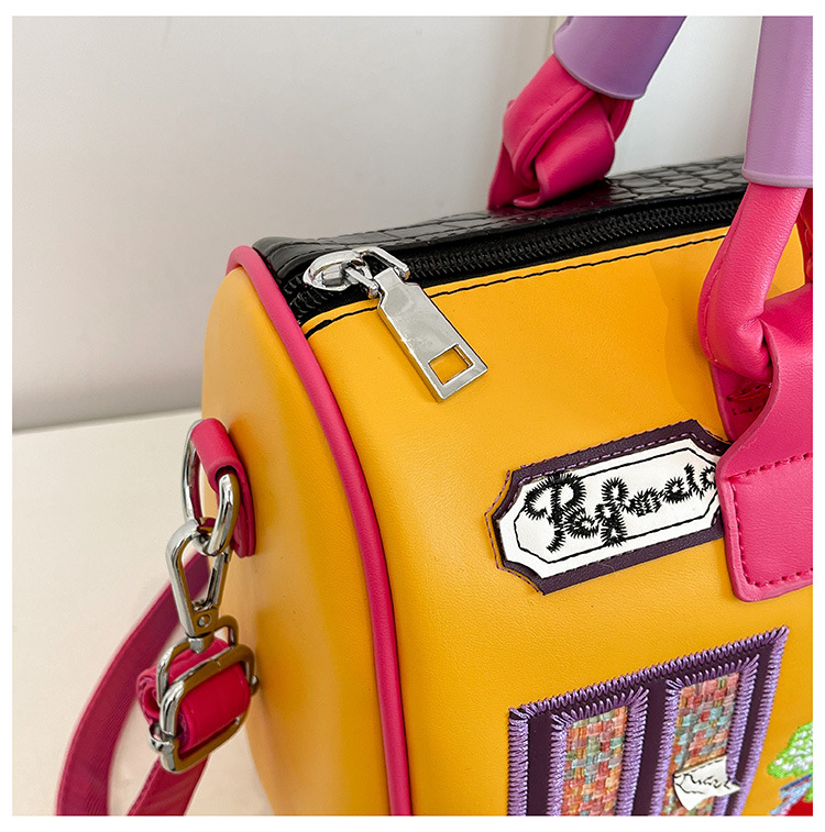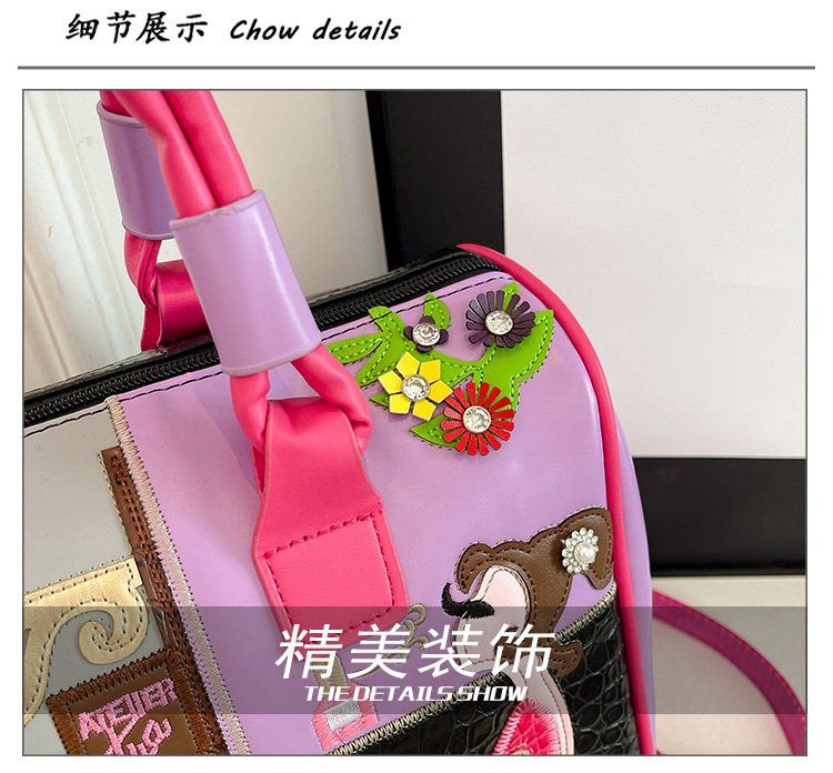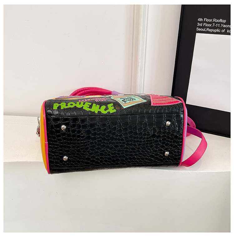 유럽과 미국의 레트로 대용량 휴대용 보스턴 가방 2025 새로운 틈새 자수 테이프 통근 어깨 크로스 바디 백