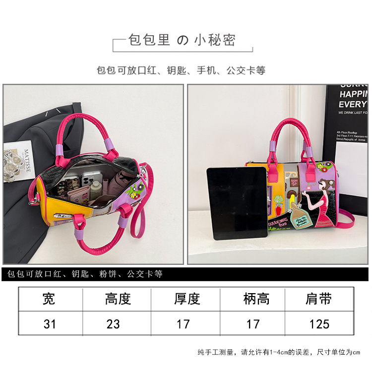 유럽과 미국의 레트로 대용량 휴대용 보스턴 가방 2025 새로운 틈새 자수 테이프 통근 어깨 크로스 바디 백스토어 가기