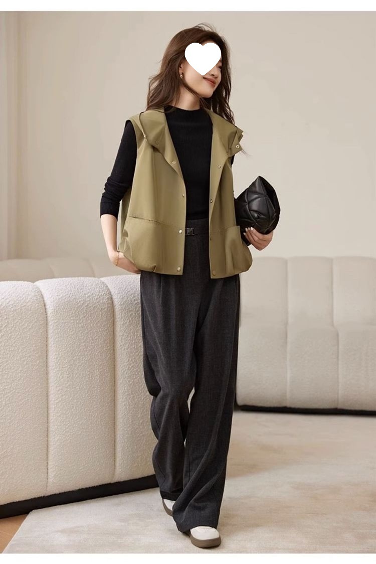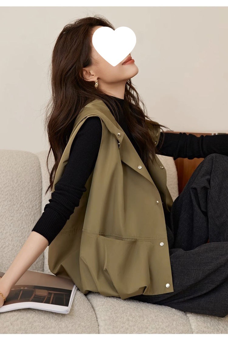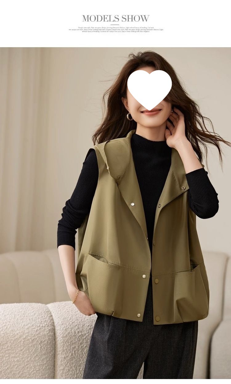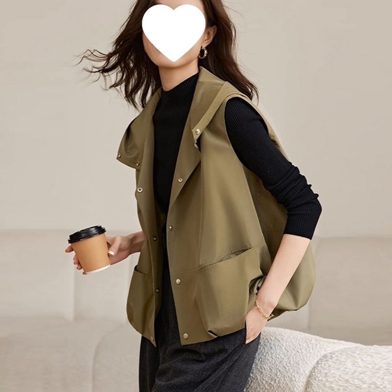 후드 조끼 여성 느슨한 2025 새로운 봄 스타일 양복 조끼 재킷 겉옷 민소매 얇은 재킷 탑스토어 가기