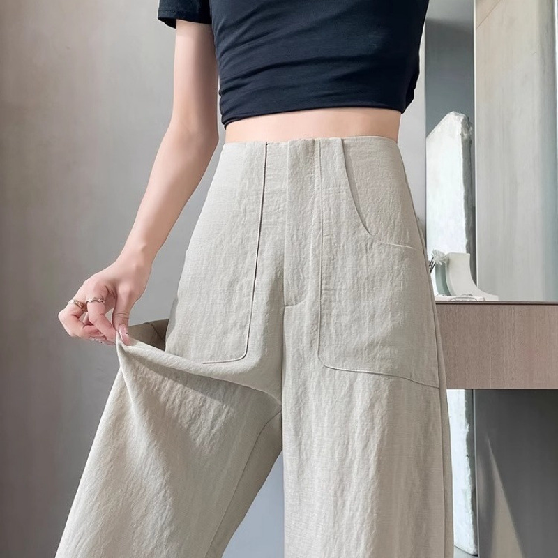 정장 바지 여성 여름 얇은 하이 웨이스트 드레이프 와이드 레그 팬츠 좁은 버전 스트레이트 캐주얼 모핑 바지스토어 가기