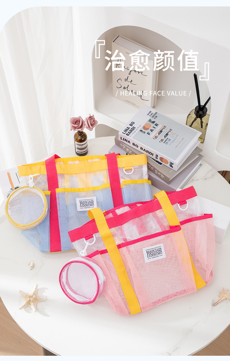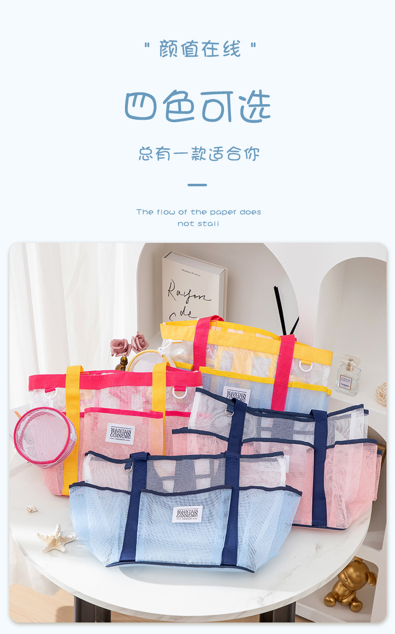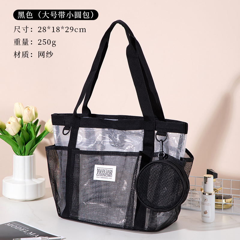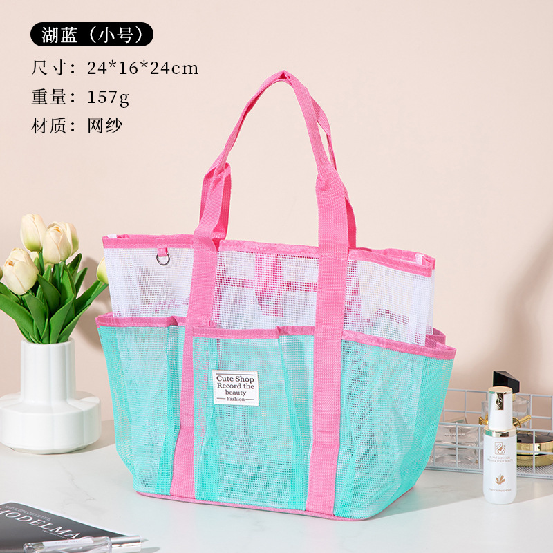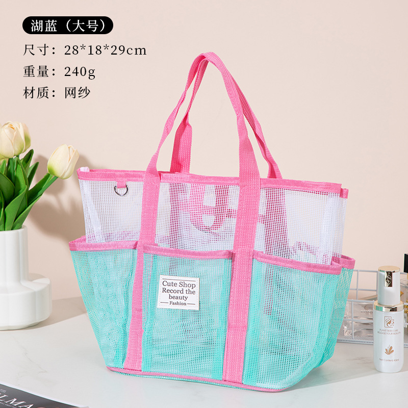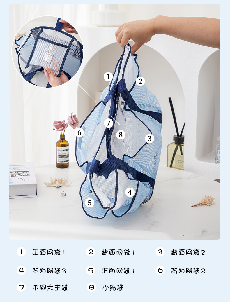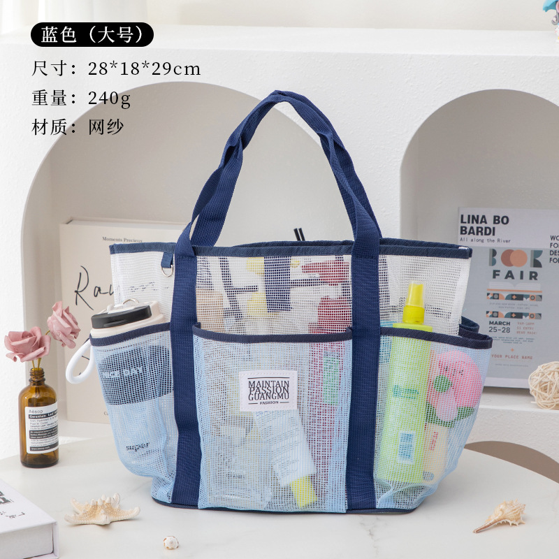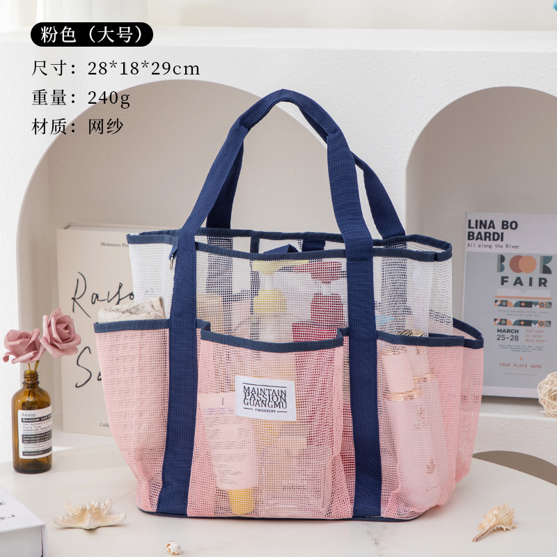 새로운 화장품 가방, 대용량 목욕 및 세면용품 비치백, 여러 개의 포켓이 있는 메쉬 소재의 여행 필수품 수납 가방