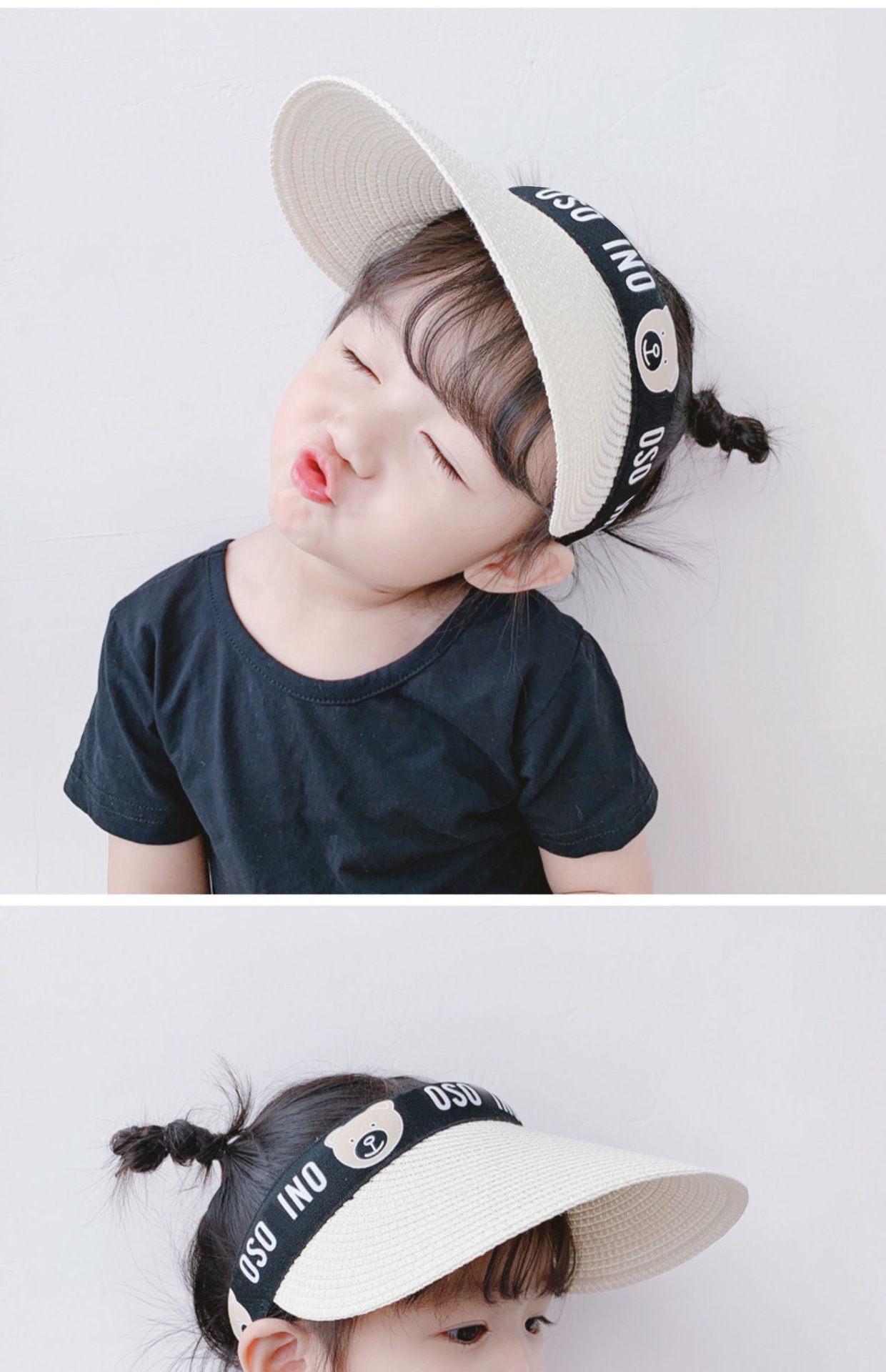 어린이용 태양 모자, 여름용 빈 상단, 챙이 큰 태양 모자, 부모-자식 소녀용 태양 모자, 남성 및 여성용 아기 해변 모자스토어 가기