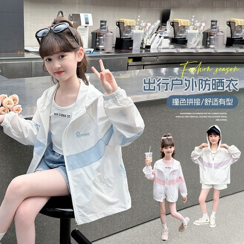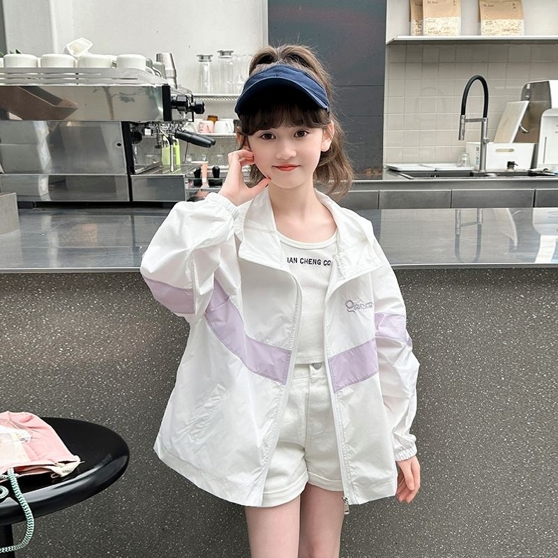 여아용 자외선 차단 의류 여름 얇은 2025 새로운 스타일 아동용 여아용 스타일리시한 경량 재킷 여아용 에어컨 셔츠스토어 가기