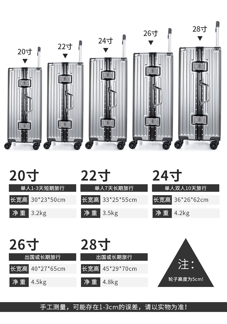 3、关于配件:箱子因生产批次不同会有某些款式的配件不同(包括但不止:轮子,拉链,内部结构,拉杆,提手,锁、里布),请介意的亲们慎拍哈,沟通尽量问清楚!