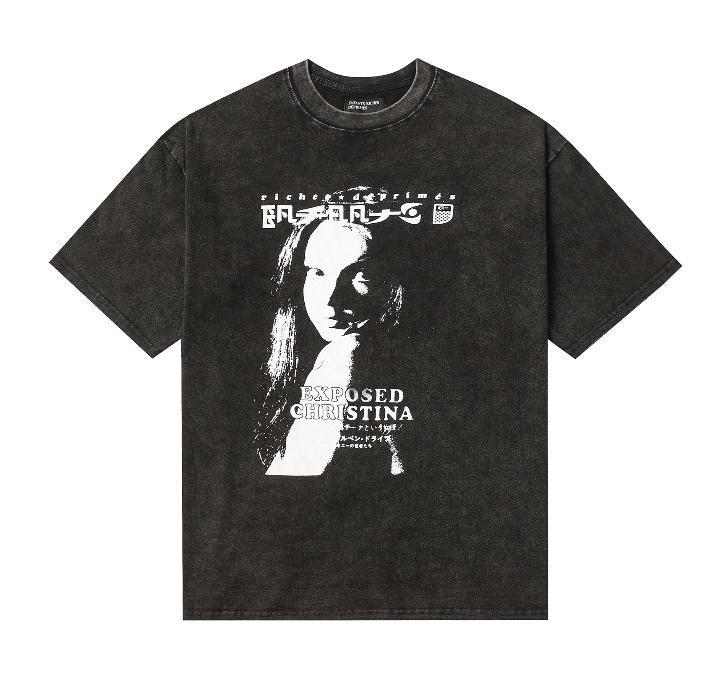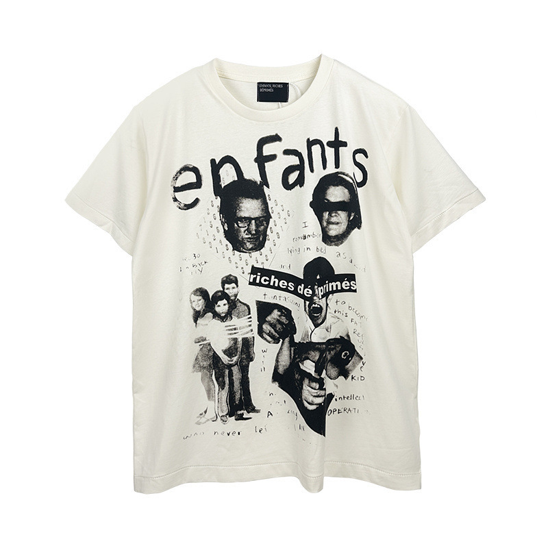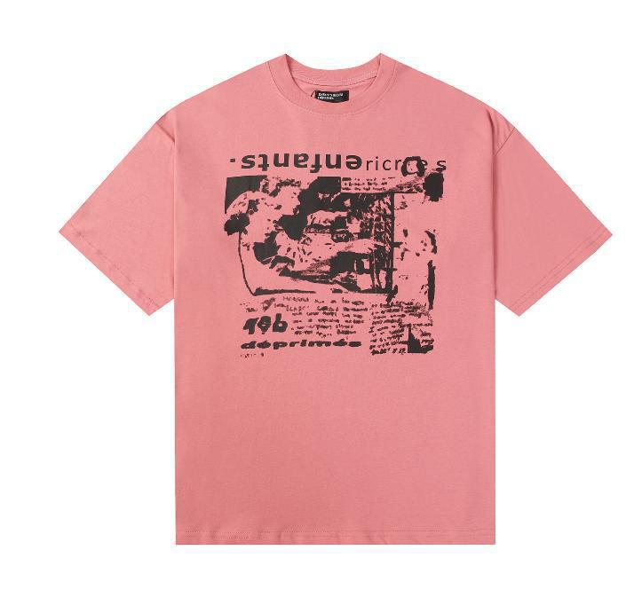 2024 새로운 스타일 우울한 부자 두 번째 세대 편지 초상화 인쇄 느슨한 캐주얼 반팔 티셔츠 트렌디 브랜드 남성과 여성 트렌디스토어 가기