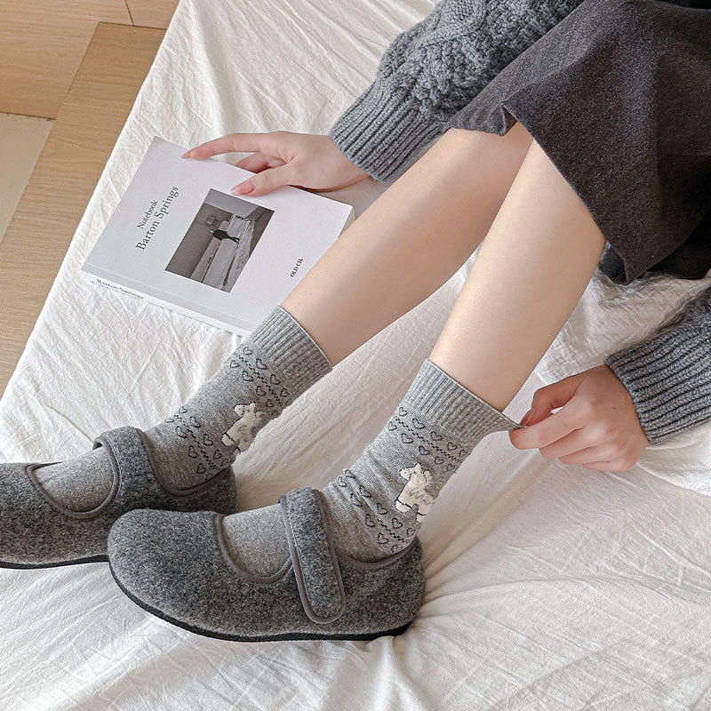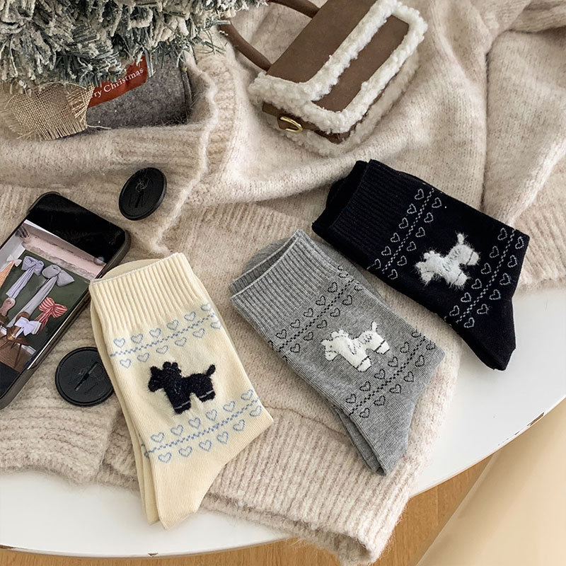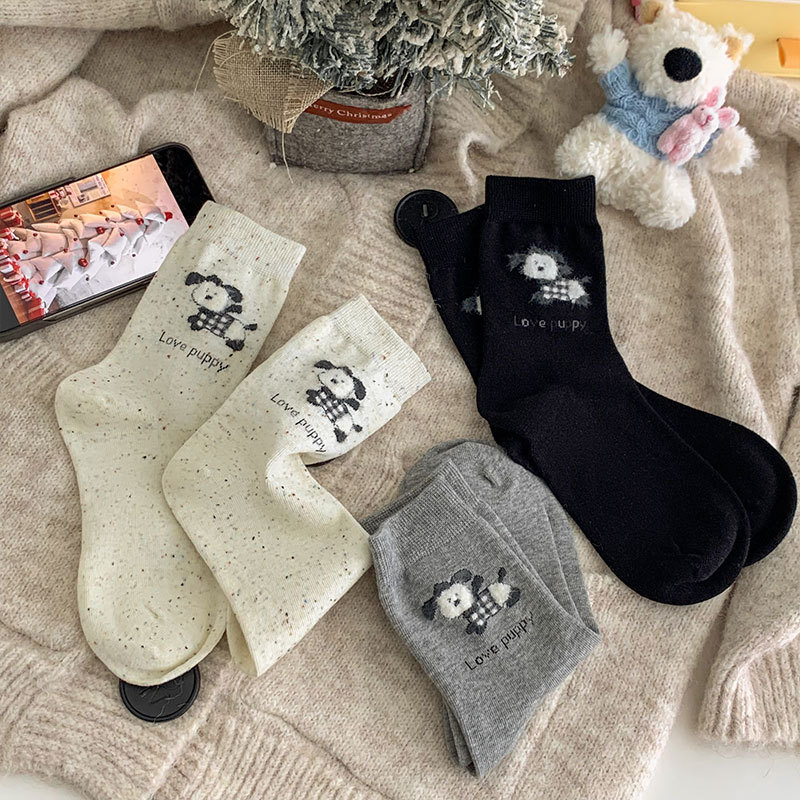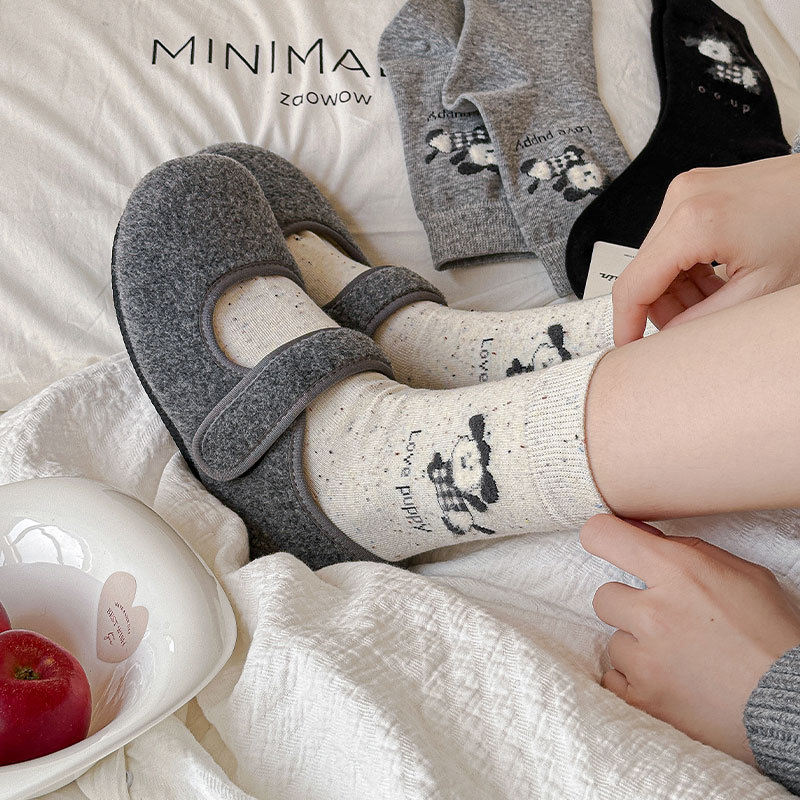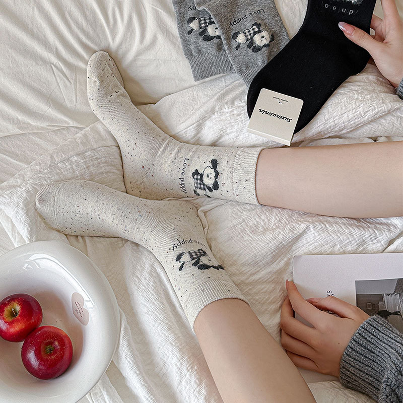 흰색 양말 강아지 동물 패턴 중간 길이 면 양말 귀엽고 달콤한 양말 캐주얼 통기성 산후 양말