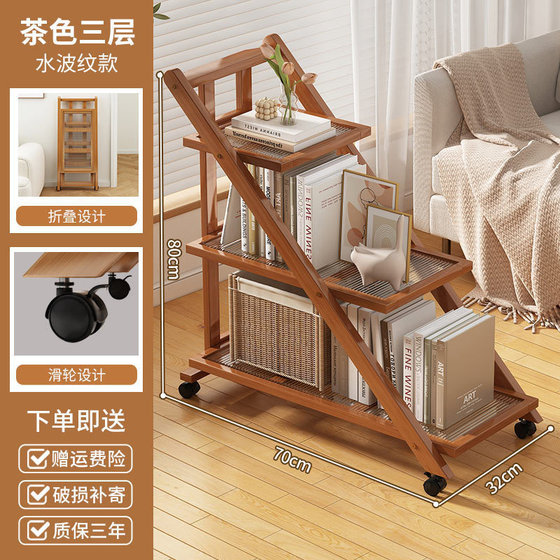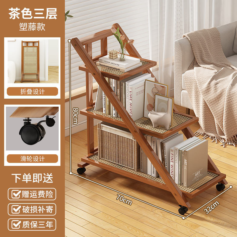 이동식 접이식 책장 보관함 어린이 보관함 바퀴가 달린 가정용 트롤리 바닥에 놓을 수 있는 간단한 다층 책장스토어 가기