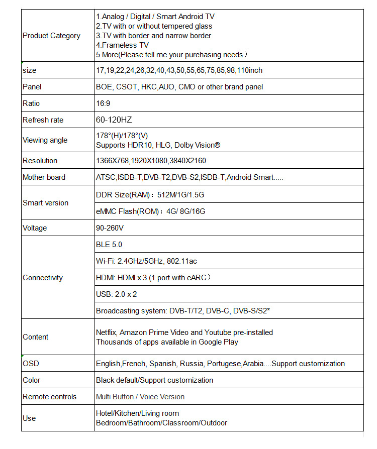 제조업체 도매 19 22 26 인치 안드로이드 와이파이 TV스토어 가기