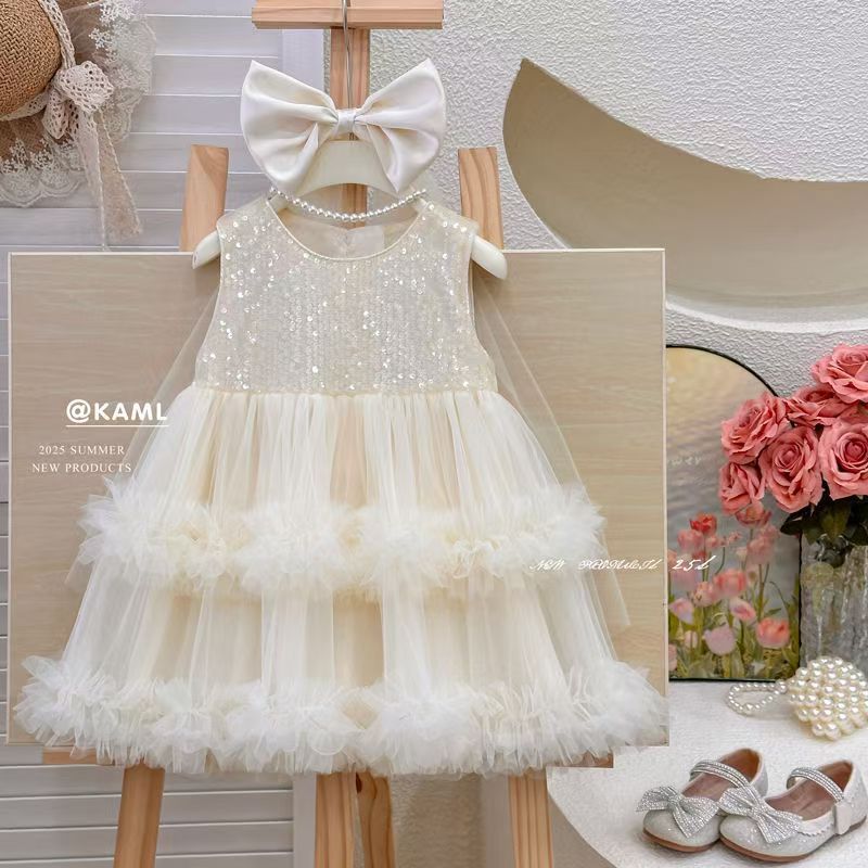 2025년 여자 아기의 새로운 머리핀 드레스, 어린이의 달콤하고 세련된 거즈 스커트 여름 드레스, 대외 무역 도매를 생방송으로 제공