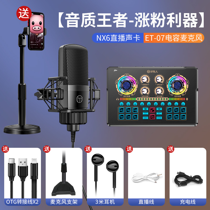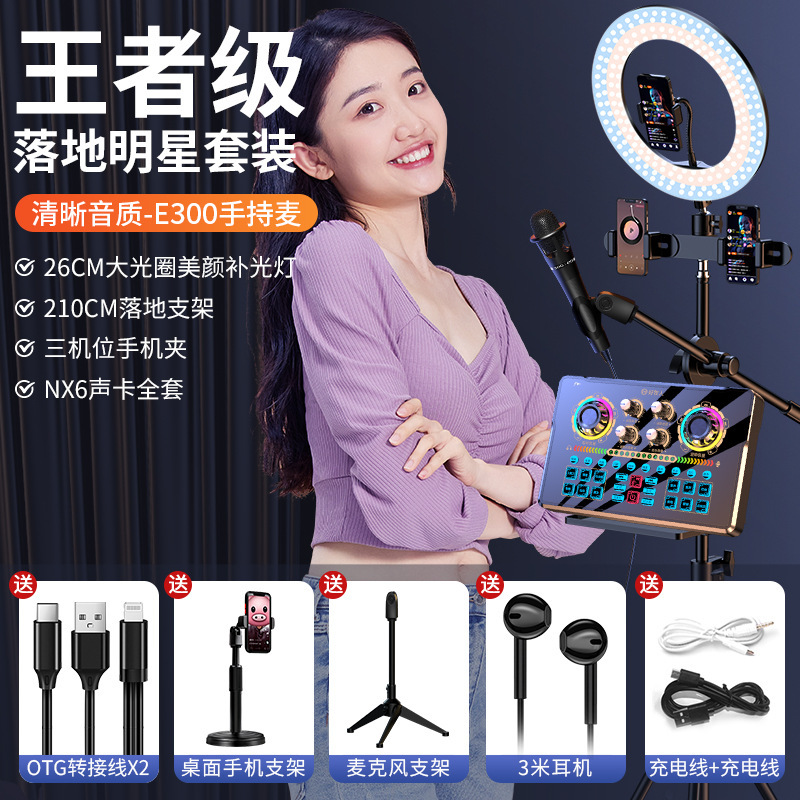 • NX6 사운드 카드 + 휴대용 마이크 + 플로어 스탠딩 필 라이트의 완전한 세트 ️스타 세트