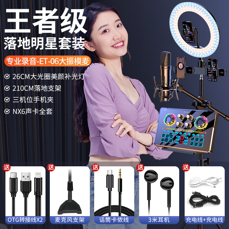 • NX6 사운드 카드 전체 세트 + 대형 다이어프램 마이크 + 플로어 스탠딩 필 라이트 ️스타 세트