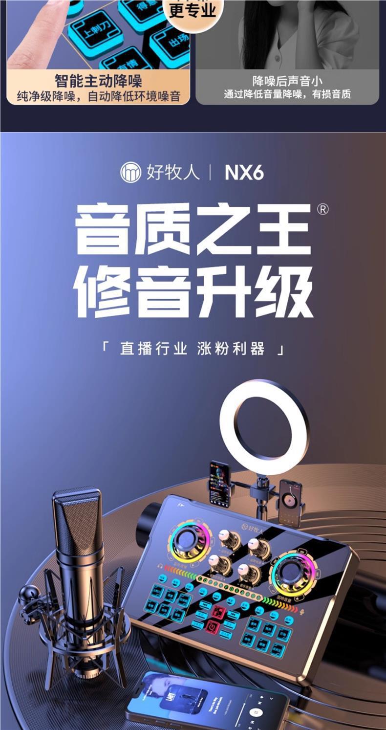 • NX6 사운드 카드 전체 세트 + 대형 다이어프램 마이크 + 데스크탑 필 라이트 ️마스터 세트