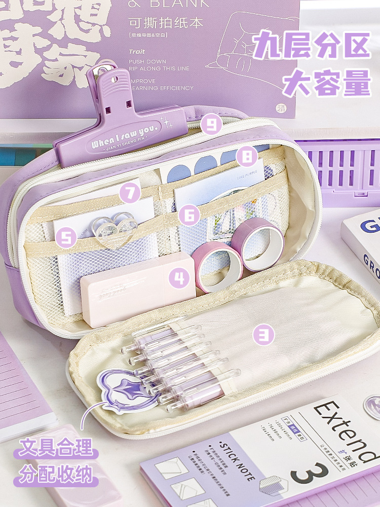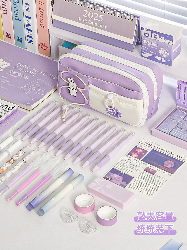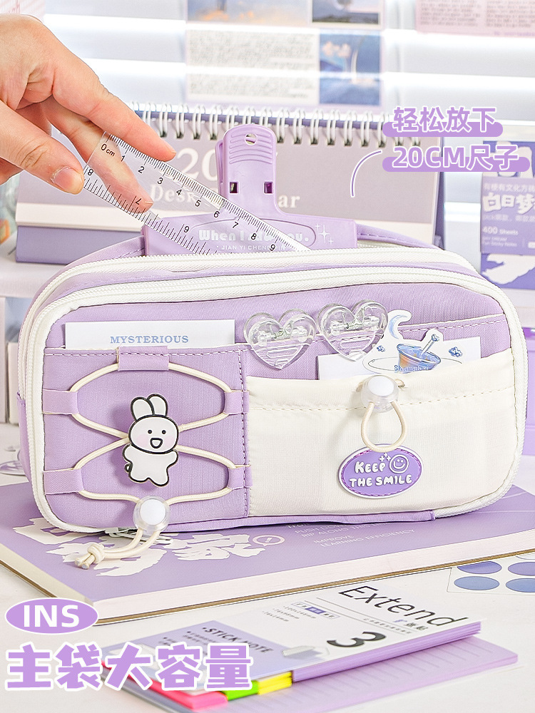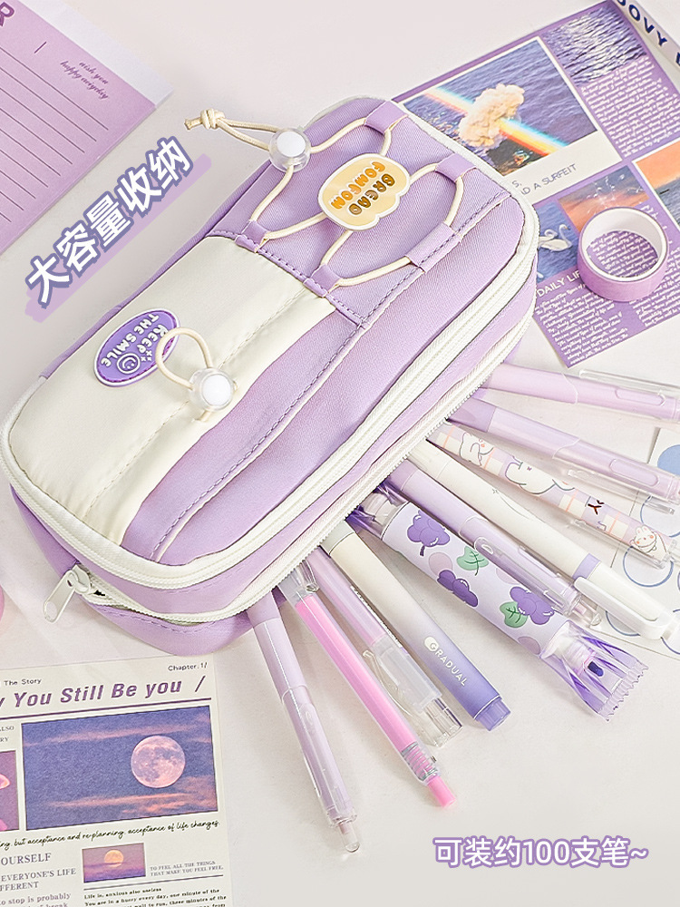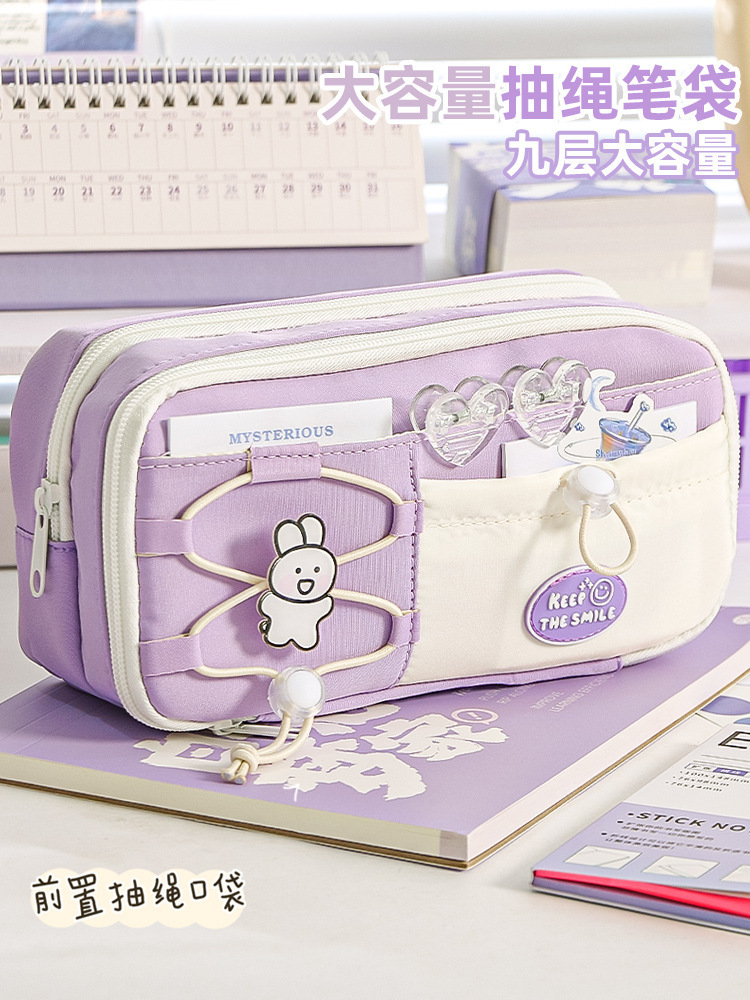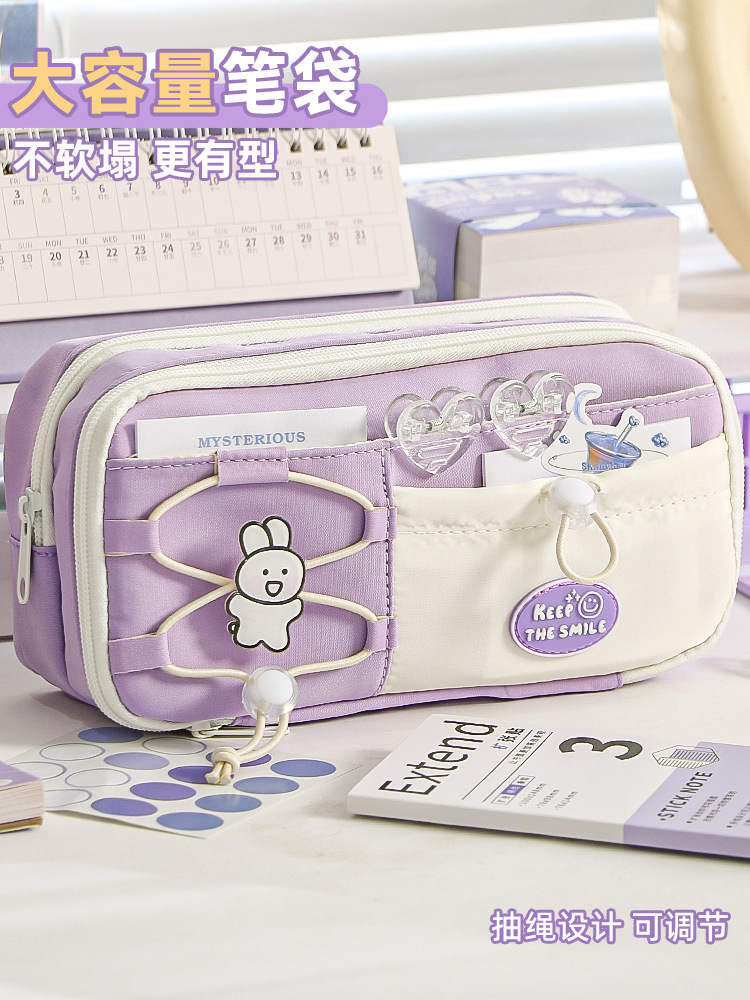 2025 새로운 귀여운 소금 더블 드로스트링 슈퍼 귀여운 문구 상자 대용량 간단한 고가치 연필 케이스 문구 상자스토어 가기