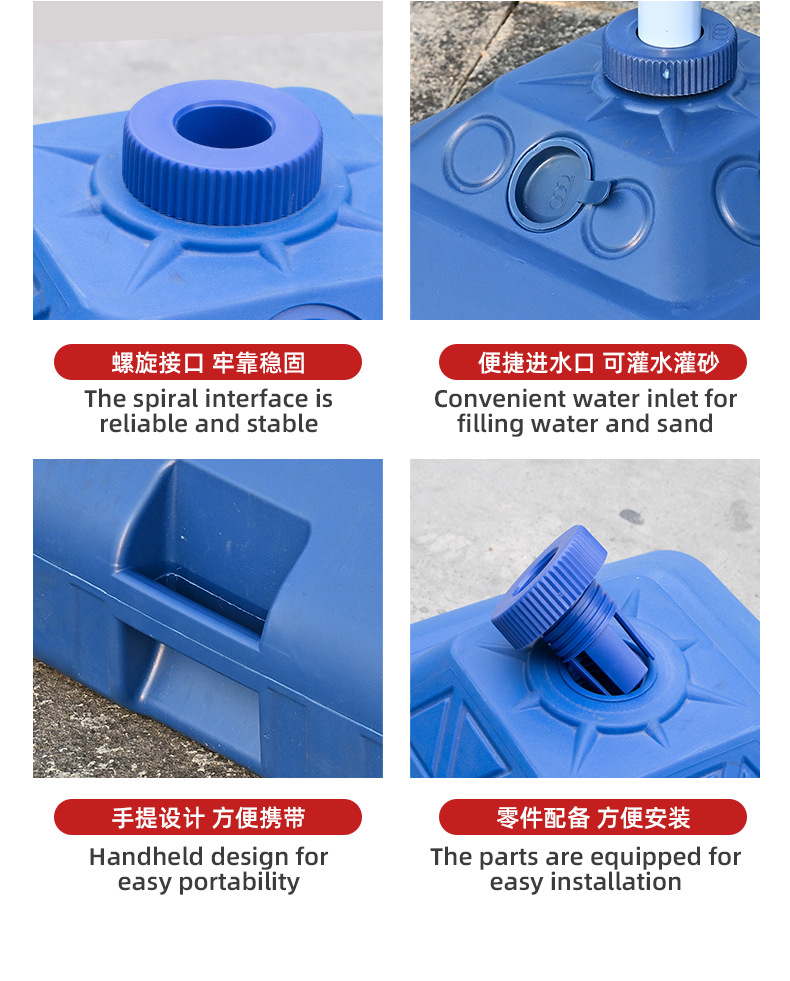 야외 파라솔 삽입형 우산 베이스는 견고하고 안전하며 물이 담긴 태양 우산 물 베이스가 있는 크로스 4피트 베이스입니다.스토어 가기