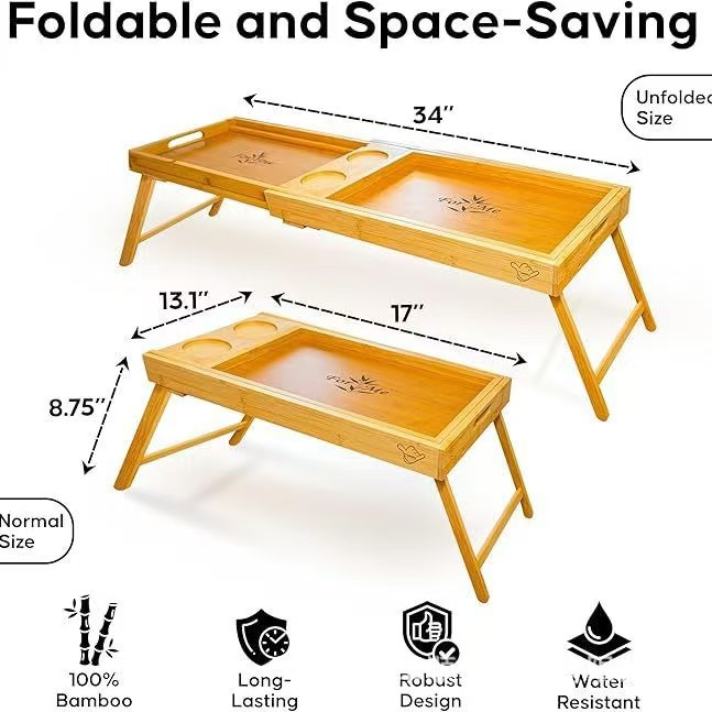 대나무 트레이 테이블 홈 침대 접이식 스낵 트레이 랙 풀 아웃 더블 테이블 과일 랙 단단한 나무 보관함