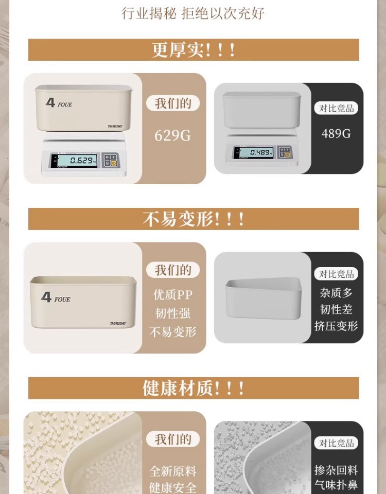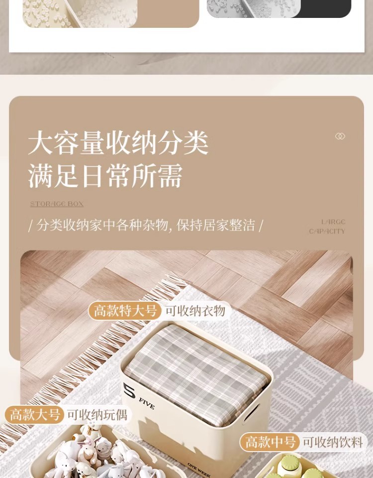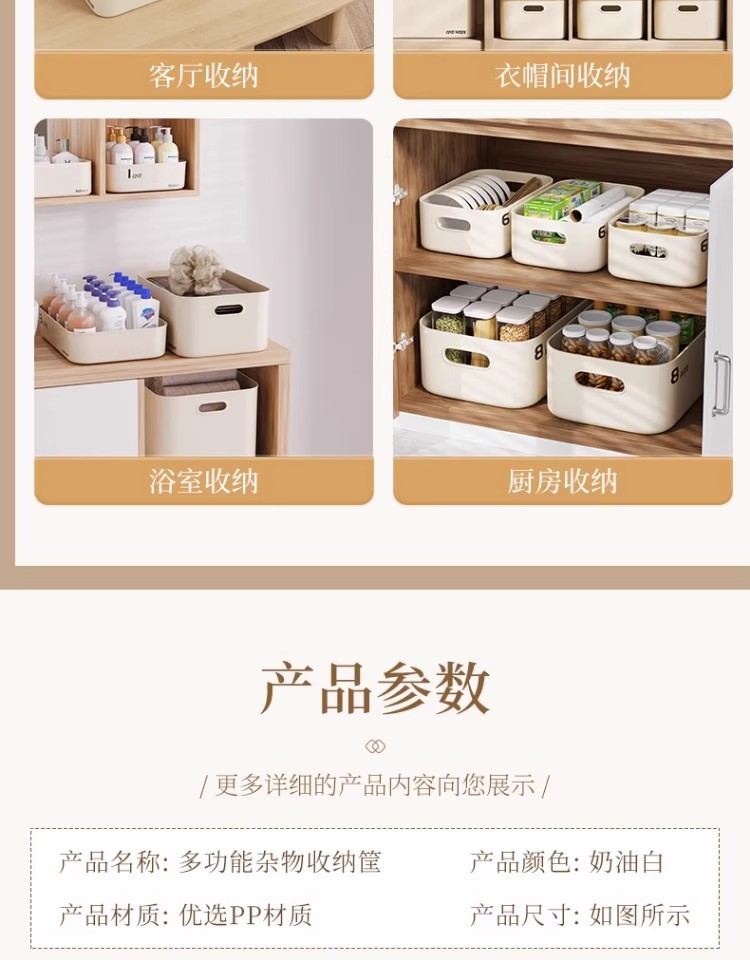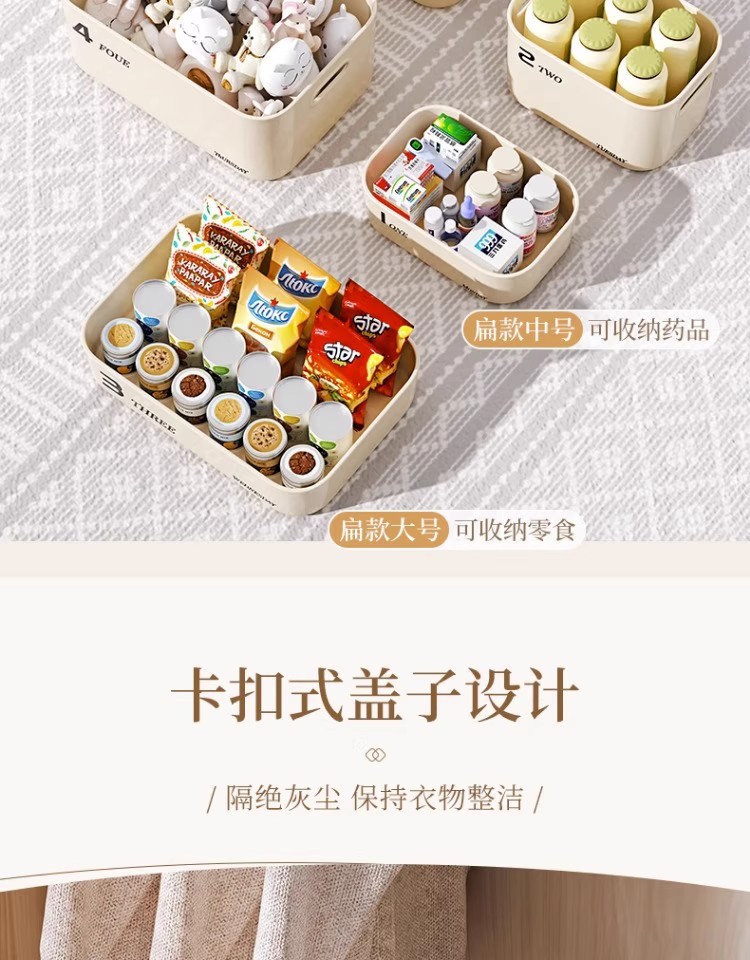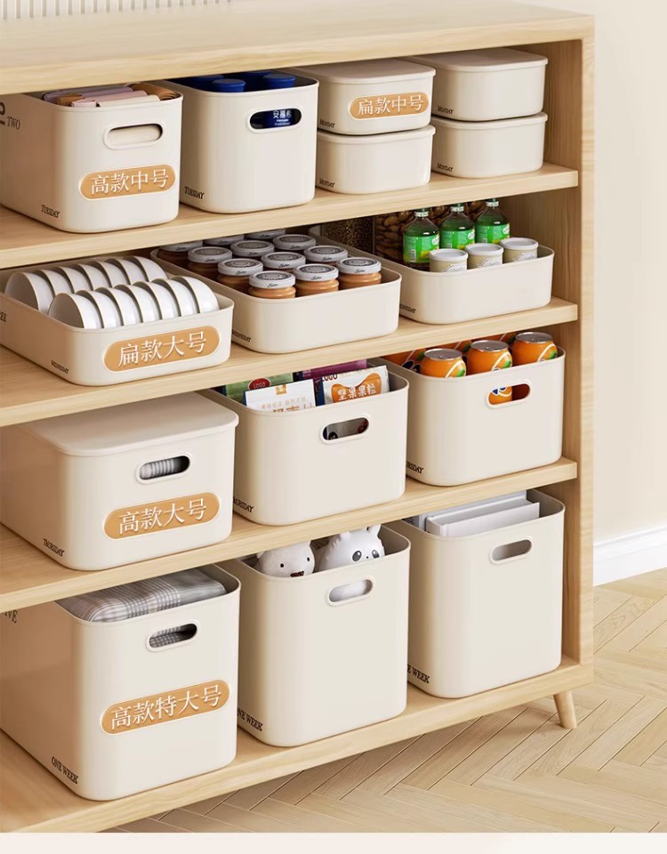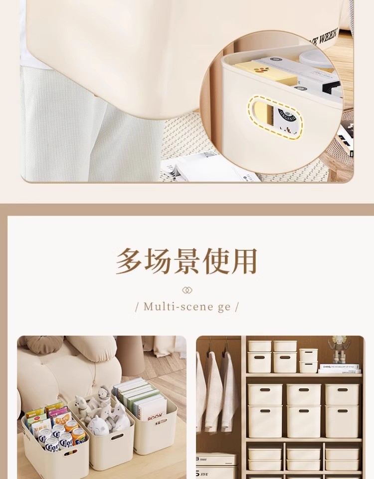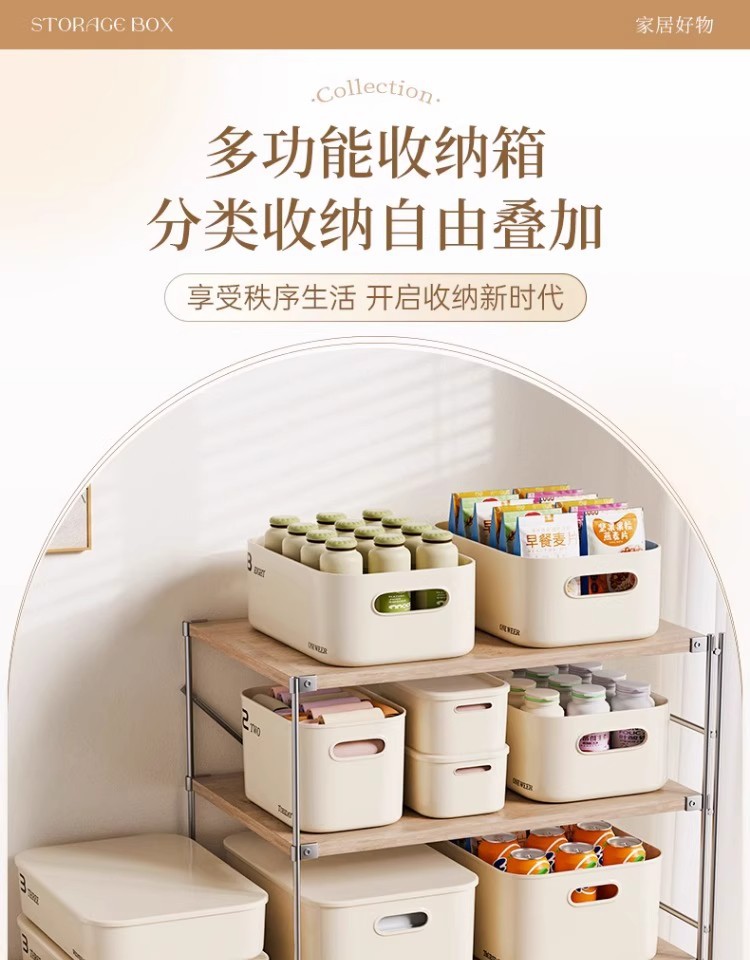 가정용 크림 스타일 데스크탑 잡화 보관 상자 스낵 장난감 보관 상자 대용량 보관 상자 플라스틱 정리 상자스토어 가기