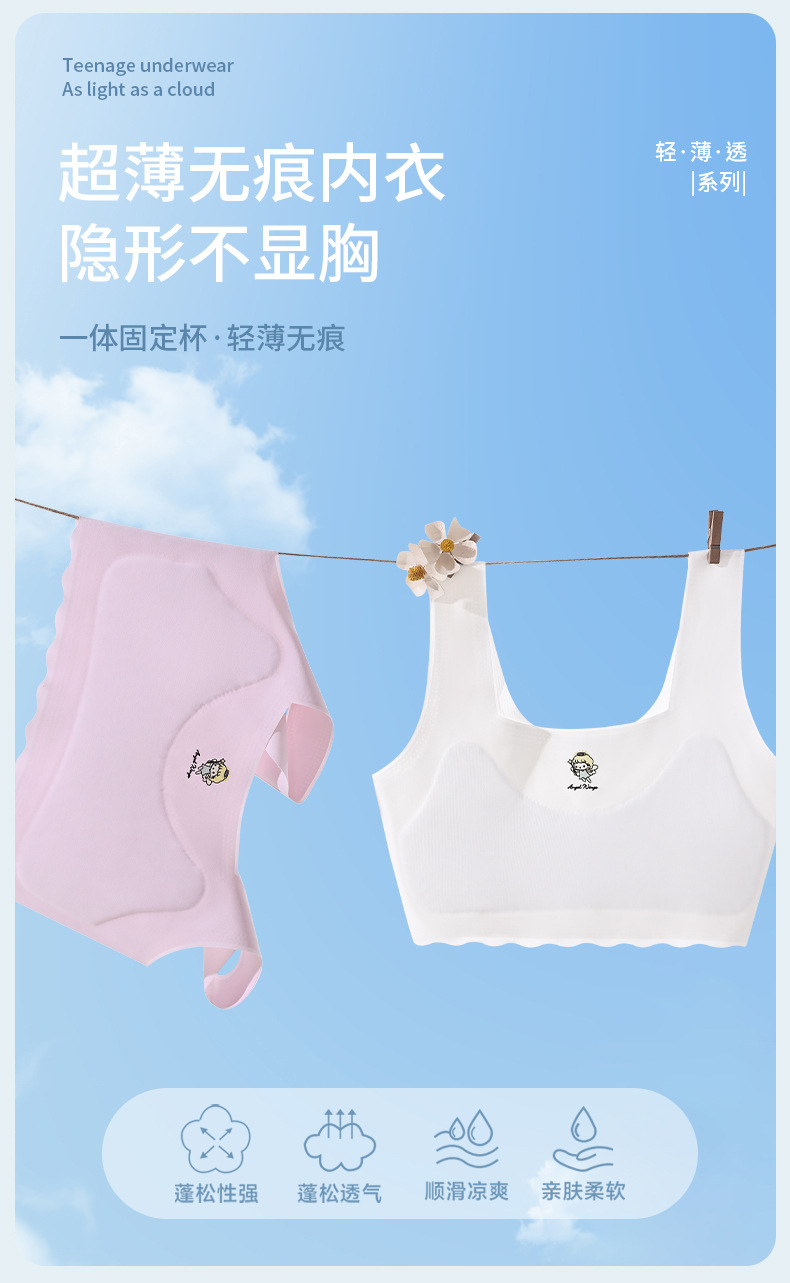 발달기 여아 조끼 브라 1단계 노출방지 초등학생 튜브탑 심리스 조끼 볼록방지 속옷 99