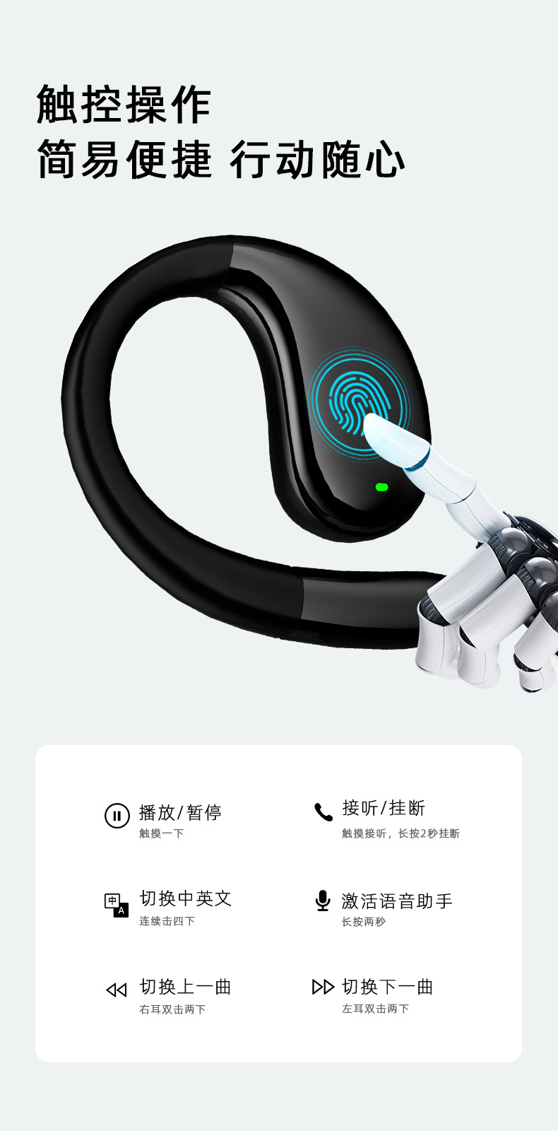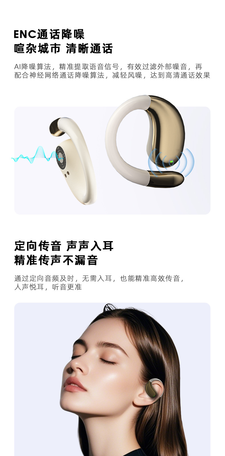 2025 새로운 블루투스 헤드셋 높은 음질 귀 매달린 무선 스포츠 맞춤형 AI 스마트 번역 헤드셋