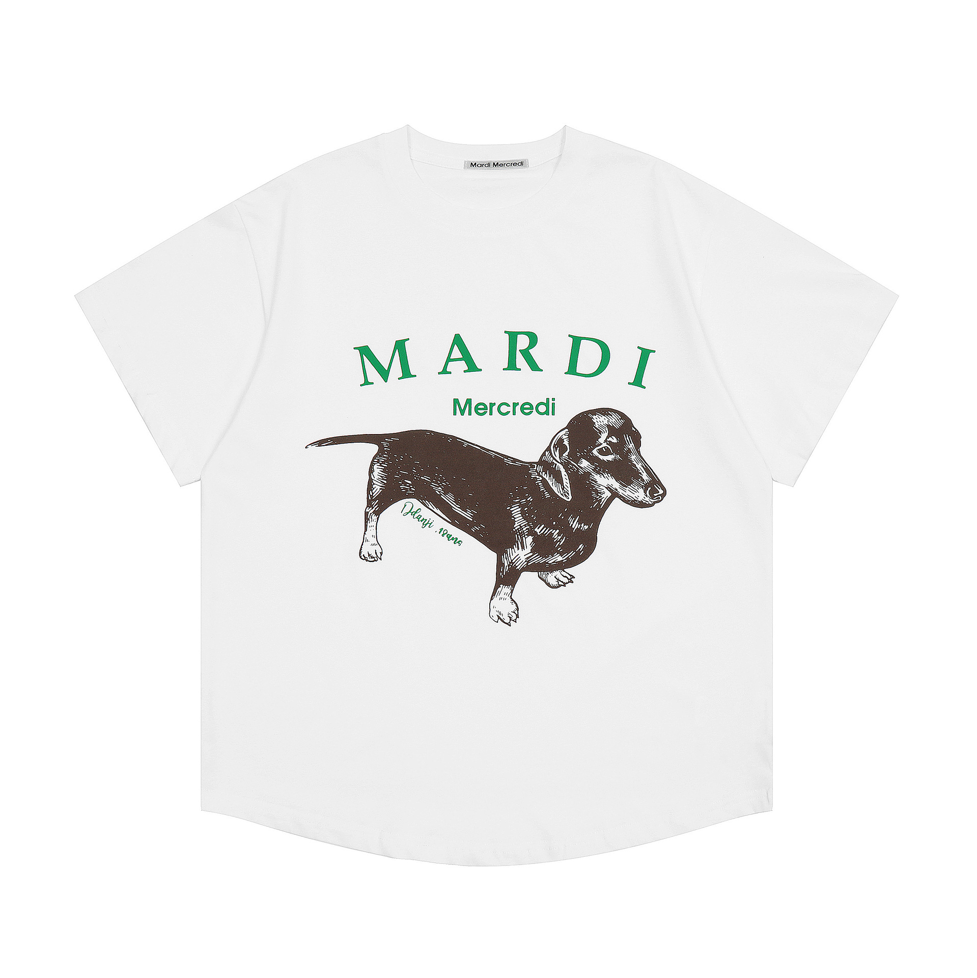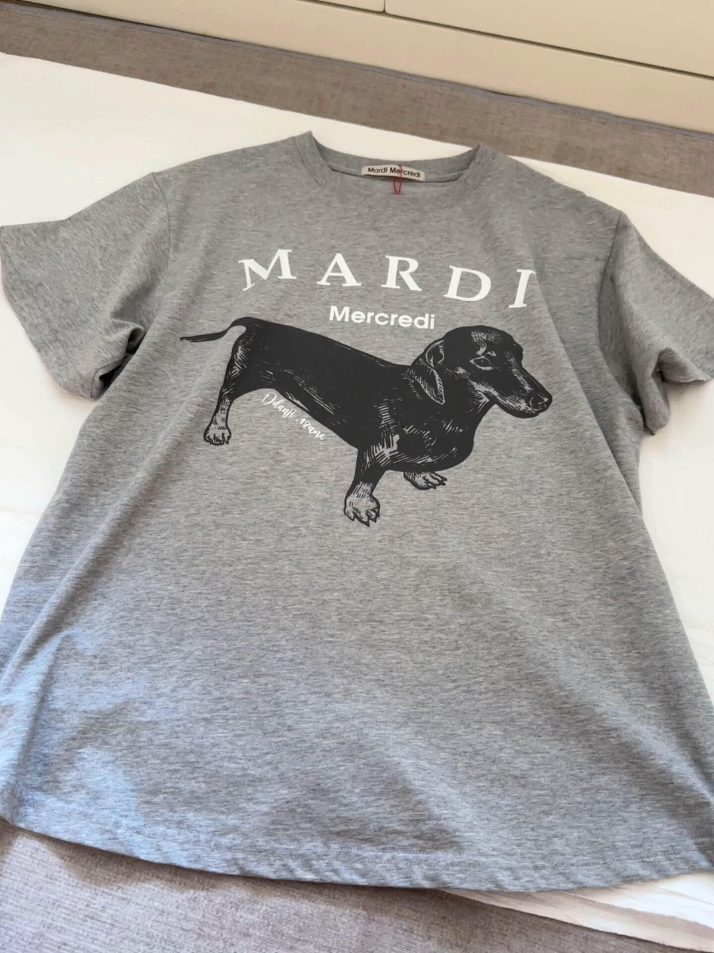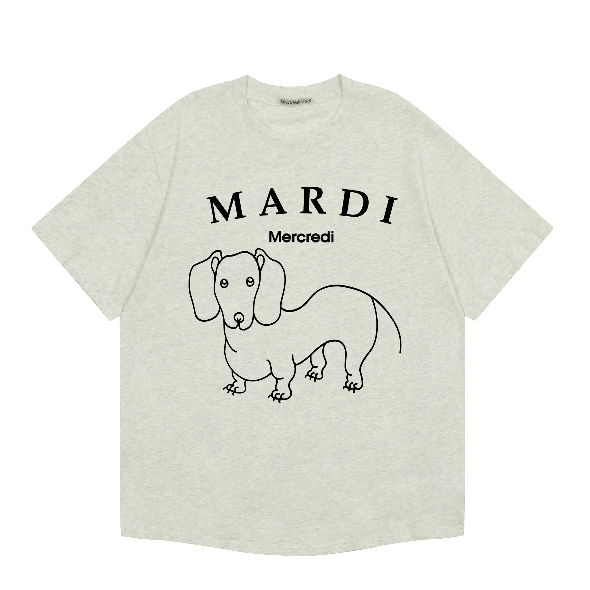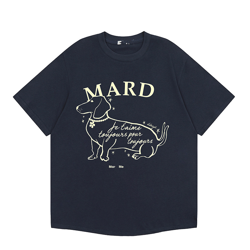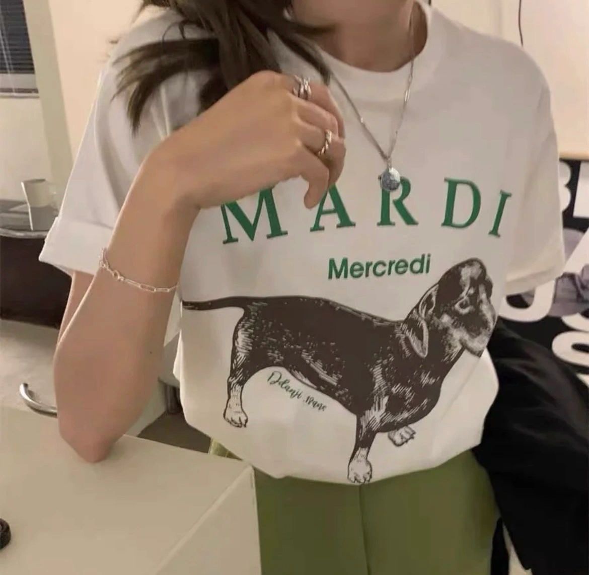 한국 유행 브랜드 반팔 데이지 닥스 훈트 개 인쇄 여름 라운드 넥 퓨어 코튼 골드 하이 실버 같은 스타일 느슨한 티셔츠 여성을위한스토어 가기