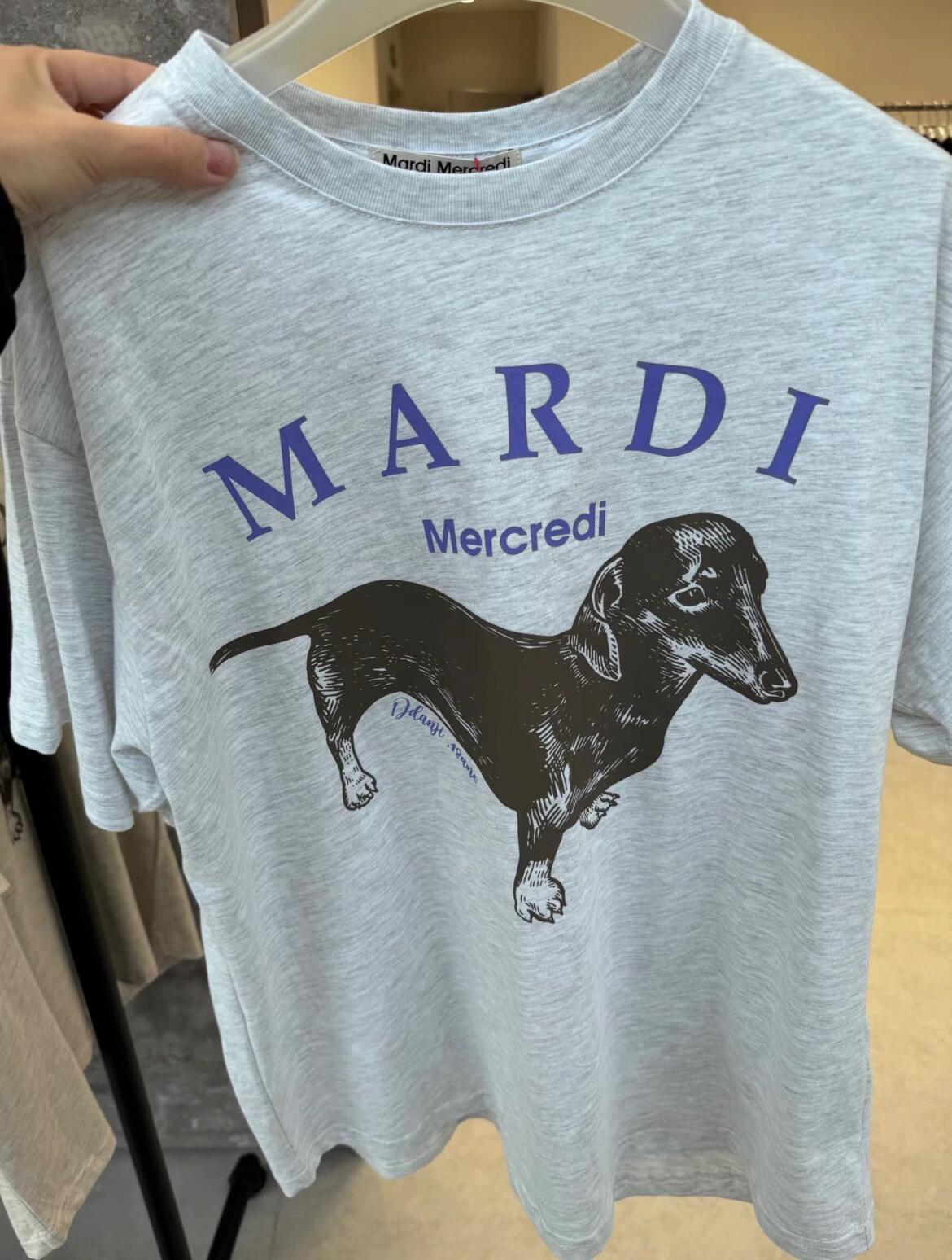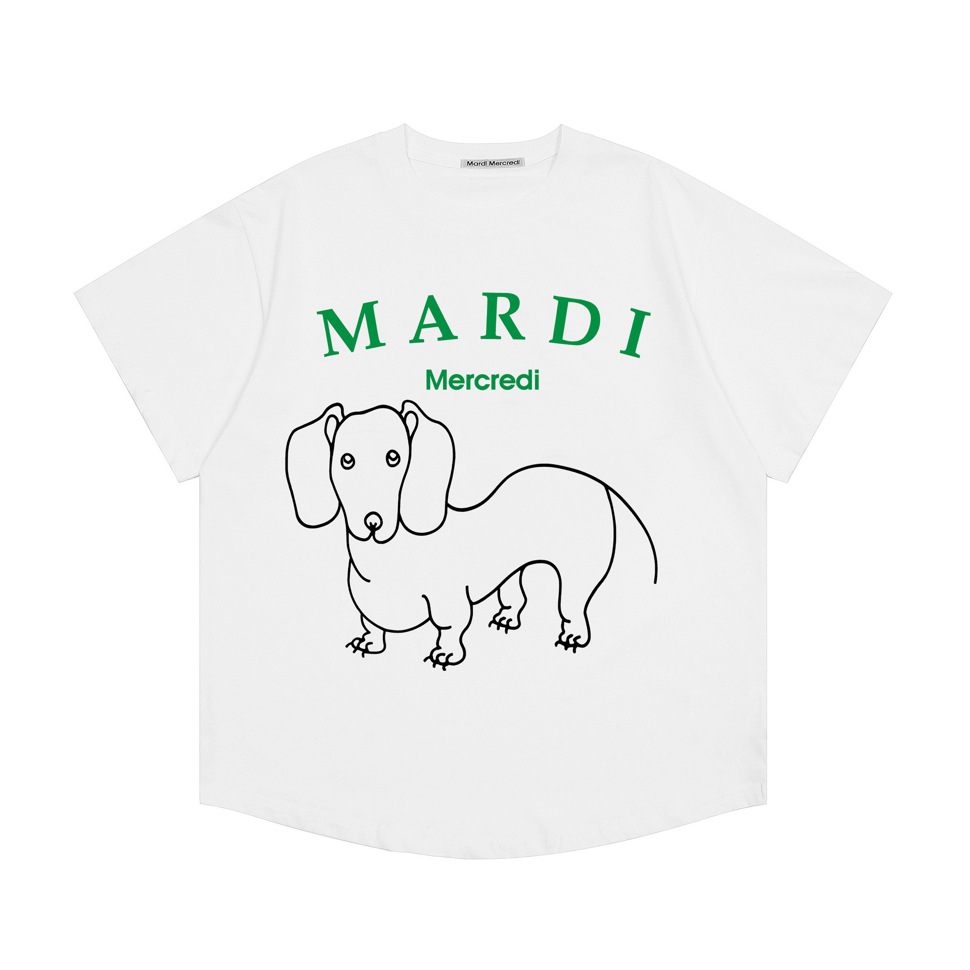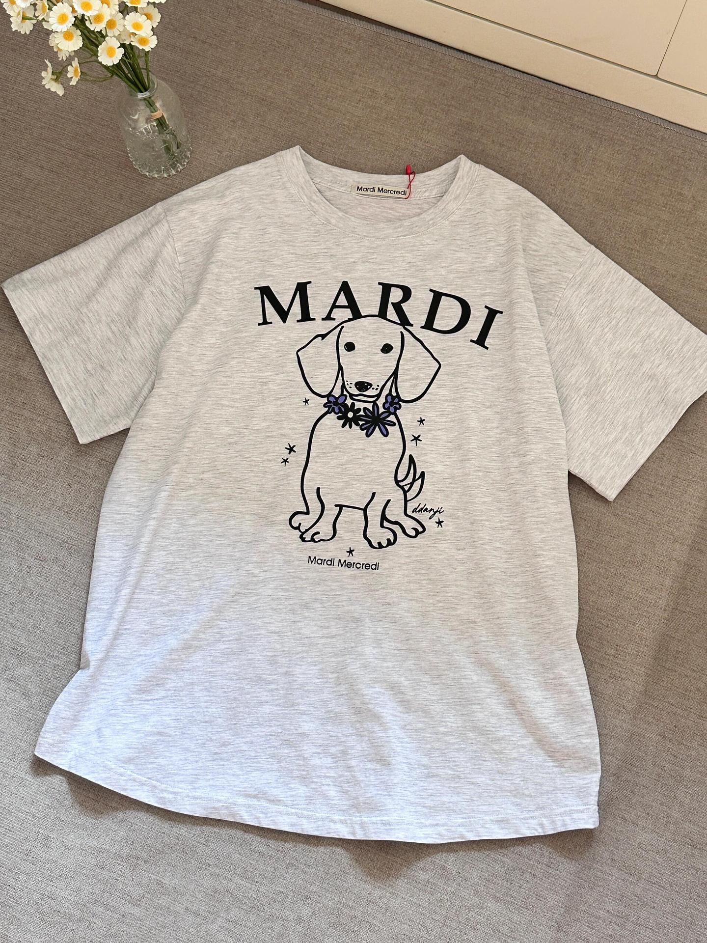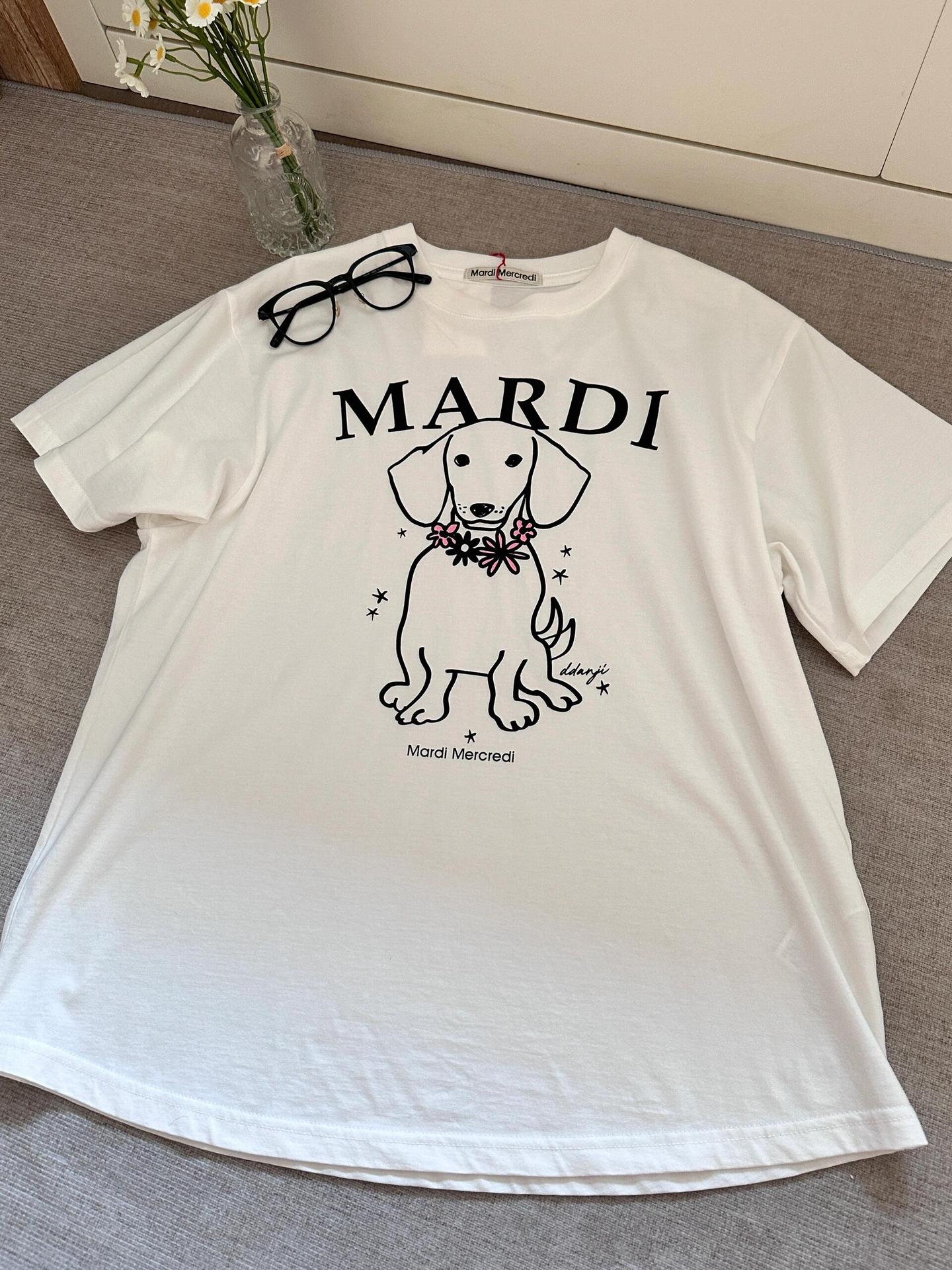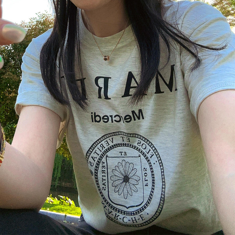 한국 유행 브랜드 반팔 데이지 닥스 훈트 개 인쇄 여름 라운드 넥 퓨어 코튼 골드 하이 실버 같은 스타일 느슨한 티셔츠 여성을위한스토어 가기