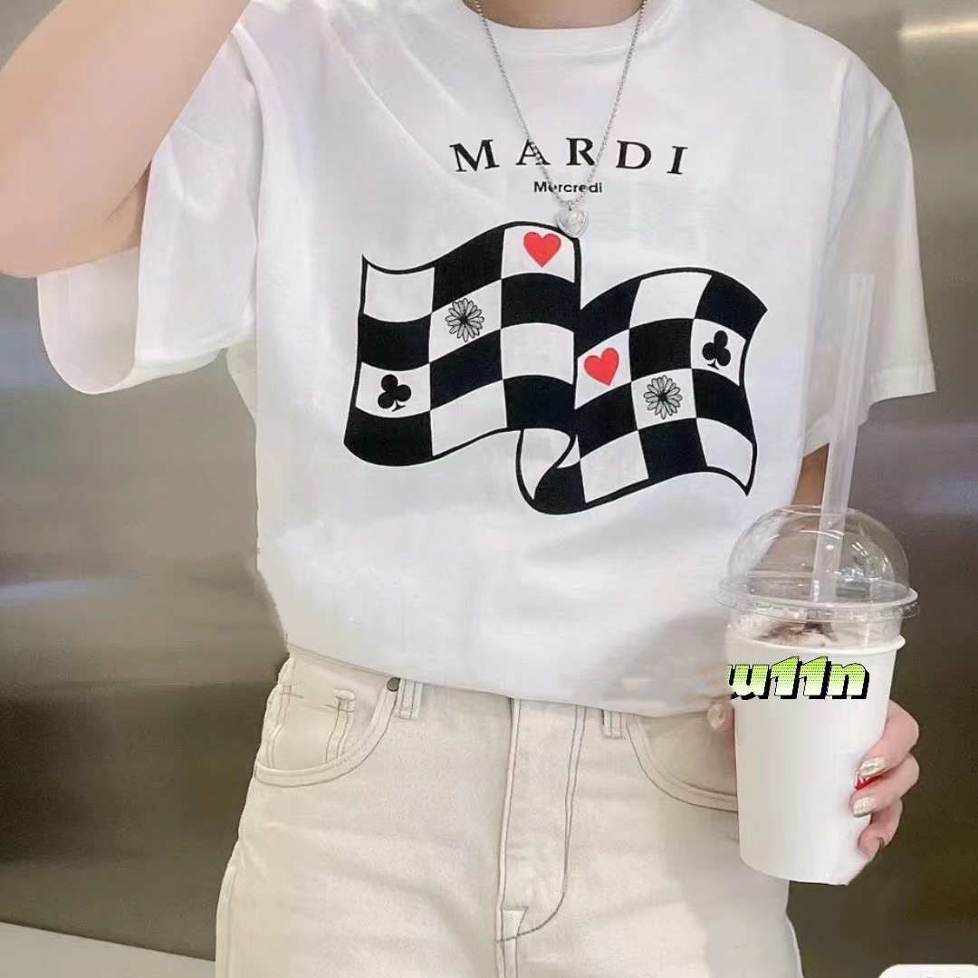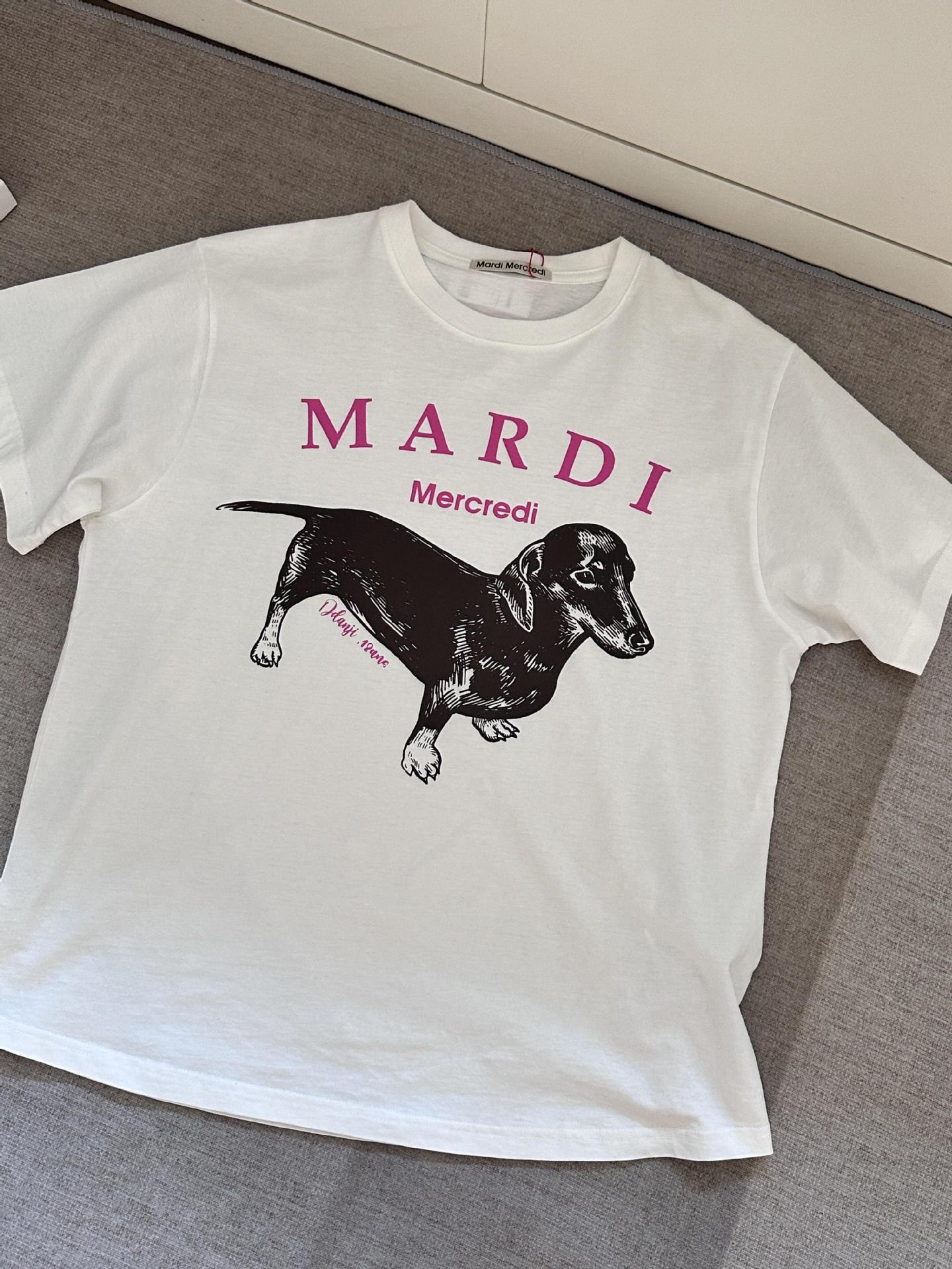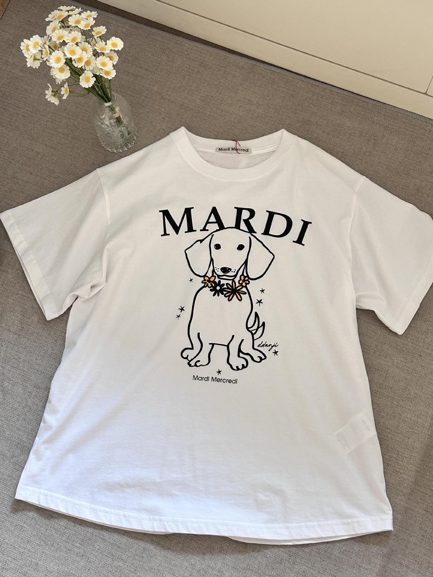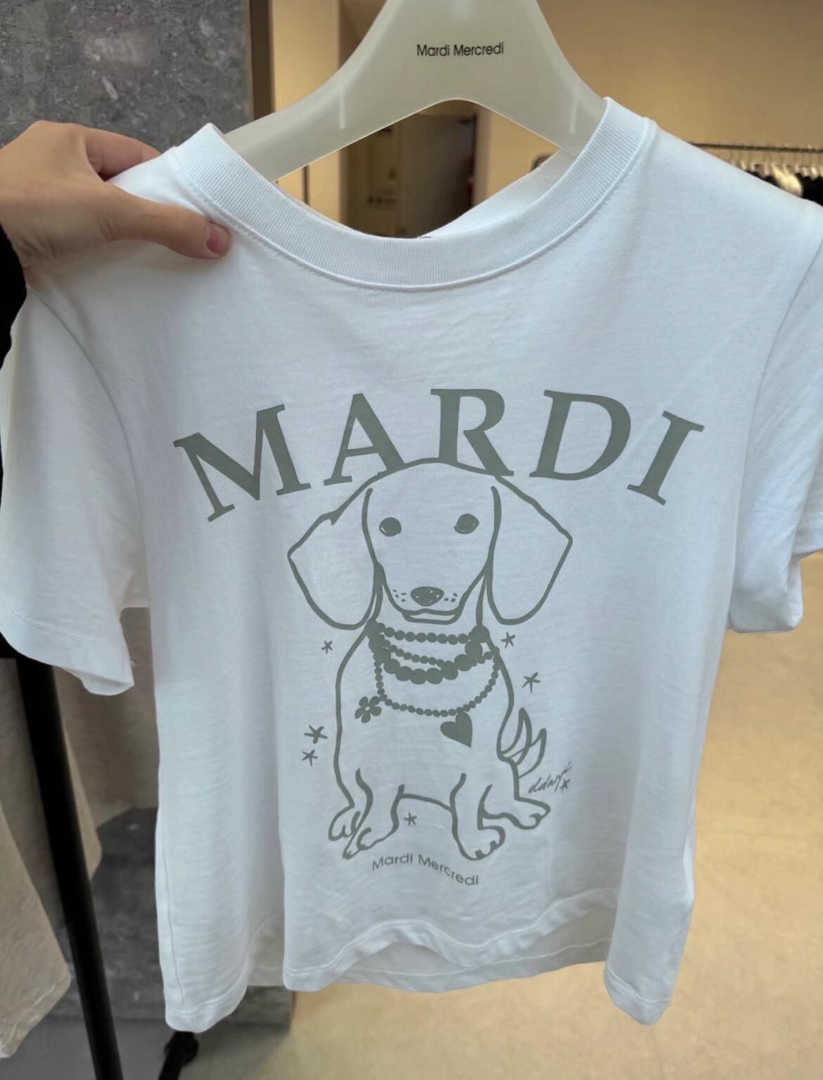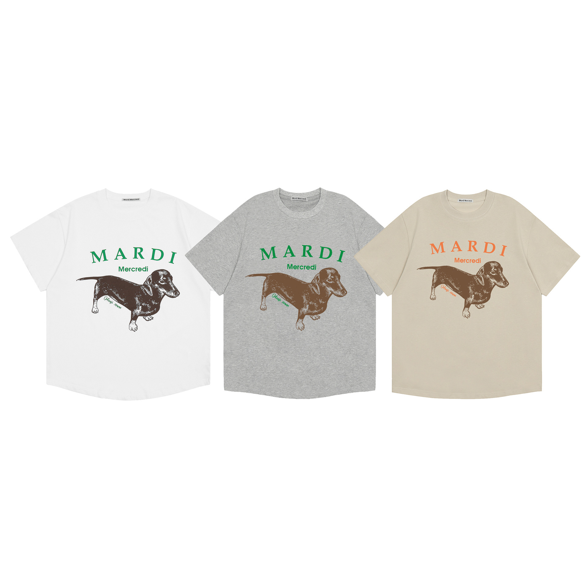 한국 유행 브랜드 반팔 데이지 닥스 훈트 개 인쇄 여름 라운드 넥 퓨어 코튼 골드 하이 실버 같은 스타일 느슨한 티셔츠 여성을위한스토어 가기