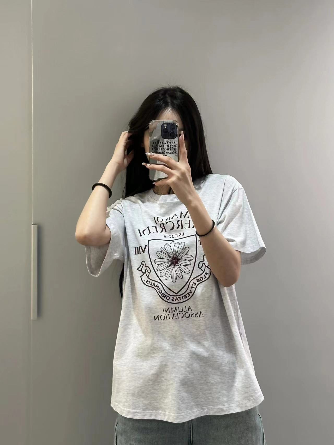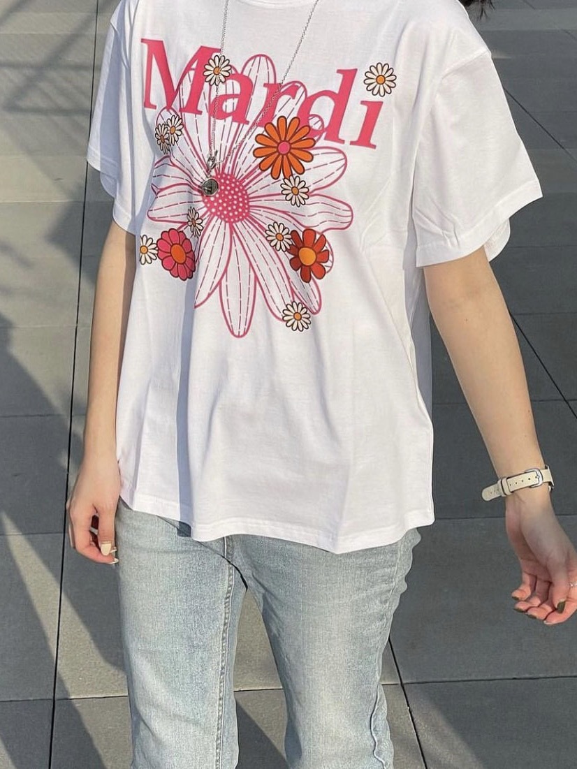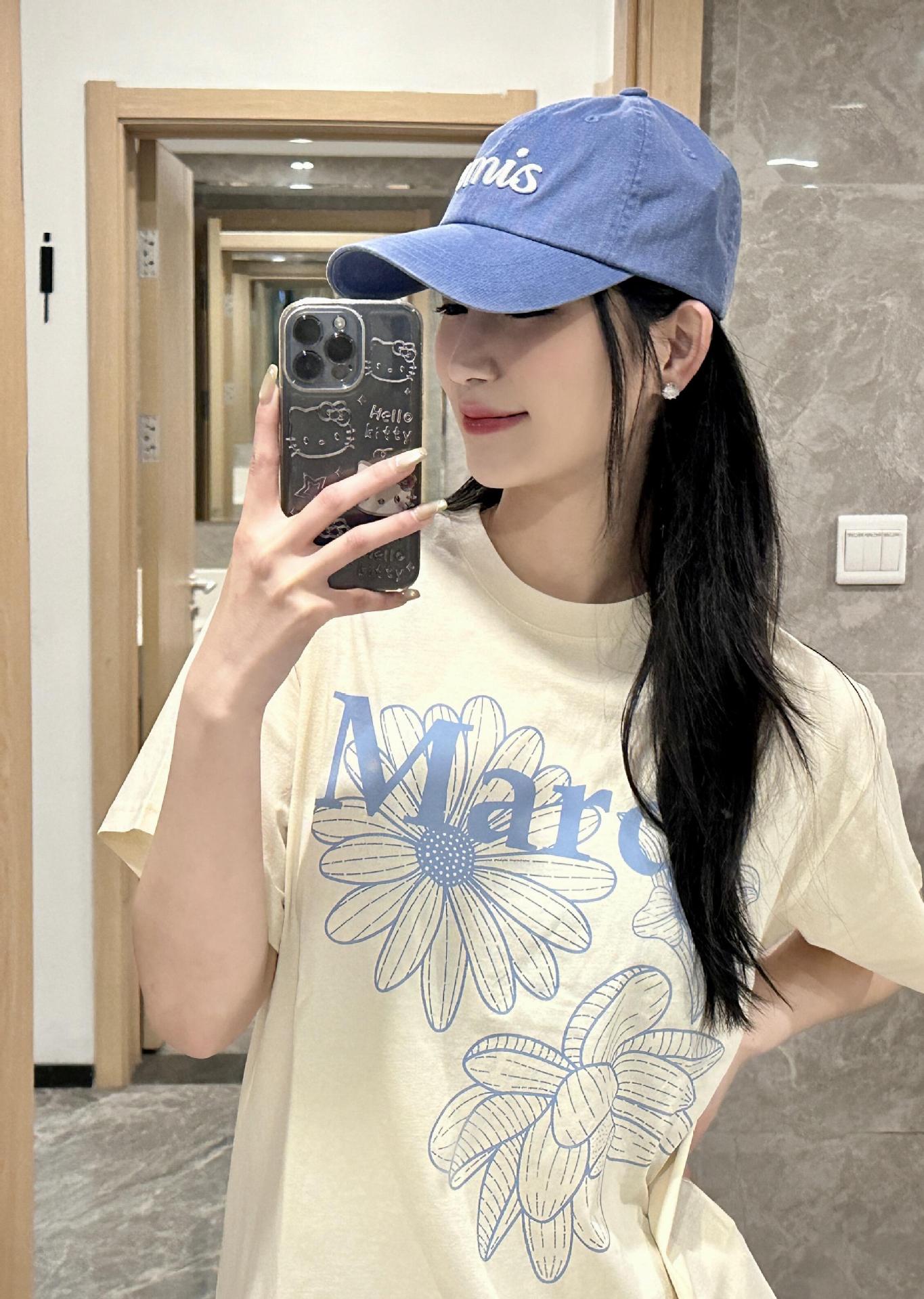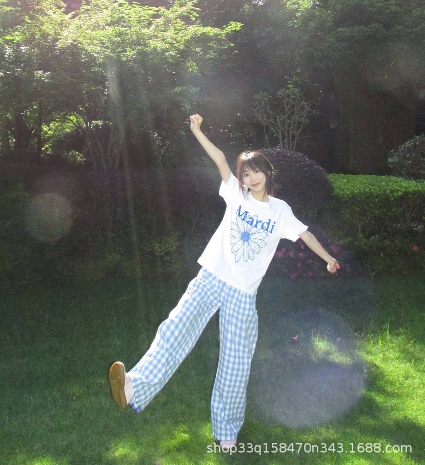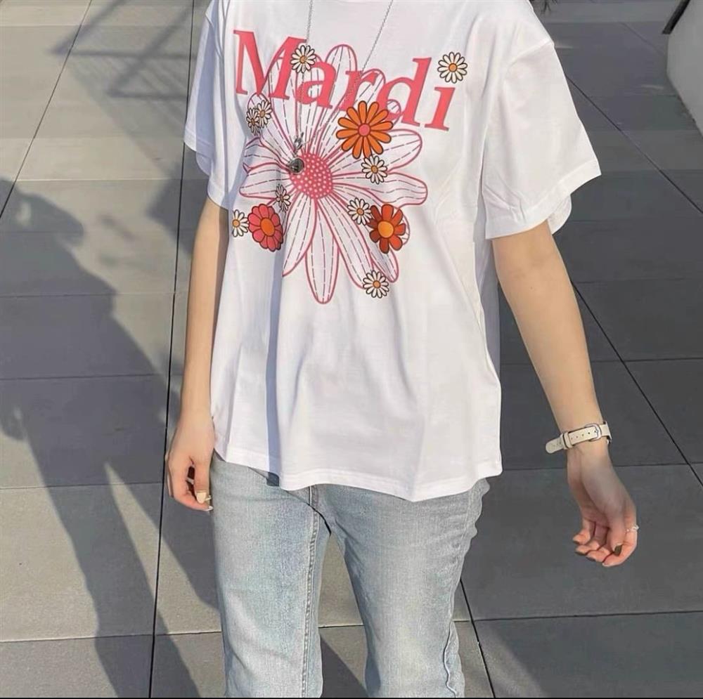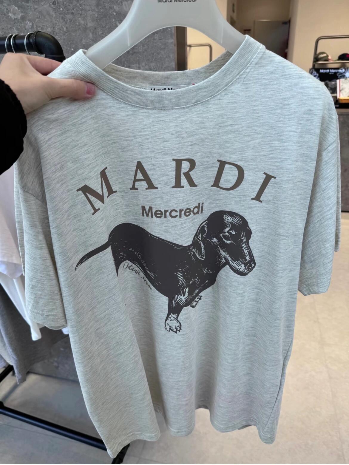 한국 유행 브랜드 반팔 데이지 닥스 훈트 개 인쇄 여름 라운드 넥 퓨어 코튼 골드 하이 실버 같은 스타일 느슨한 티셔츠 여성을위한스토어 가기