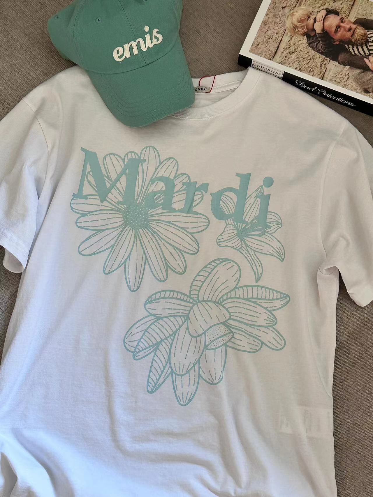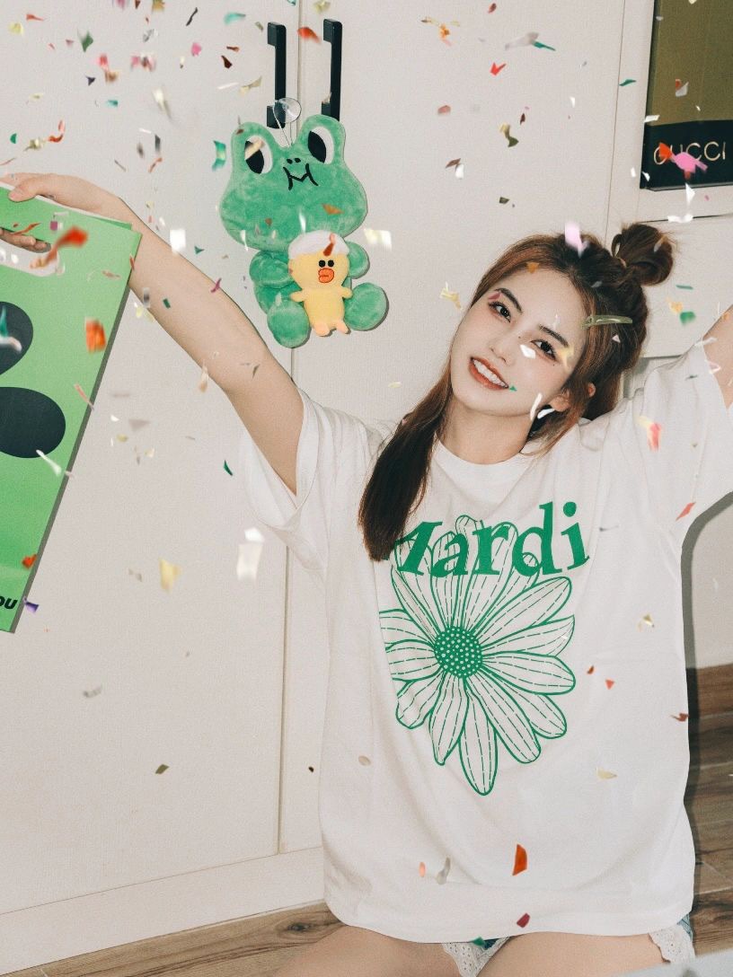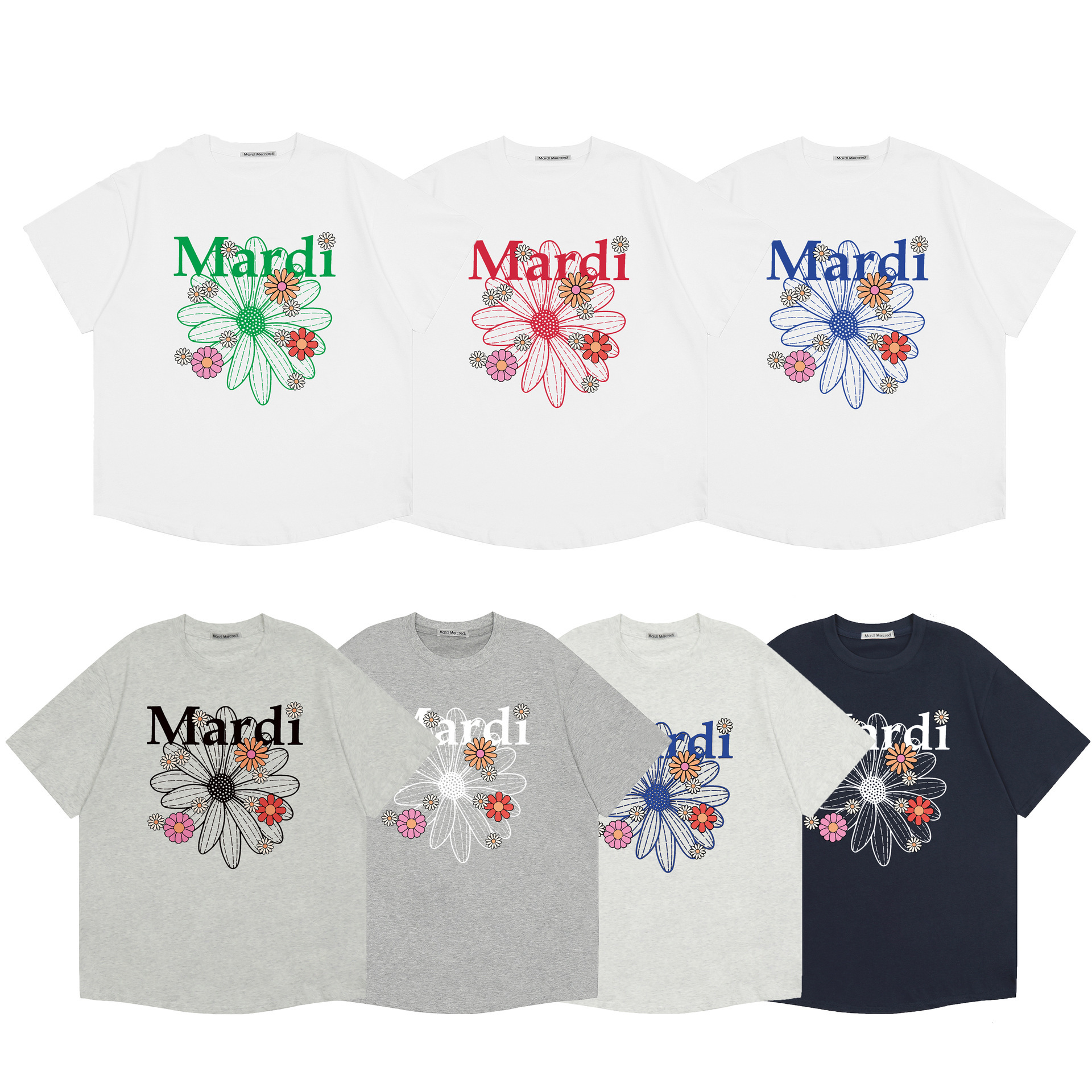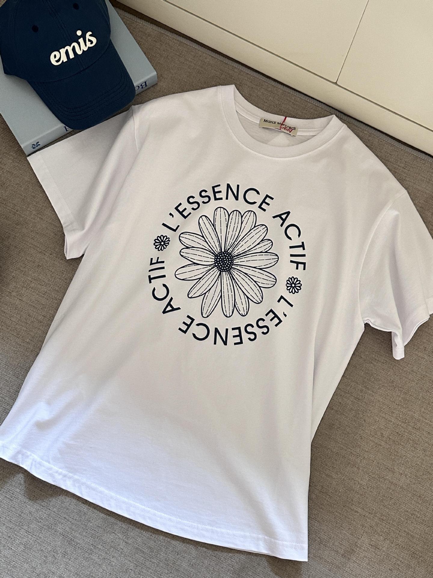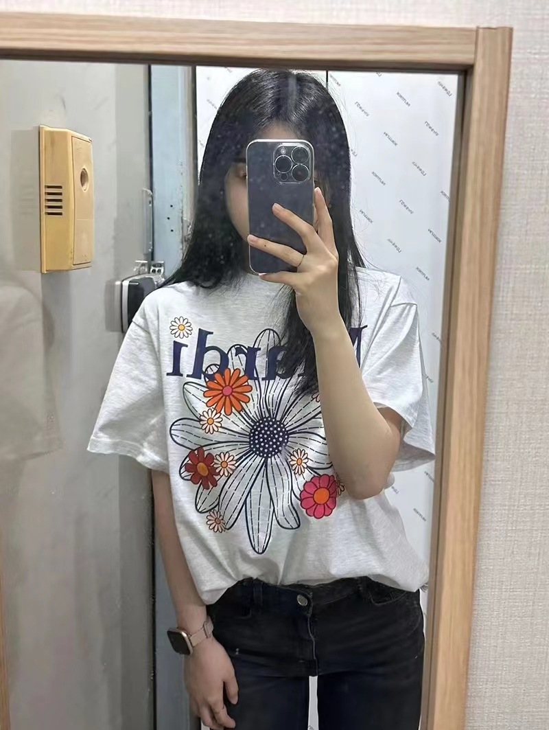 한국 유행 브랜드 반팔 데이지 닥스 훈트 개 인쇄 여름 라운드 넥 퓨어 코튼 골드 하이 실버 같은 스타일 느슨한 티셔츠 여성을위한스토어 가기