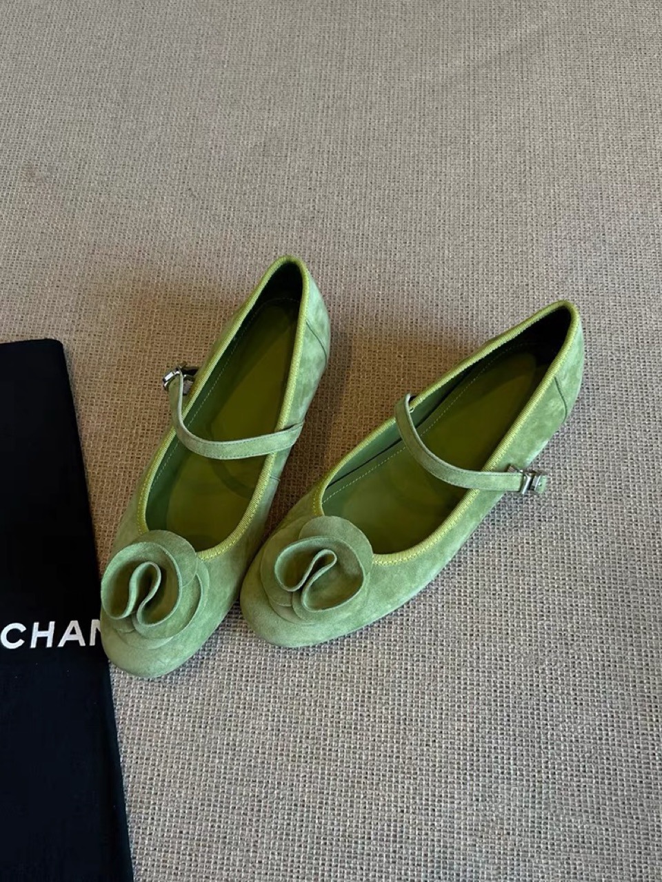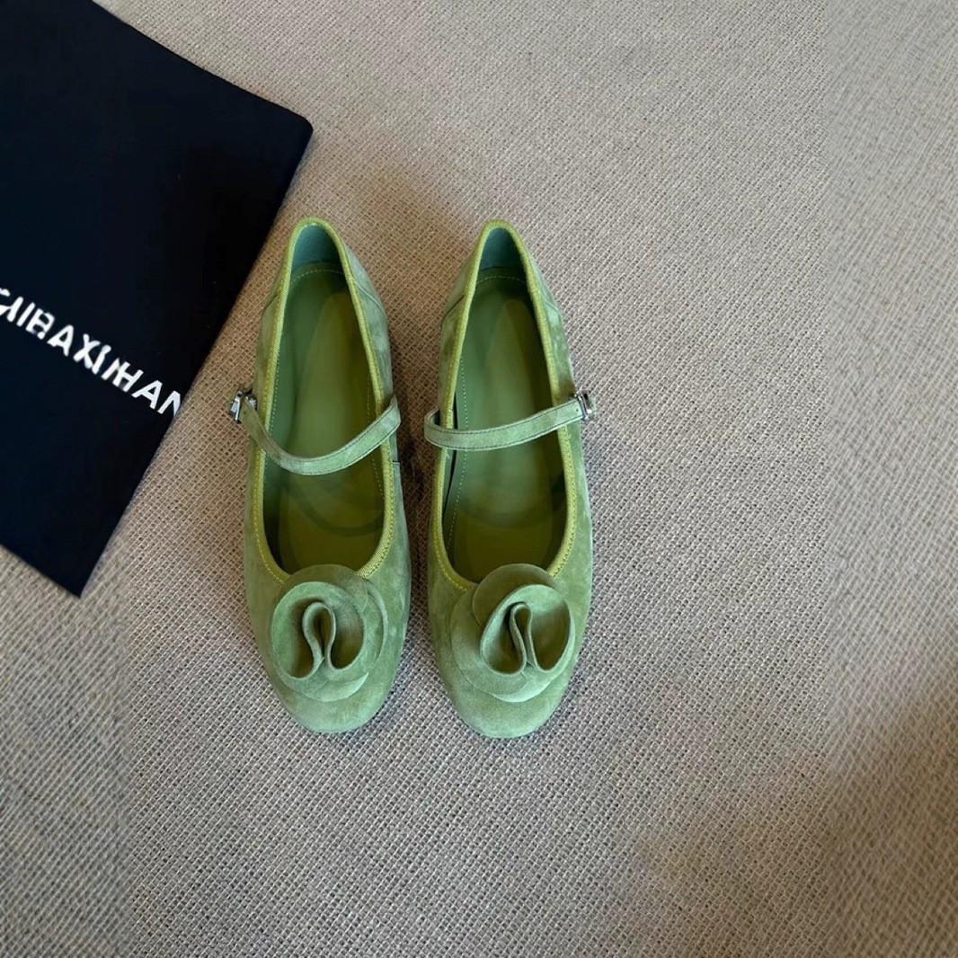 양 패턴 버전 ~ 프랑스 기질 꽃 라운드 머리 발레 신발 여성 복고풍 부드러운 가죽 신발 얕은 입 메리 제인 싱글 신발
