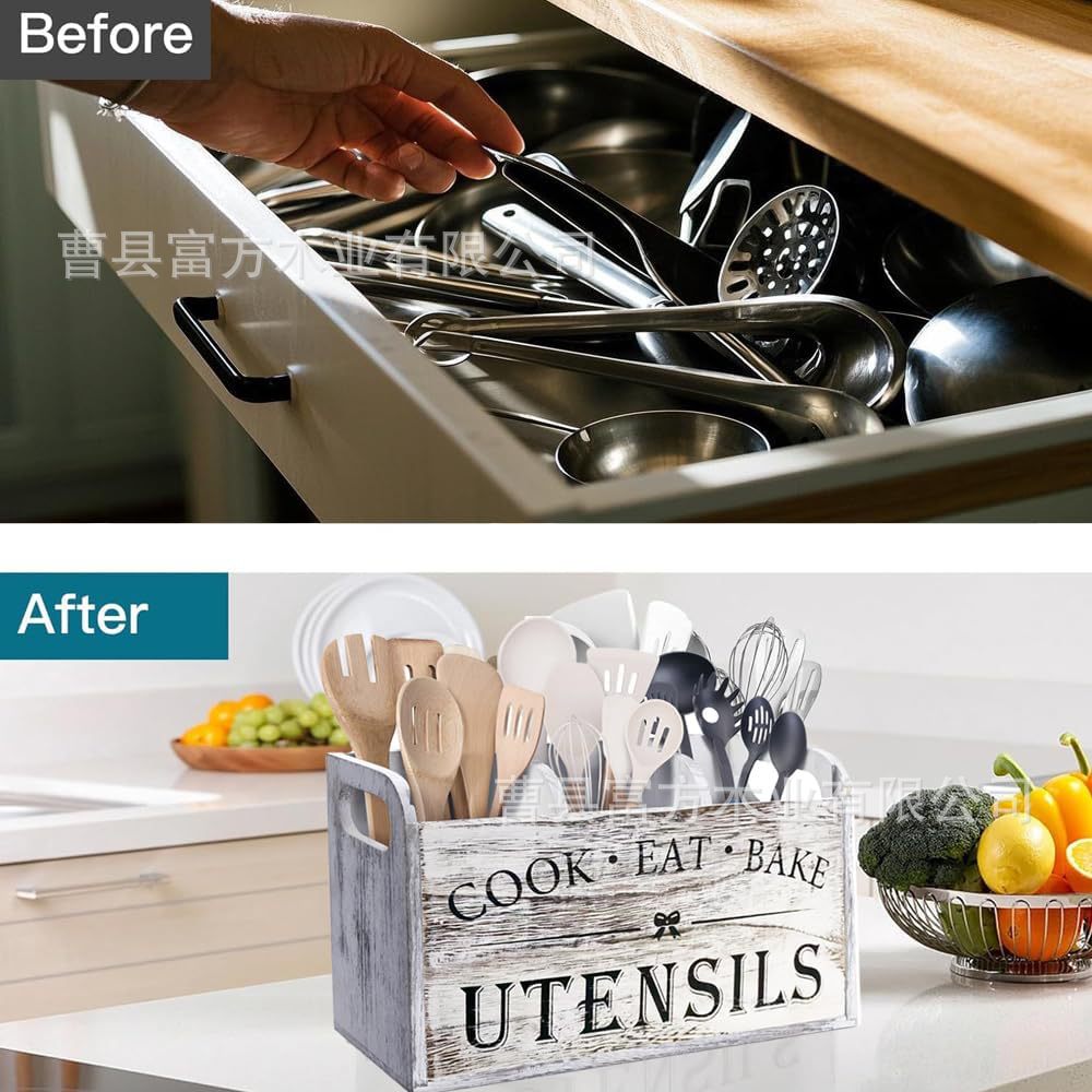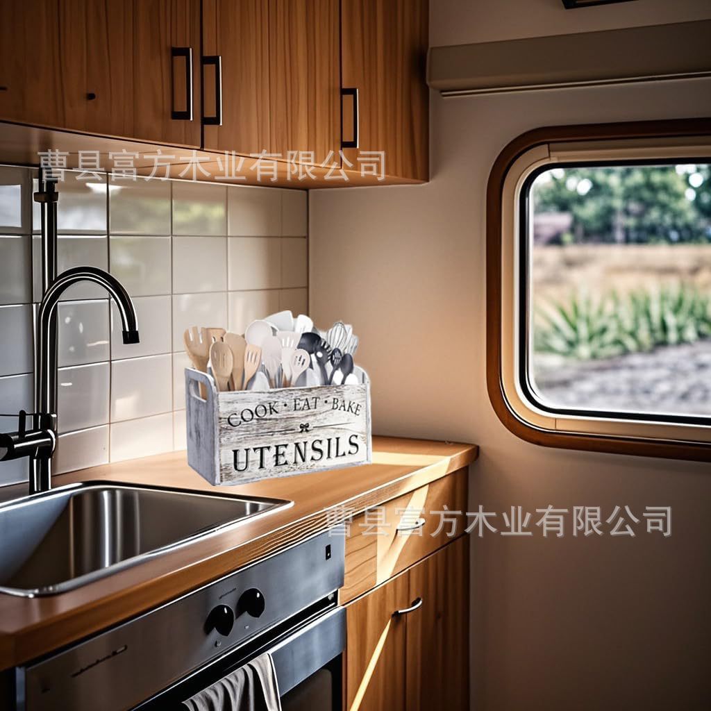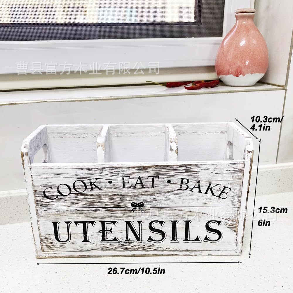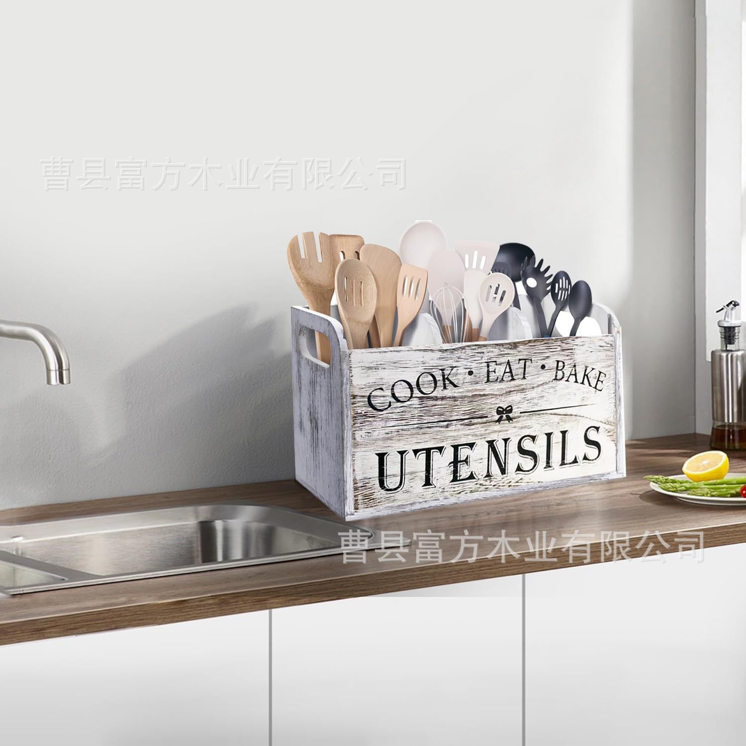 국경 간 새로운 복고풍 색상 나무 보관 상자 흰색 나무 보관 상자 주방 멀티 그리드 칼, 포크 및 식기 정리 상자