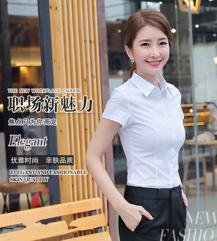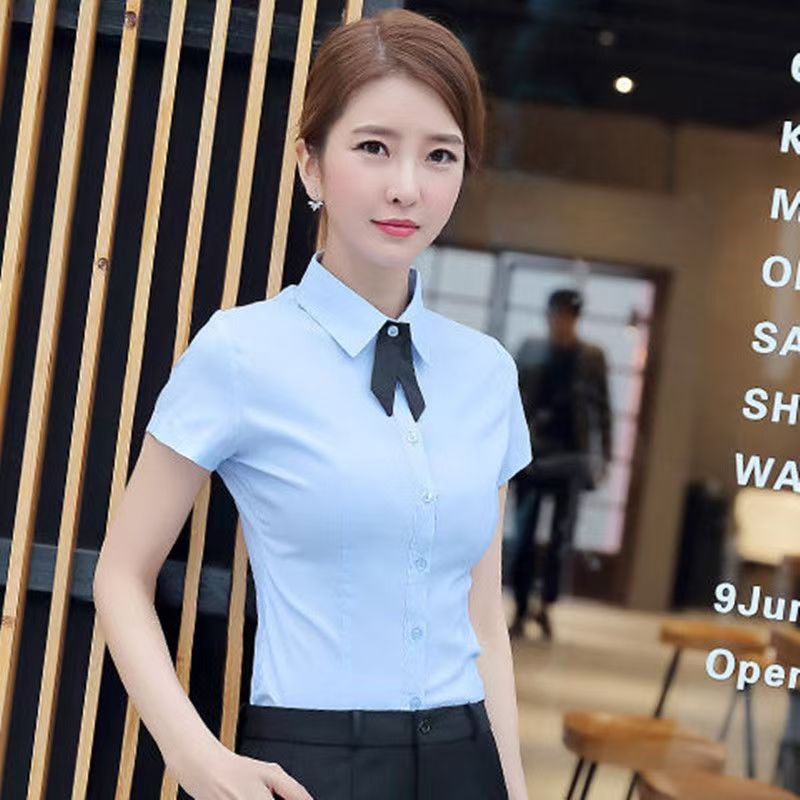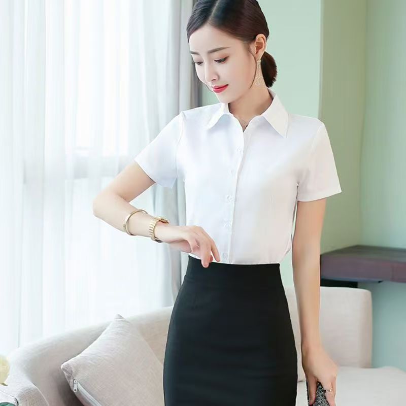 여성용 흰색 셔츠 2025 이른 봄 여름 새로운 전문 반팔 셔츠 패션 탑 작업복 작업복스토어 가기