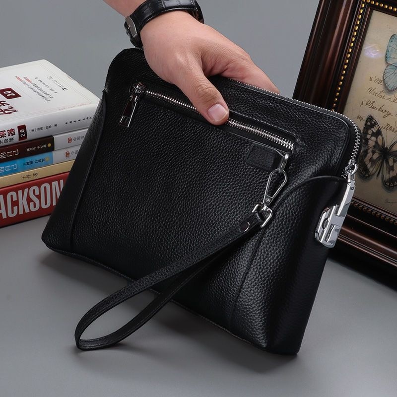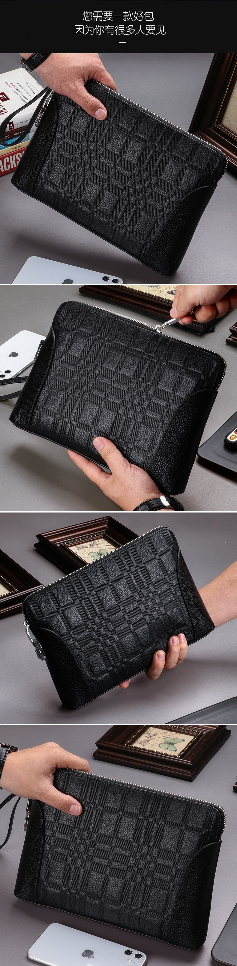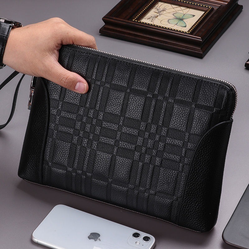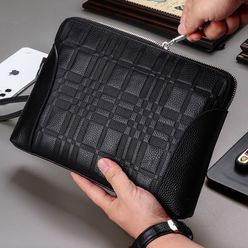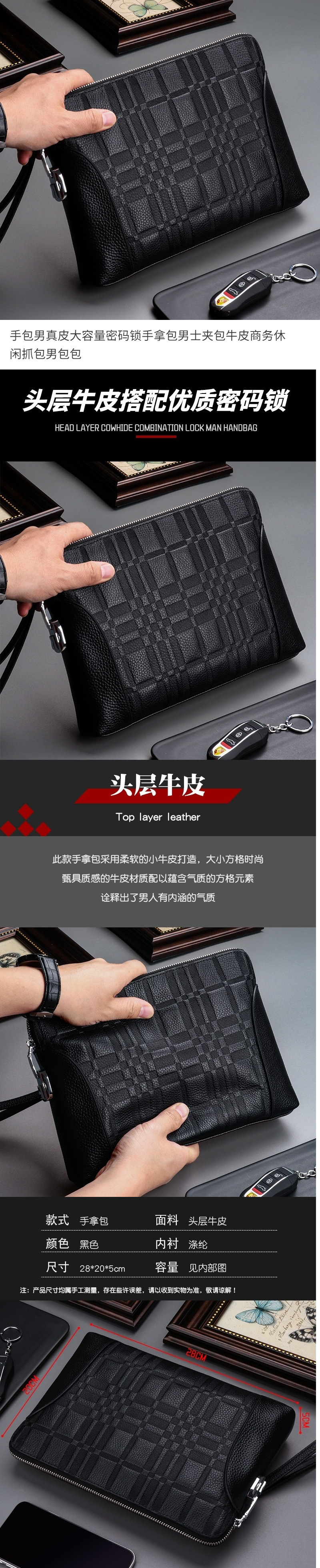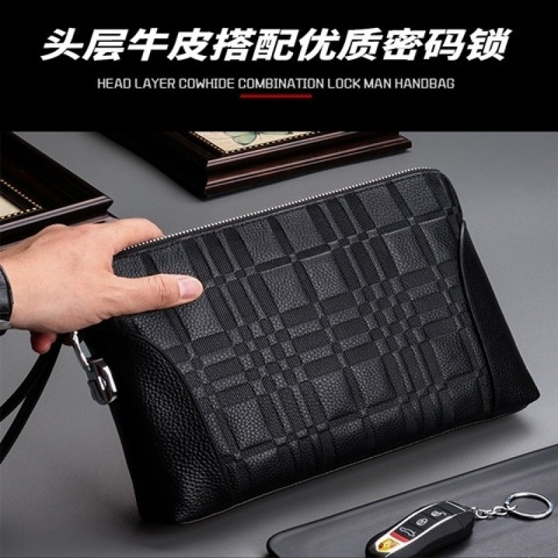 클러치 백 남성용 정품 가죽 핸드백 남성용 클립 백 코드 잠금 체크 무늬 클러치 백 남성용 가방 대용량 비즈니스 제품스토어 가기