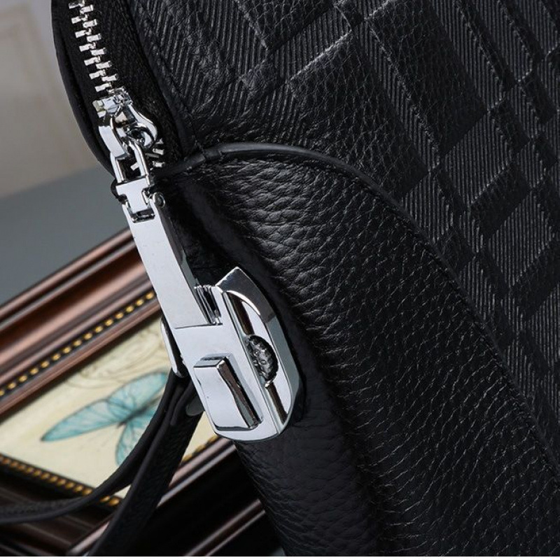 클러치 백 남성용 정품 가죽 핸드백 남성용 클립 백 코드 잠금 체크 무늬 클러치 백 남성용 가방 대용량 비즈니스 제품