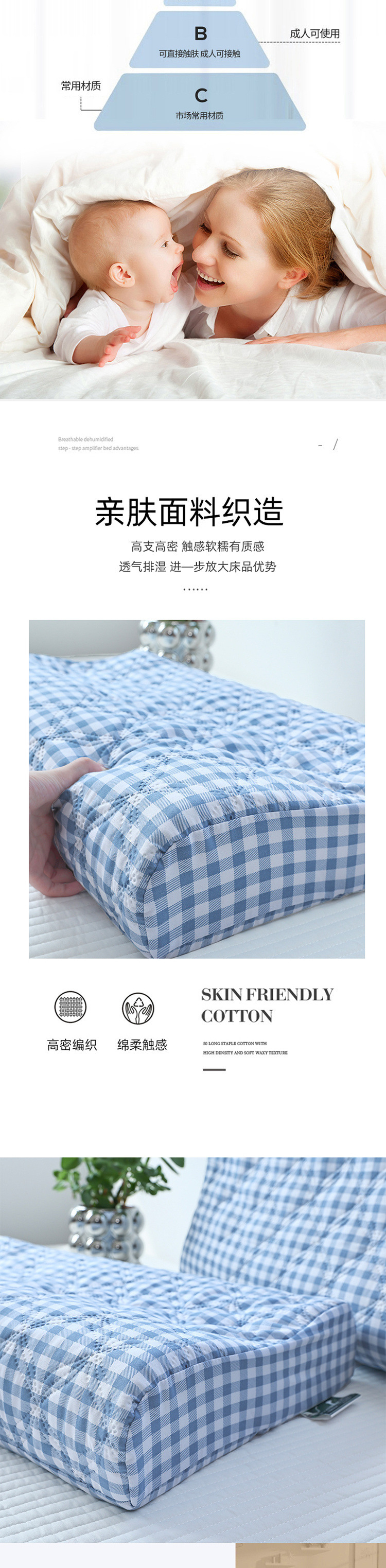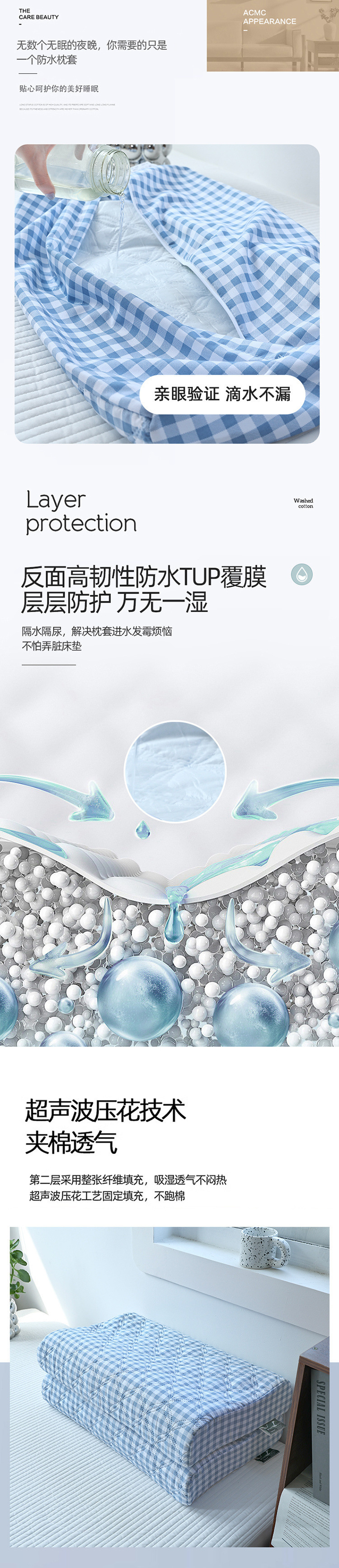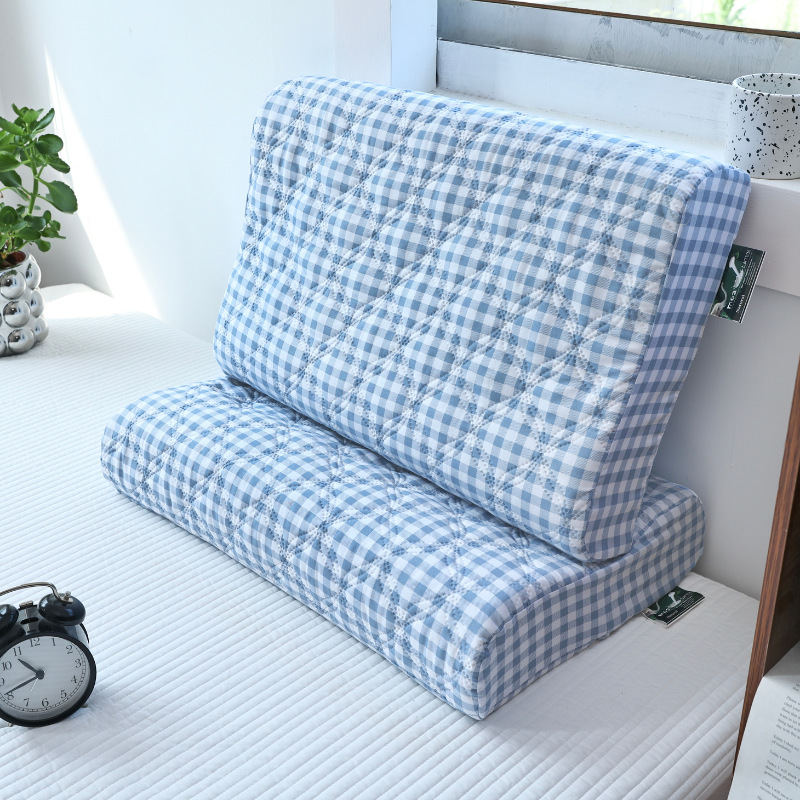 • 방수 라텍스 베개 커버 - 프레쉬 리틀 블루 체크 [7A 항균 및 진드기 방지]