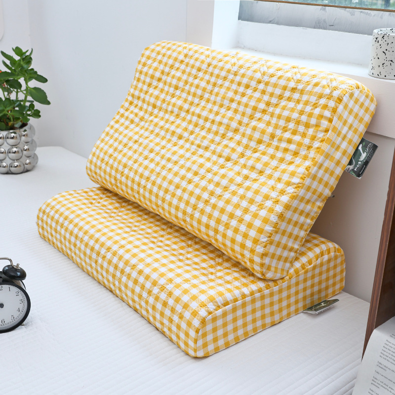 • 방수 라텍스 베개 커버 - 생기 넘치는 작은 노란색 격자 [7A 항균 및 진드기 방지]
